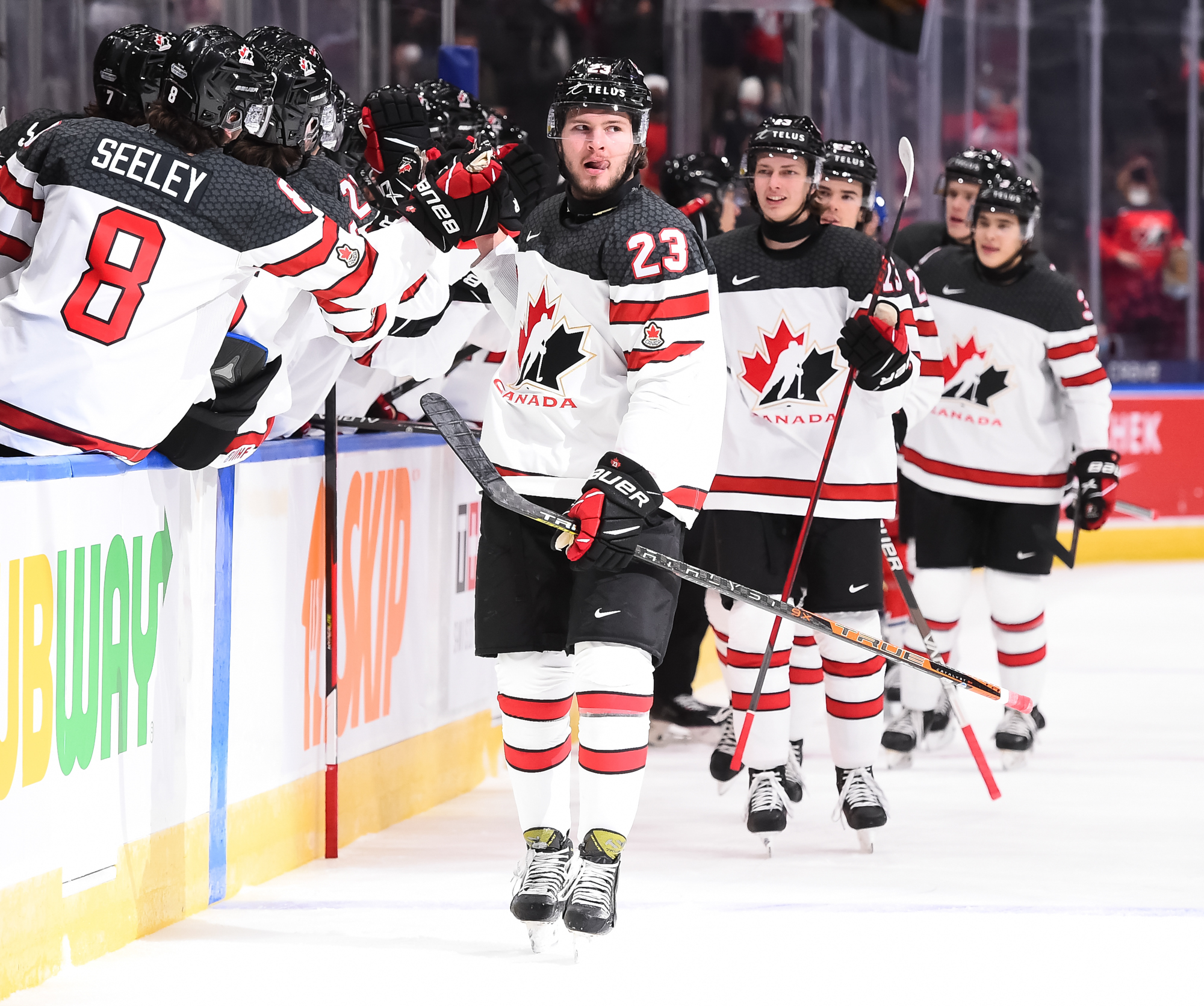 Mason McTavish a inscrit un but et une aide tandis que Donovan Sebrango et Olen Zellweger ont eux aussi trouvé le fond du filet au profit du Canada.