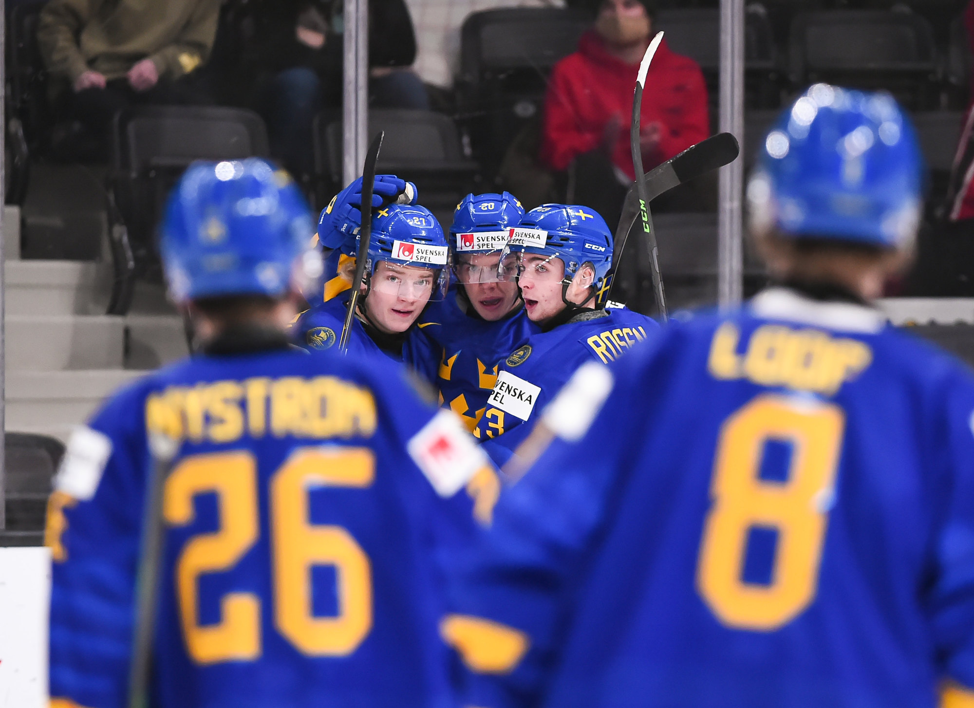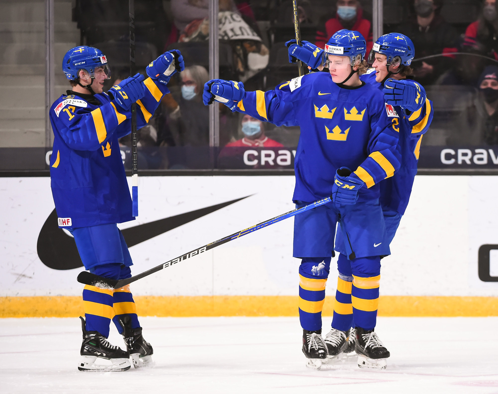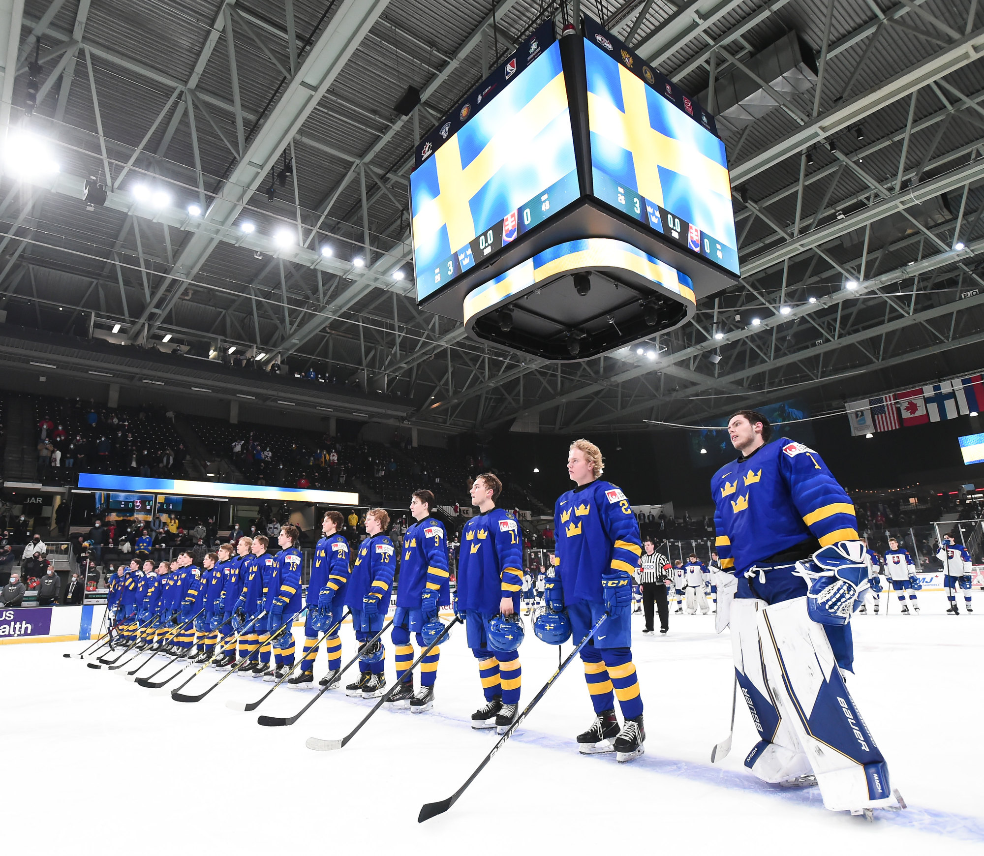 Pendant ce temps, la Suède a profité d’un avantage numérique en début de rencontre et n’a pas perdu de temps pour prendre les devants. Ce but a été le produit d’un beau jeu de passes de William Eklund vers Helge Grans puis vers Theodor Niederbach dans l’enclave. Ce dernier a dirigé un tir au-dessus du gant de Latkoczy, procurant une avance de 1-0 aux siens à 6:25.