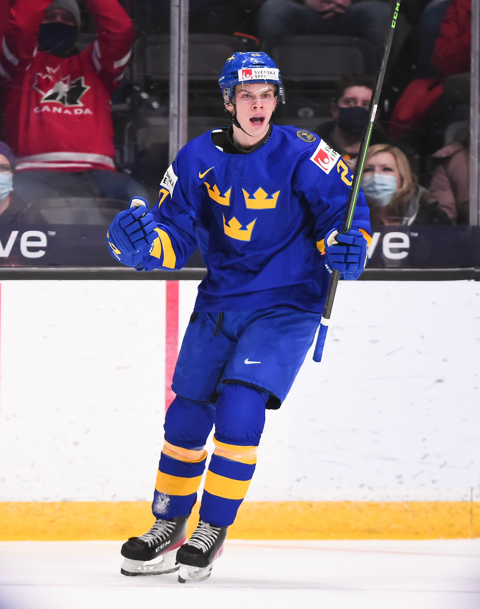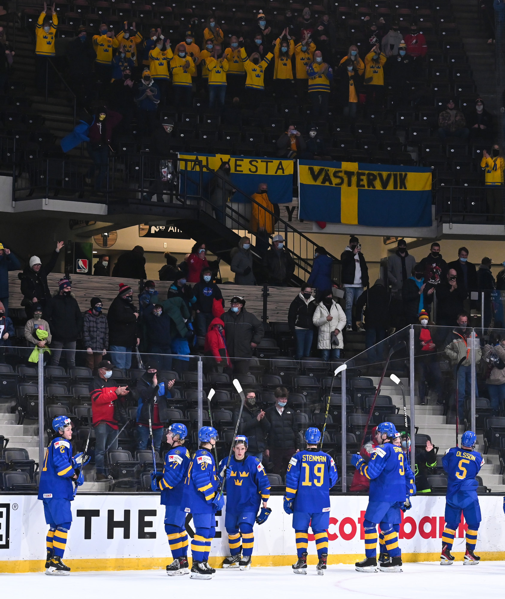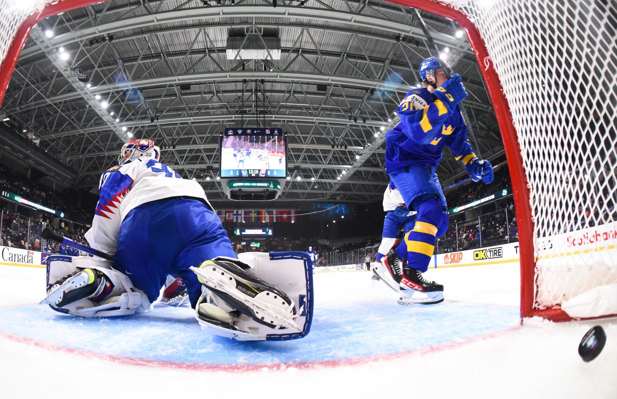 Pendant ce temps, la Suède a profité d’un avantage numérique en début de rencontre et n’a pas perdu de temps pour prendre les devants. Ce but a été le produit d’un beau jeu de passes de William Eklund vers Helge Grans puis vers Theodor Niederbach dans l’enclave. Ce dernier a dirigé un tir au-dessus du gant de Latkoczy, procurant une avance de 1-0 aux siens à 6:25.