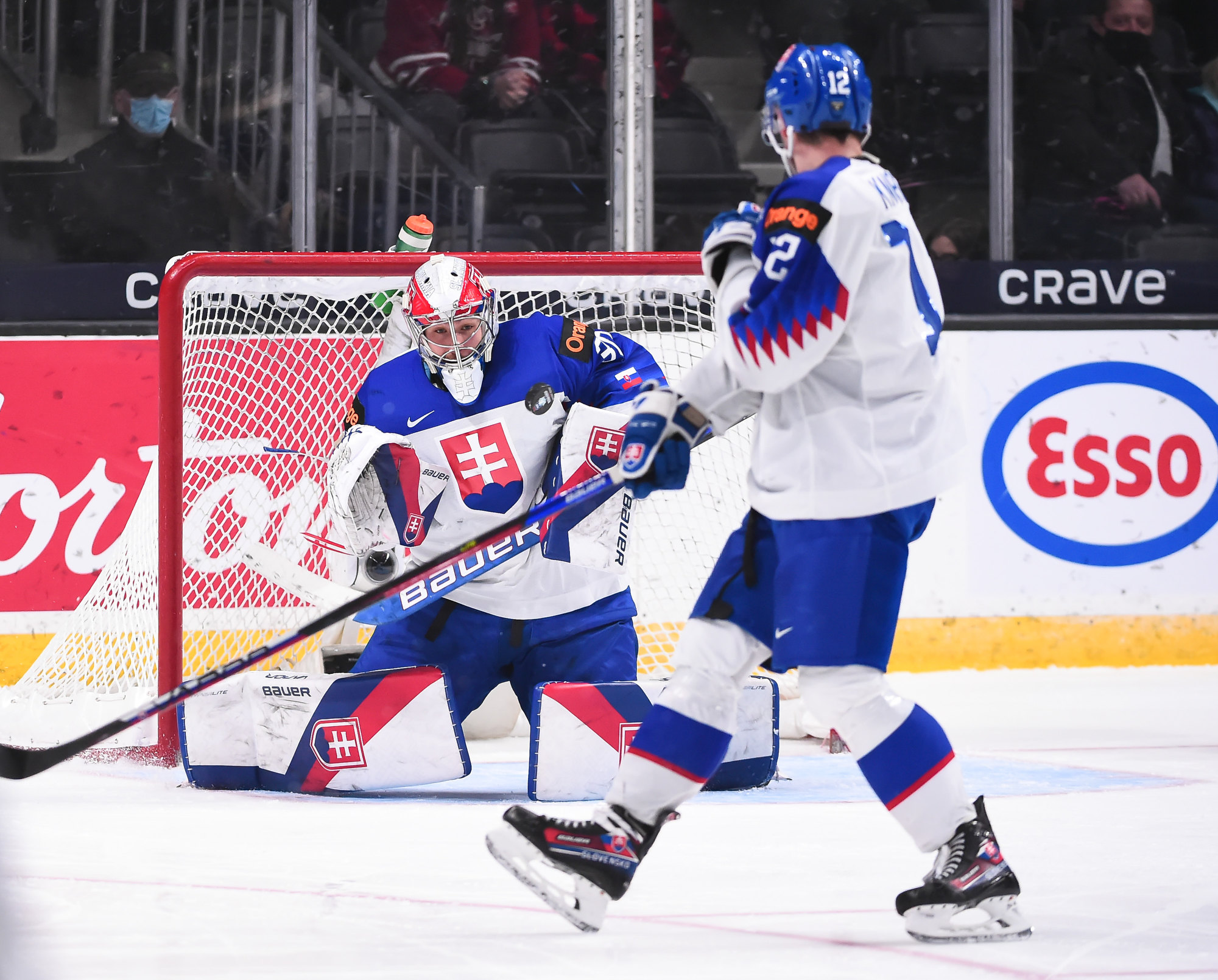 La Slovaquie a profité d’une belle occasion d’éviter le jeu blanc en début de troisième période, mais Wallsted a réalisé deux arrêts rapides, notamment en volant Chromiak d’un but sur un tir de loin. Les Slovaques ont eu droit à une autre occasion quand la reprise vidéo a confirmé un coup à la tête de Leo Loof sur Simon Nemec sur une mise en échec. Cela a conduit à un jeu de puissance de cinq minutes et à l’expulsion de Loof.