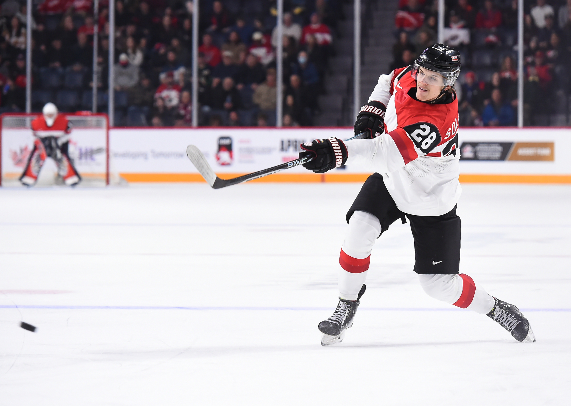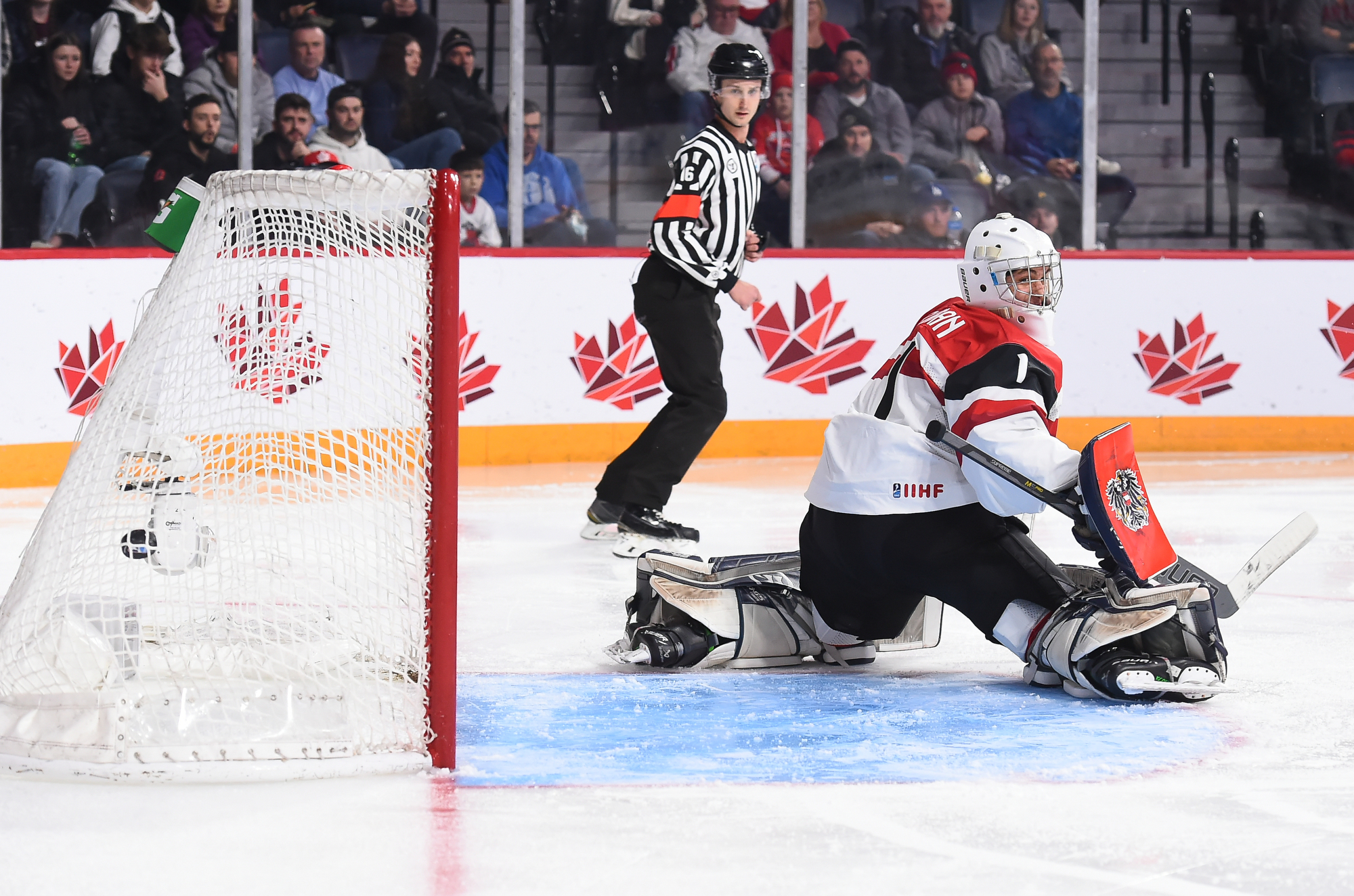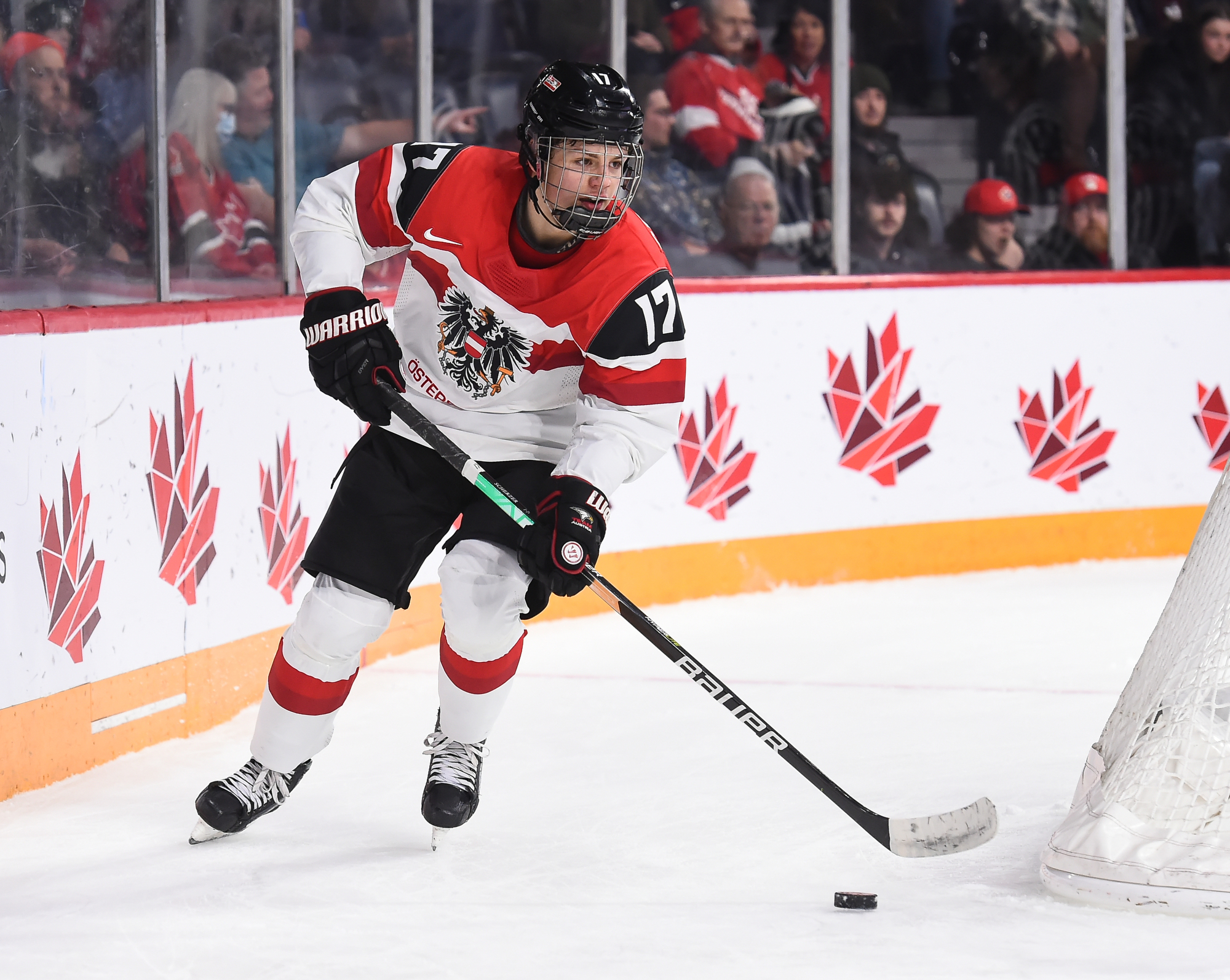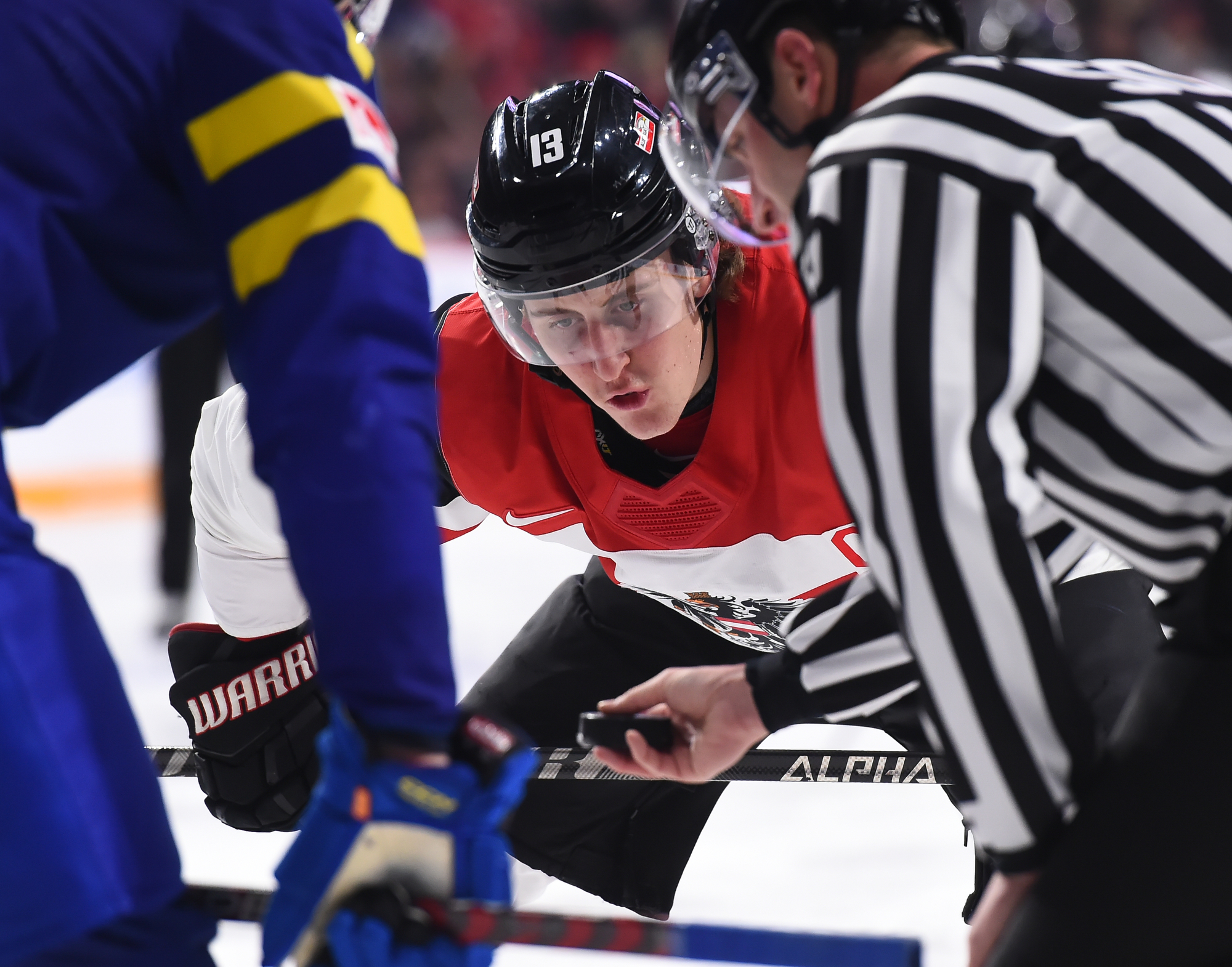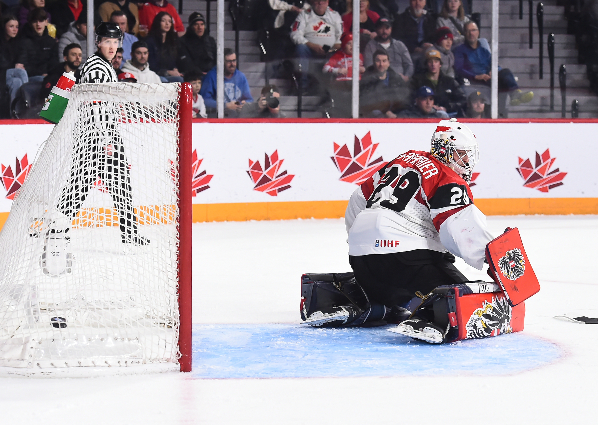 Lundi, ils n’ont toutefois pas été en mesure de lutter d’égal à égal avec les Suédois, qui ont fait circuler la rondelle à l’aide de passes solides, effectuées avec confiance. N’eut été de la formidable performance de Thomas Pfarrmaier, qui en était à ses débuts chez les U20, le pointage aurait été beaucoup plus élevé en début de rencontre. En effet, le gardien de but a donné des raisons aux partisans autrichiens de célébrer après quelques minutes de jeu quand il a glissé d’un côté à l’autre de son filet pour réaliser un arrêt étincelant du bloqueur sur ce qui semblait un but certain pour Filip Bystedt, alors que celui-ci s’était posté en retrait du jeu.
