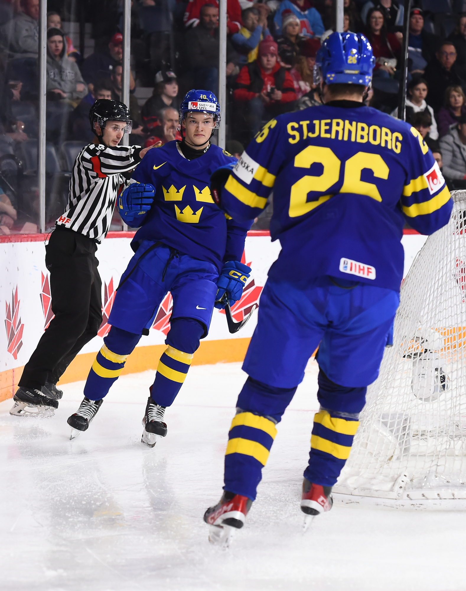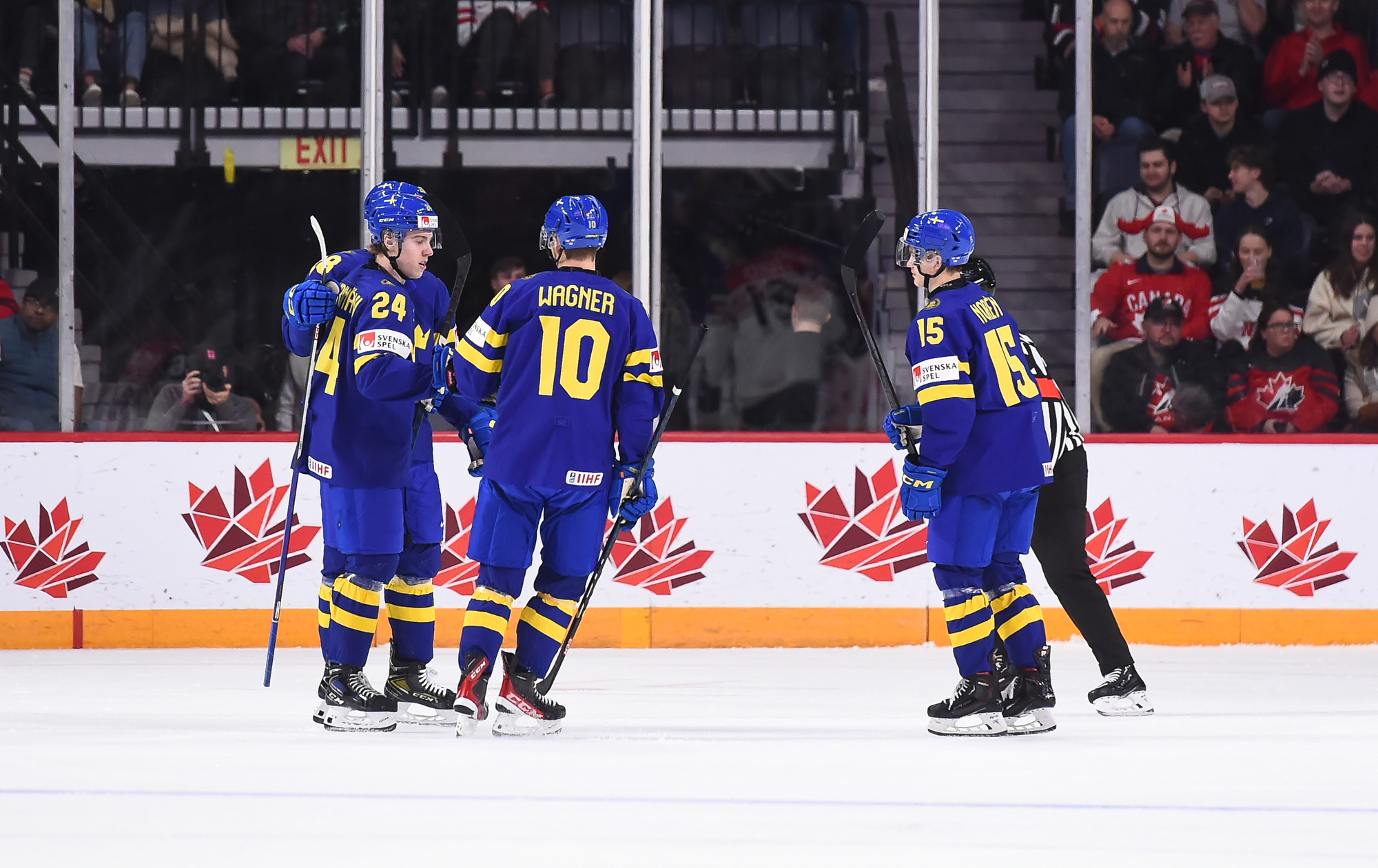 Au moment où on avait disputé quatre minutes de jeu en troisième période, la Suède avait atteint le cap de la dizaine au chapitre des buts. Fabian Wagner a fait mouche à l’issue d’une attaque à deux contre un à 2:45, puis peu après qu’une passe eut rebondi sur Bystedt et abouti dans le filet pour un score de 10-0.