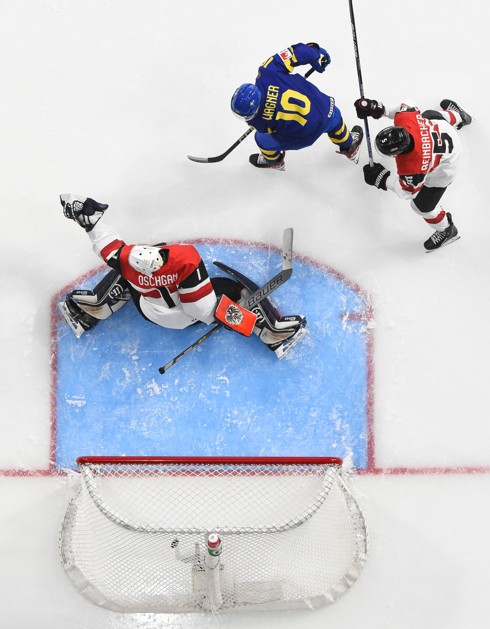 Cela a permis à Benedikt Oschgan de faire ses débuts avec Équipe Autriche devant le filet, mais il n’a pas connu un bon départ. Il a cédé sur les deux premiers tirs qu’il a affrontés, le premier ayant été décoché par Liam Ohgren à 12:33, puis le deuxième 50 secondes plus tard, par Calle Odelius.