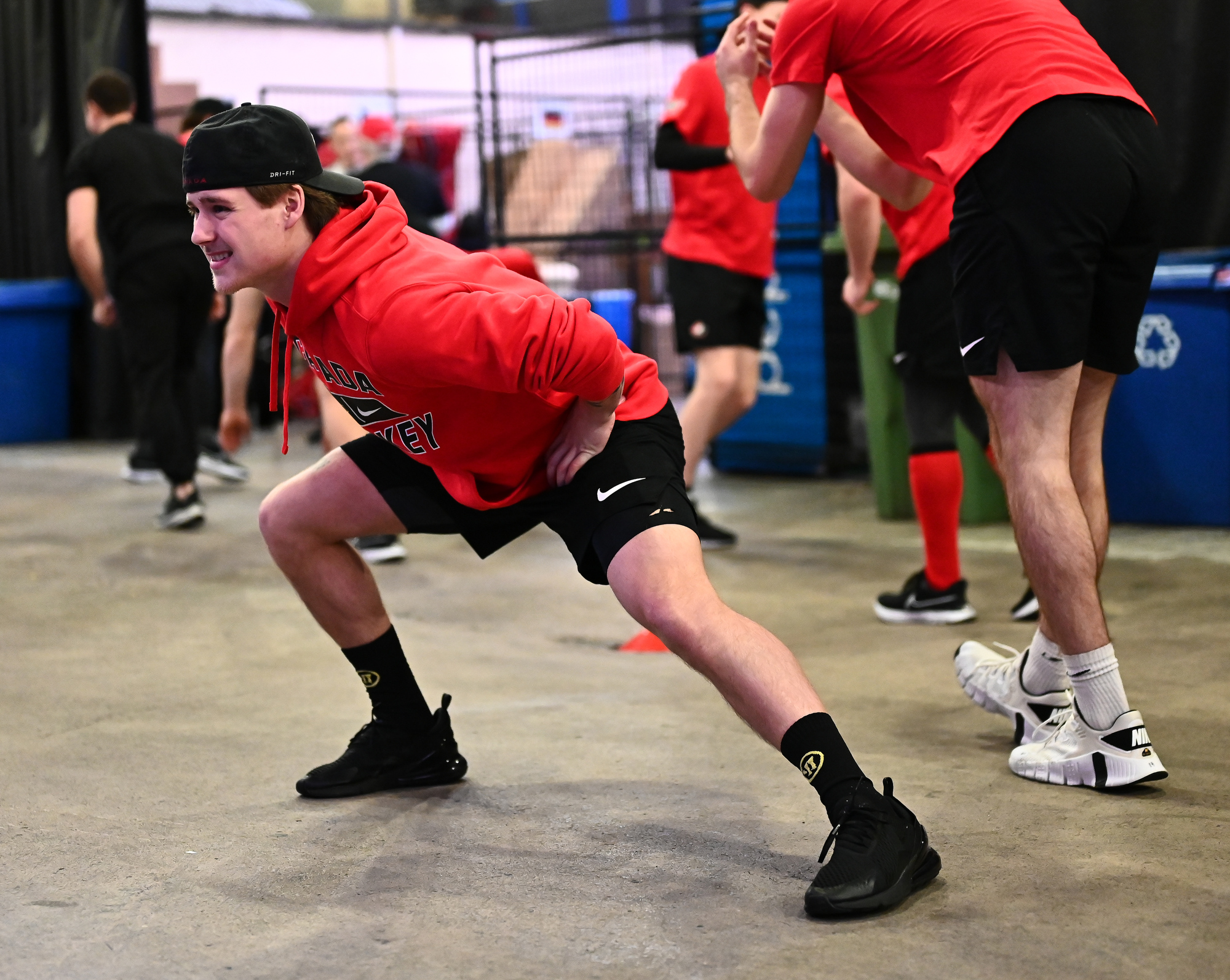 La première période a offert un peu de tout, et plus encore. Les partisans ont eu un avant-goût de ce qui allait suivre quelques minutes plus tard quand le Canadien Adam Fantilli s’est rendu derrière le filet tchèque et a tenté vous savez quoi. Il a placé la rondelle sur la lame de son bâton et l’a fouettée devant le but, mais le défenseur David Spacek a compris ce qui s’en venait et a cogné sur le bâton de Fantilli avant que le Canadien puisse compléter son jeu à l’image d’un joueur de crosse.