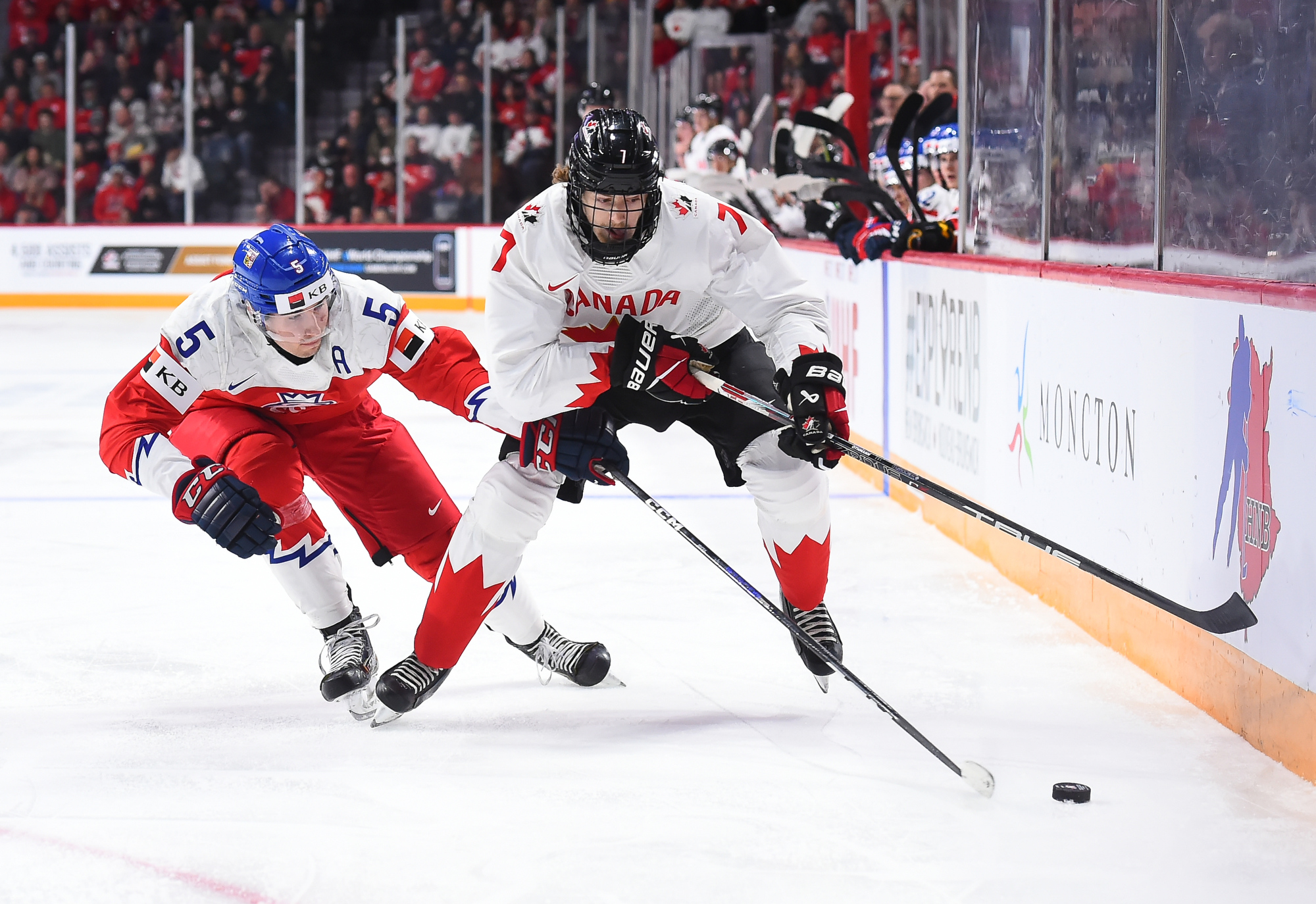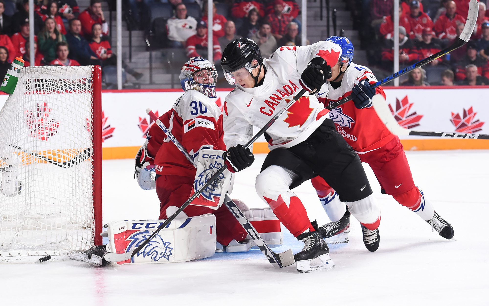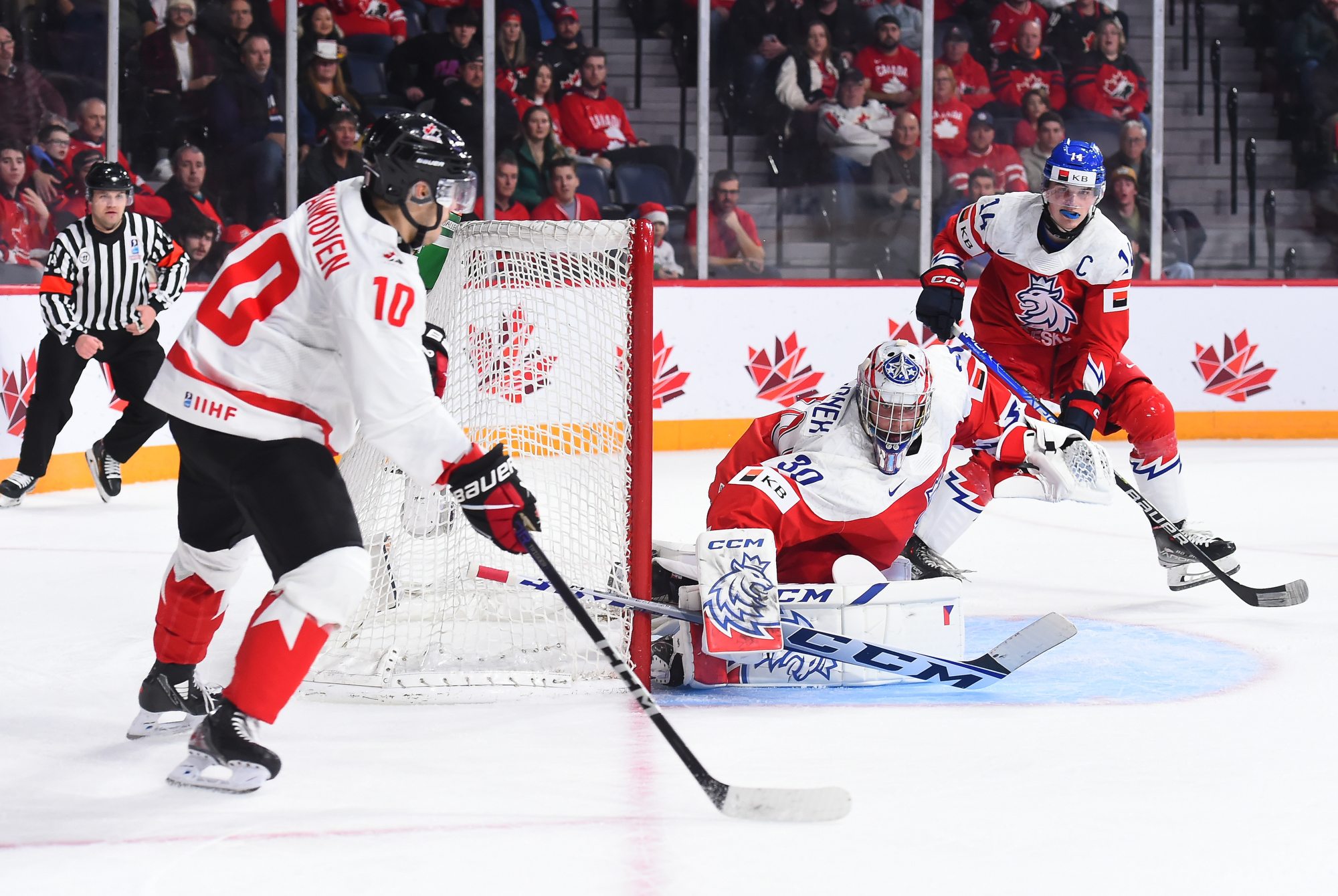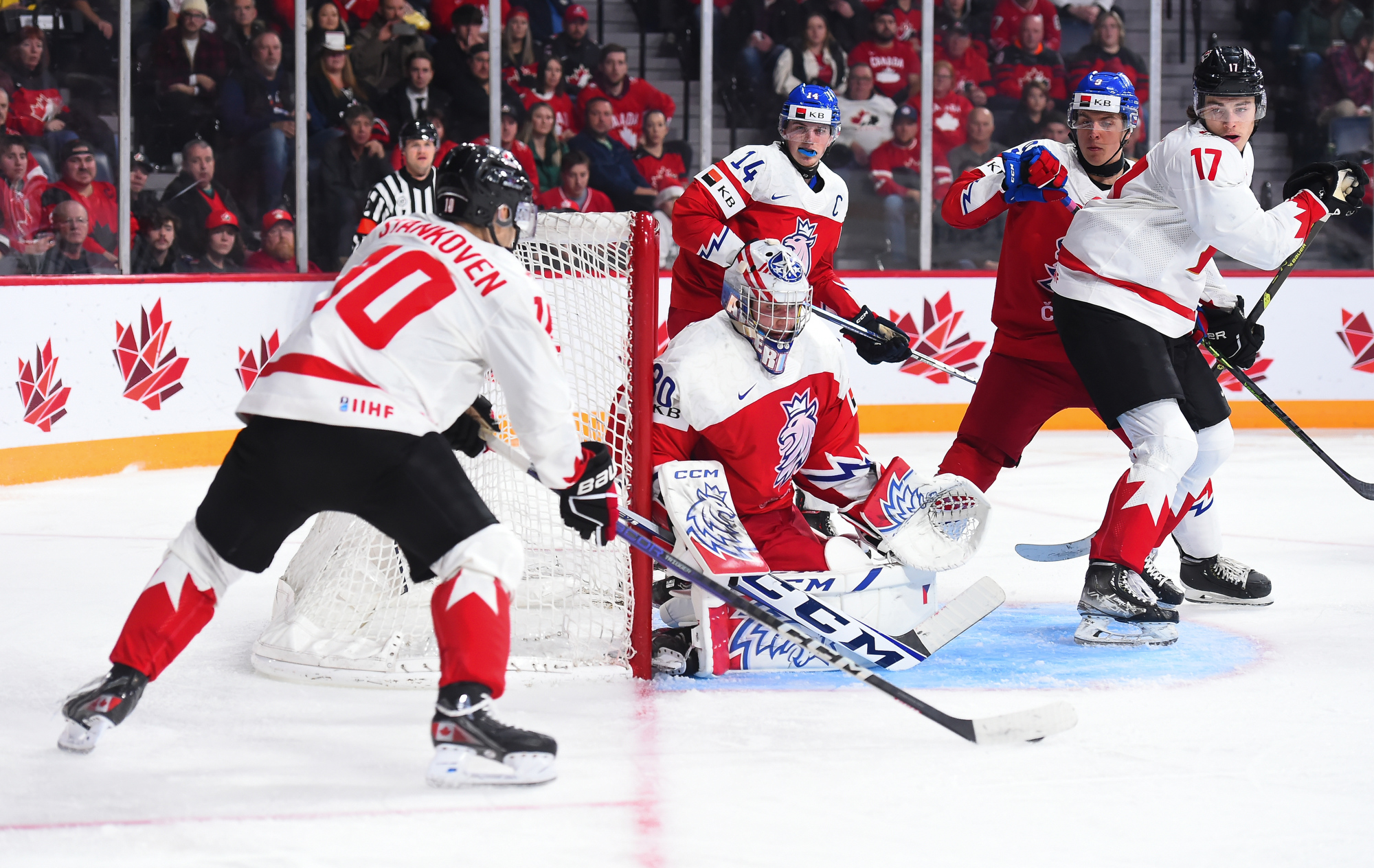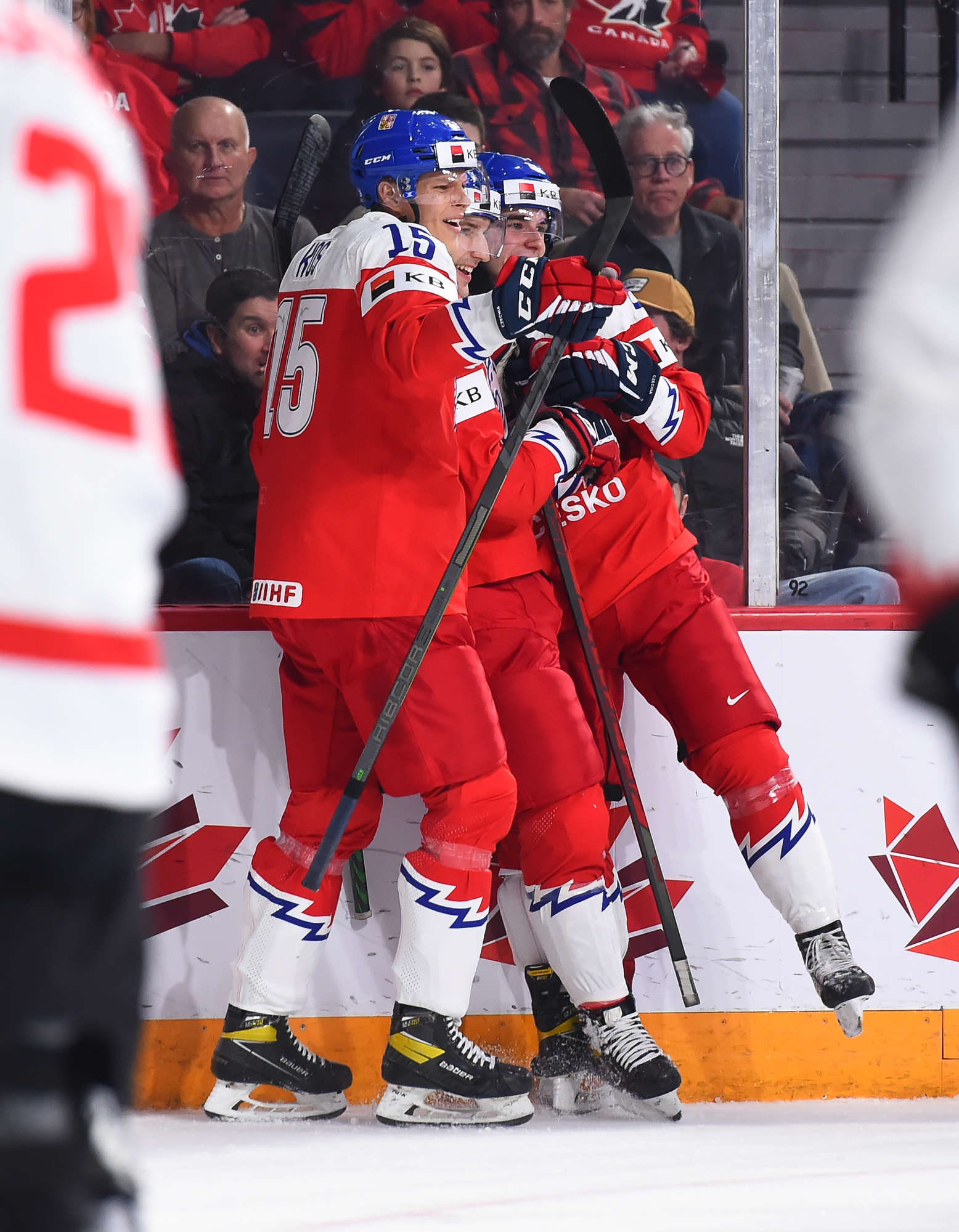 La Tchéquie a marqué trois buts en deuxième période et a réussi à décrocher sa première victoire contre le Canada au Championnat mondial junior depuis 2013 (huit défaites), surprenant les hôtes et favoris au compte de 5-2