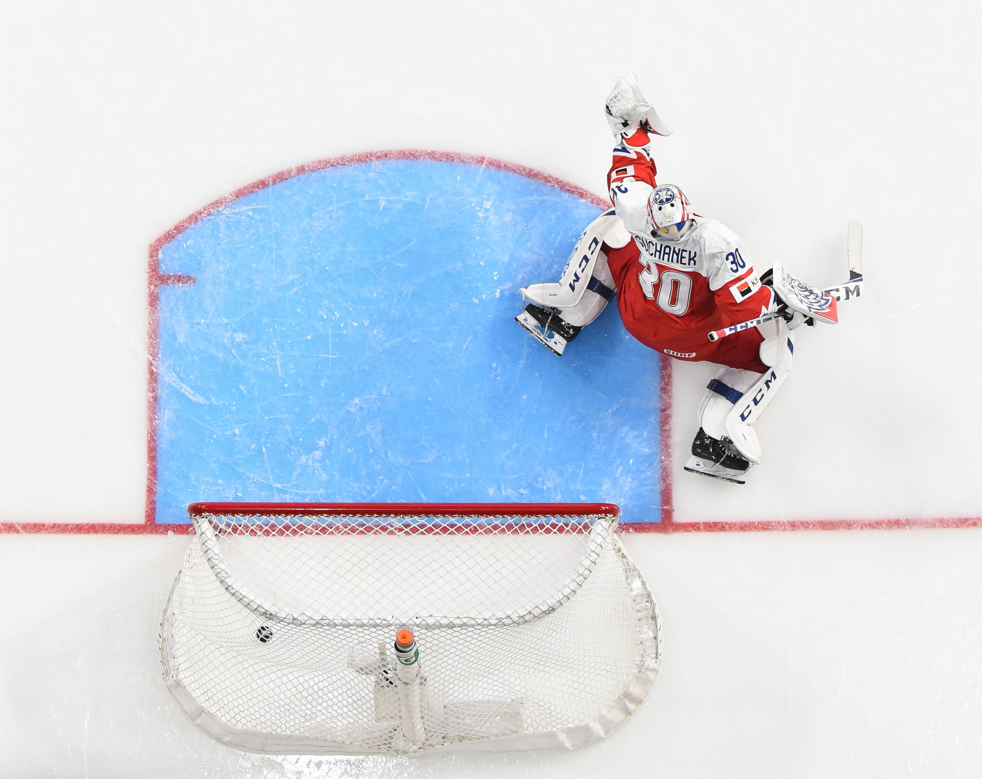 Toutefois, le Canada n’en avait pas fini avec sa démonstration de crosse sur glace, alors que deux minutes plus tard environ, Connor Bedard a tenté le même geste de l’autre côté du filet. Cette fois, le gardien de but Tomas Suchanek a fait ce qu’il devait faire, déplaçant son visage masqué et son épaule vers le coin supérieur de sa cage pour réaliser un arrêt du tonnerre. Peu après, le Canada a cru prendre les devants 2-0 sur un boulet de la ligne bleue de Brandt Clarke. Les Tchèques ont toutefois contesté et ils ont été récompensés quand on a signalé qu’il y avait eu un hors-jeu dans les secondes précédentes, ce qui a eu pour effet d’annuler le but.