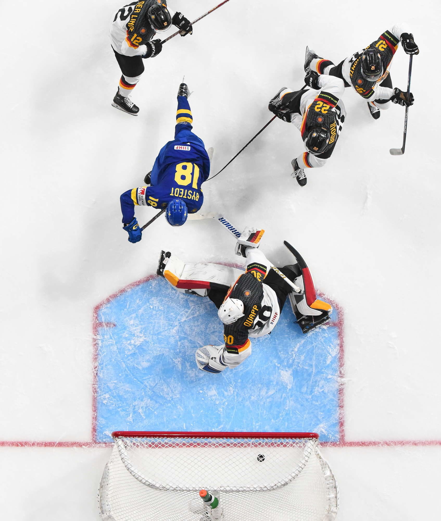 À l’occasion de la deuxième supériorité numérique des Allemands, Veit Oswald a décoché un solide tir que Lindbom est parvenu à stopper avec l’épaule droite. Ces arrêts se sont avérés cruciaux puisque la Suède a ensuite marqué le seul but de la période au moment où il restait 21,5 secondes à disputer. La séquence de jeu a commencé sur une mise en jeu remportée et le tir d’Adam Engstrom a touché à un Allemand devant, puis s’est faufilé entre les jambières de Nikita Quapp pour ensuite glisser au-dessus de la ligne de but.