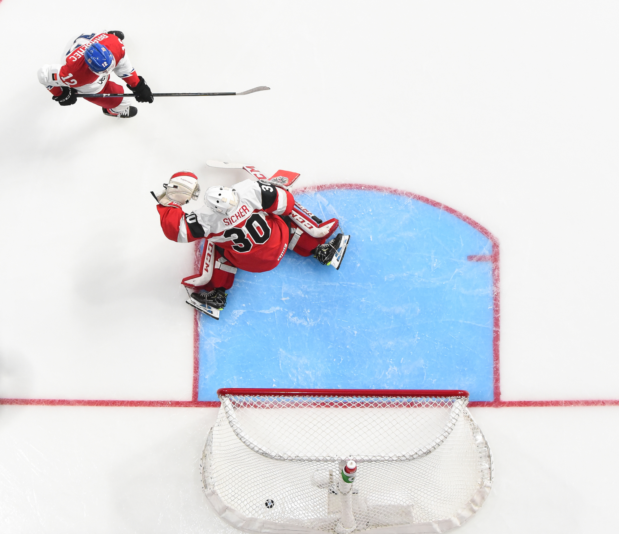 Deux buts en fin d’engagement ont permis aux Tchèques de prendre le contrôle du match. Jiri Kulich a tenté de marquer comme un joueur de crosse depuis l’arrière du filet autrichien pendant un avantage numérique et, bien qu’il n’ait pas réussi à mettre la rondelle sur la lame de son bâton assez rapidement, il a fini par pouvoir décocher un tir du côté rapproché dans la partie supérieure du filet quelques moments plus tard pour donner aux siens une avance de 2-0 à 16:26. Deux minutes plus tard, la Tchéquie a ajouté au score quand Petr Hauser a poussé au fond de la cage une rondelle qui s’était libérée à l’embouchure du filet après que Sicher, qui en était à son premier match avec l’Autriche, eut réussi un bel arrêt du gant à l’issue d’une échappée de Matyas Sapovaliv.