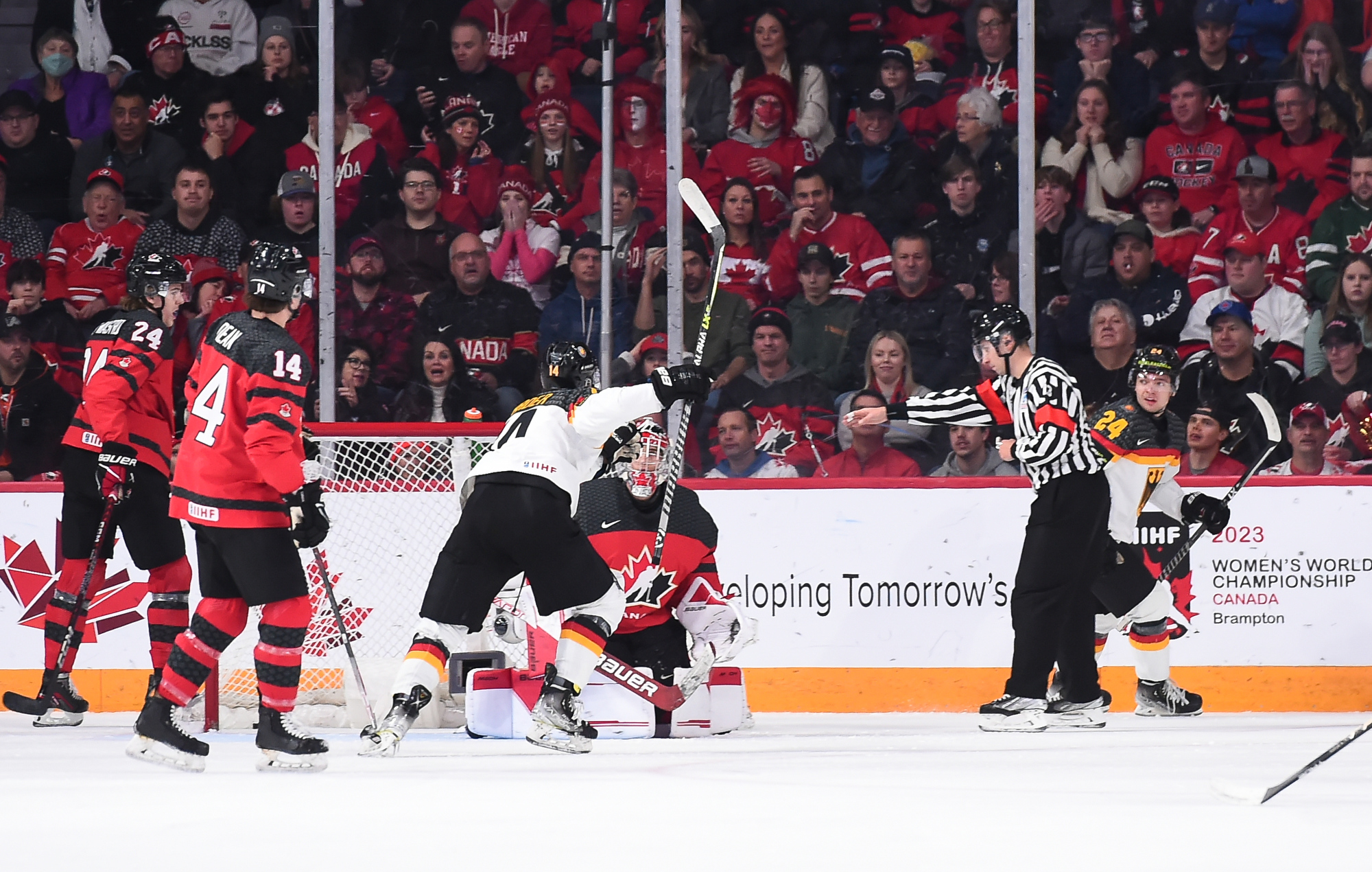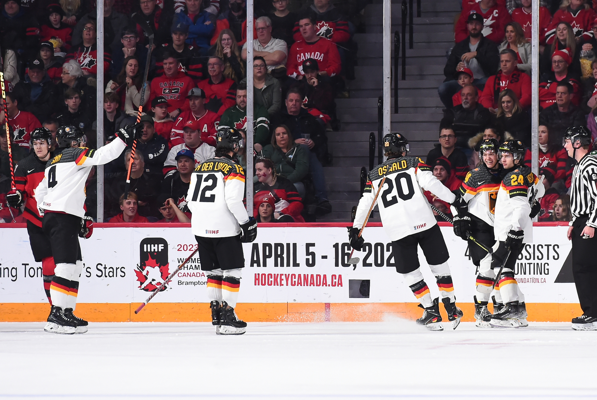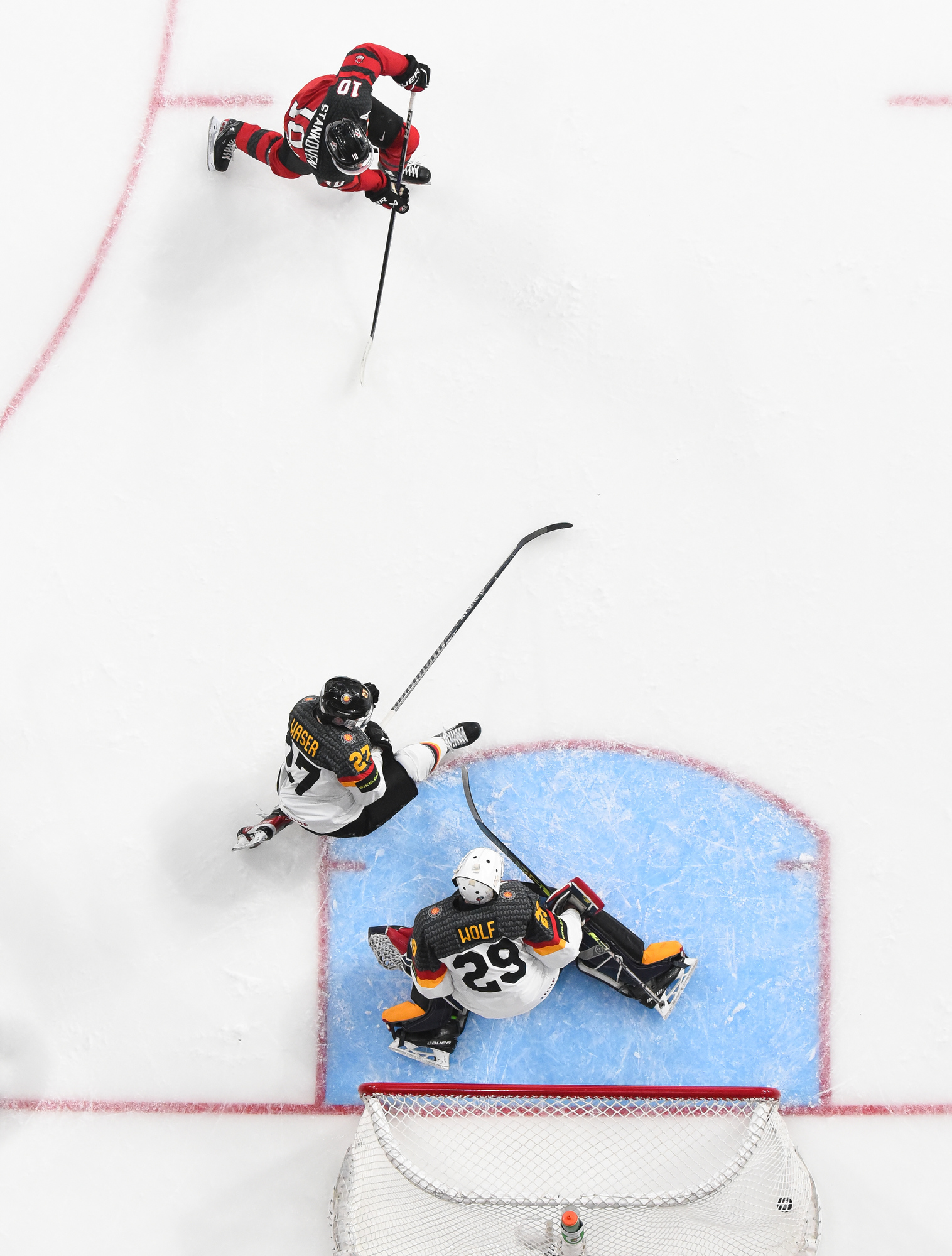 Le Canada a atteint le cap de la dizaine à 1:22 de la troisième période sur un long tir de Zack Ostapchuk qui a battu Rihards Babulis. Celui-ci s’était amené en relève d’un Wolf malmené et en était à ses débuts avec l’équipe allemande.