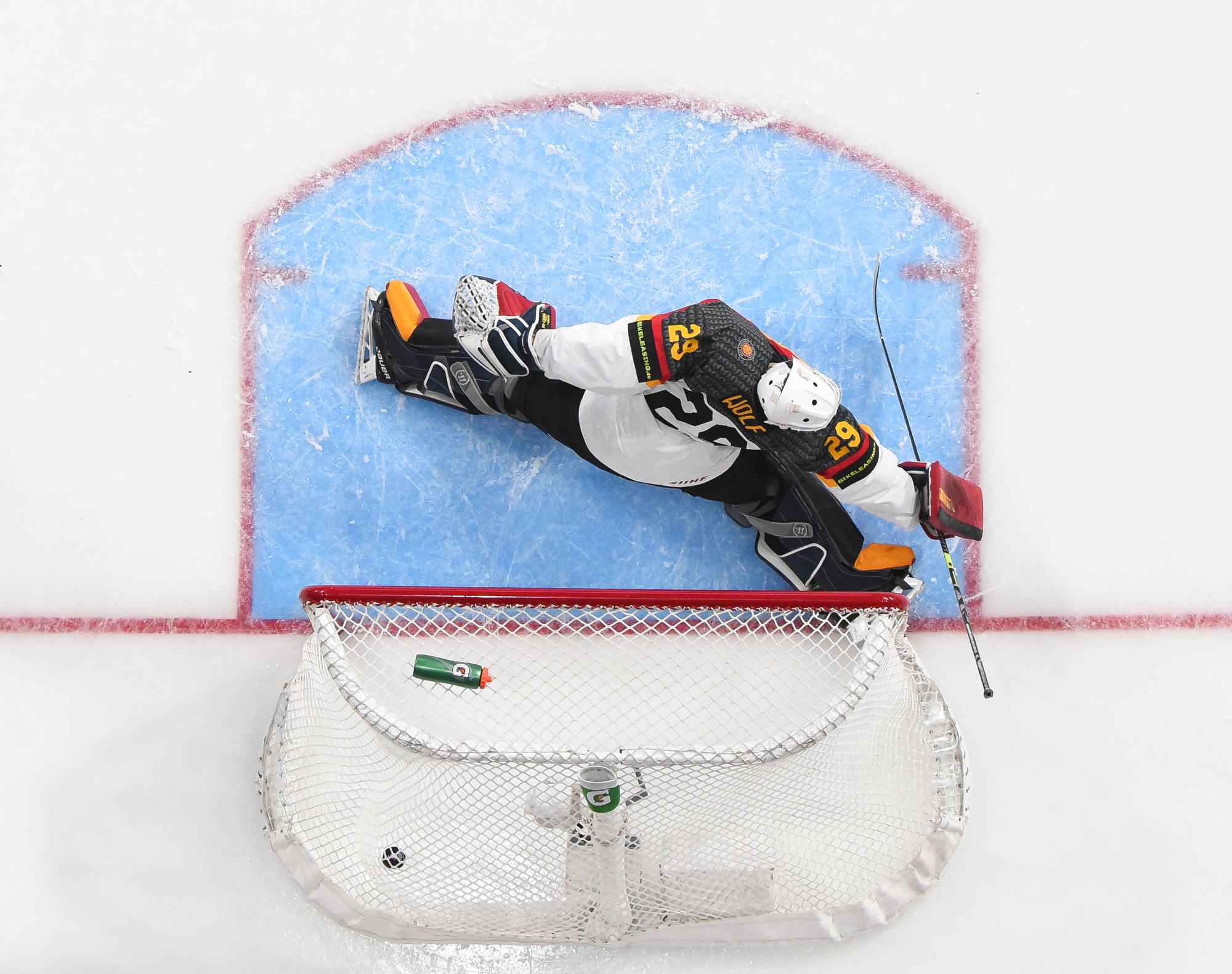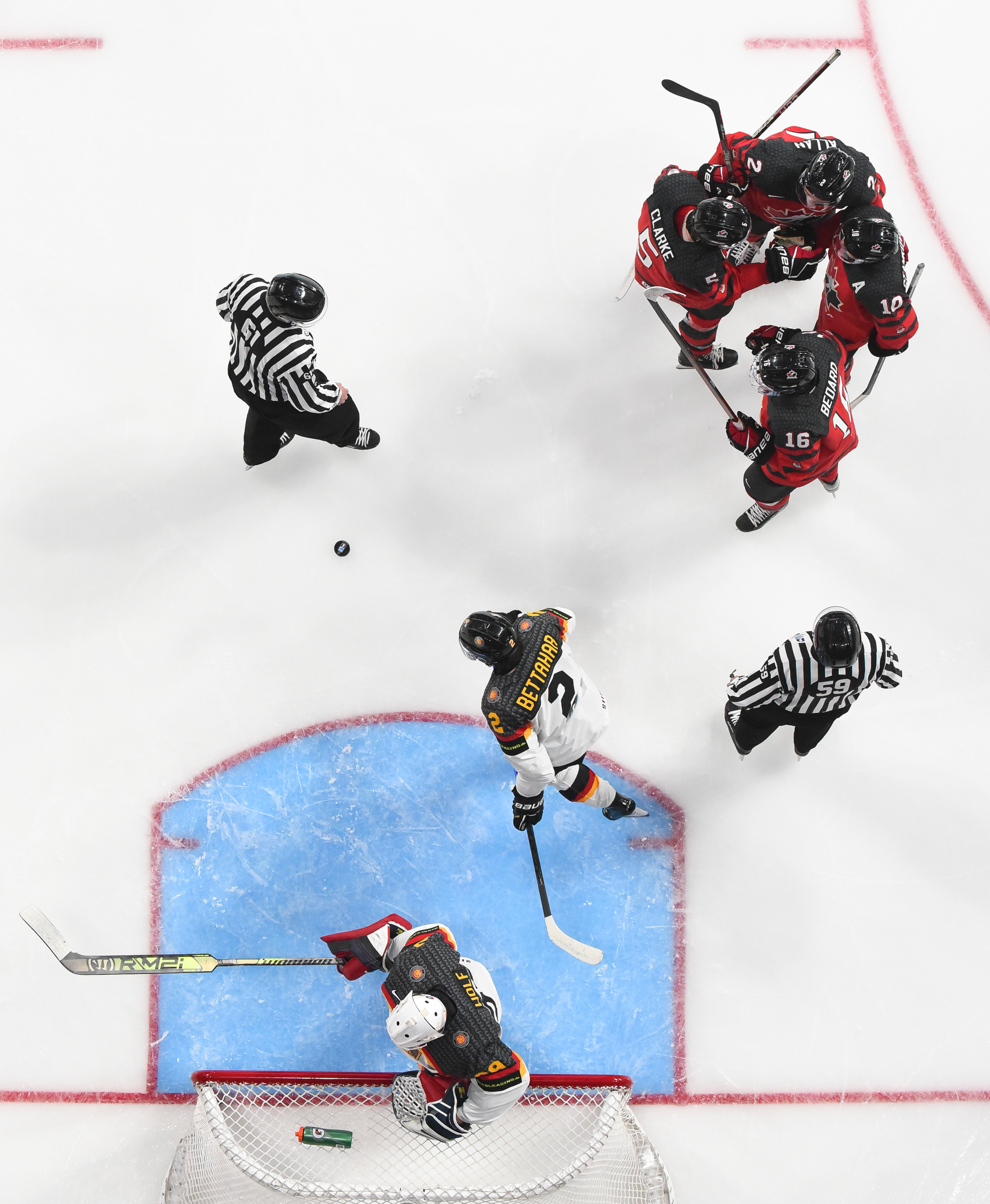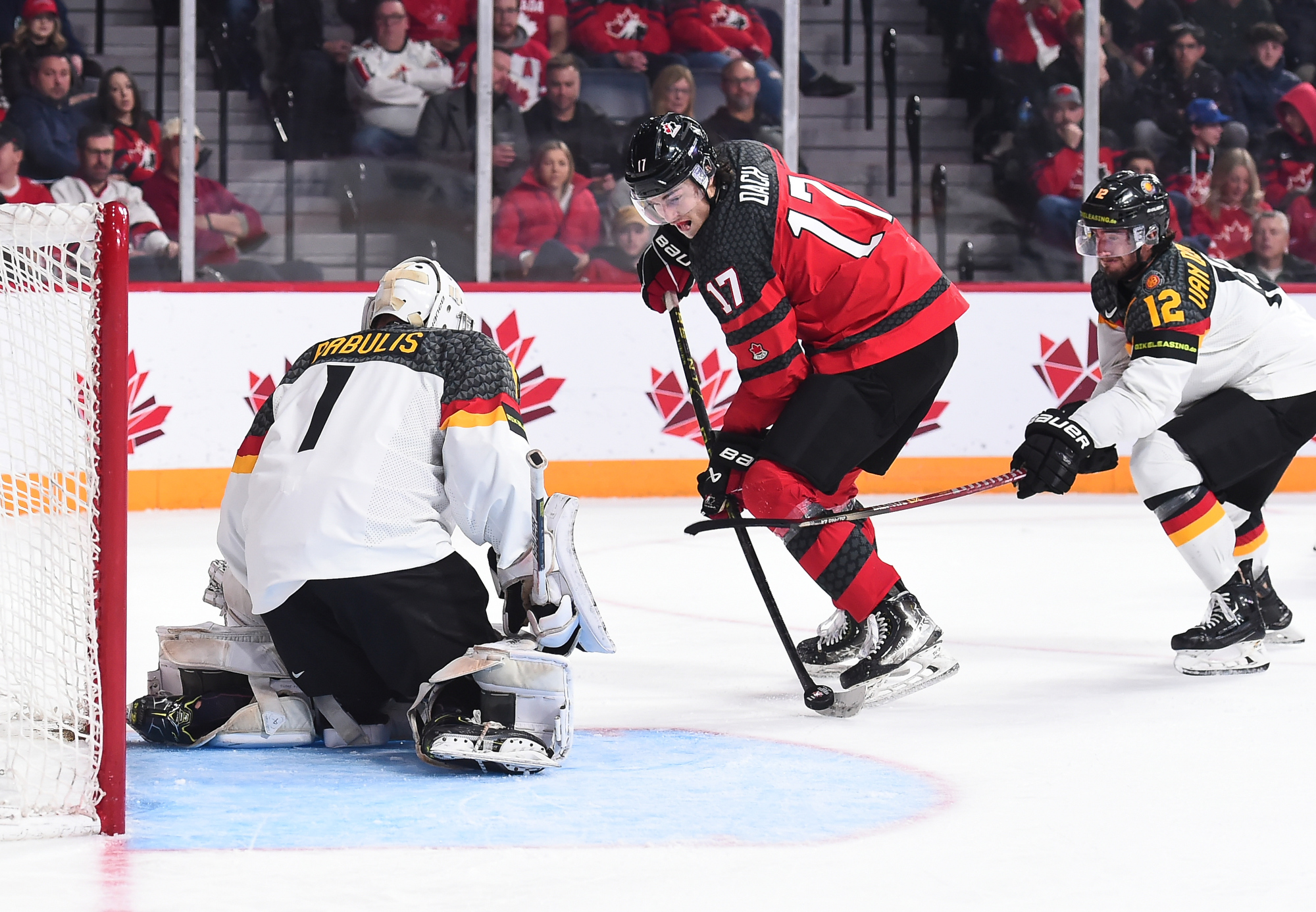 Le Canada a atteint le cap de la dizaine à 1:22 de la troisième période sur un long tir de Zack Ostapchuk qui a battu Rihards Babulis. Celui-ci s’était amené en relève d’un Wolf malmené et en était à ses débuts avec l’équipe allemande.
