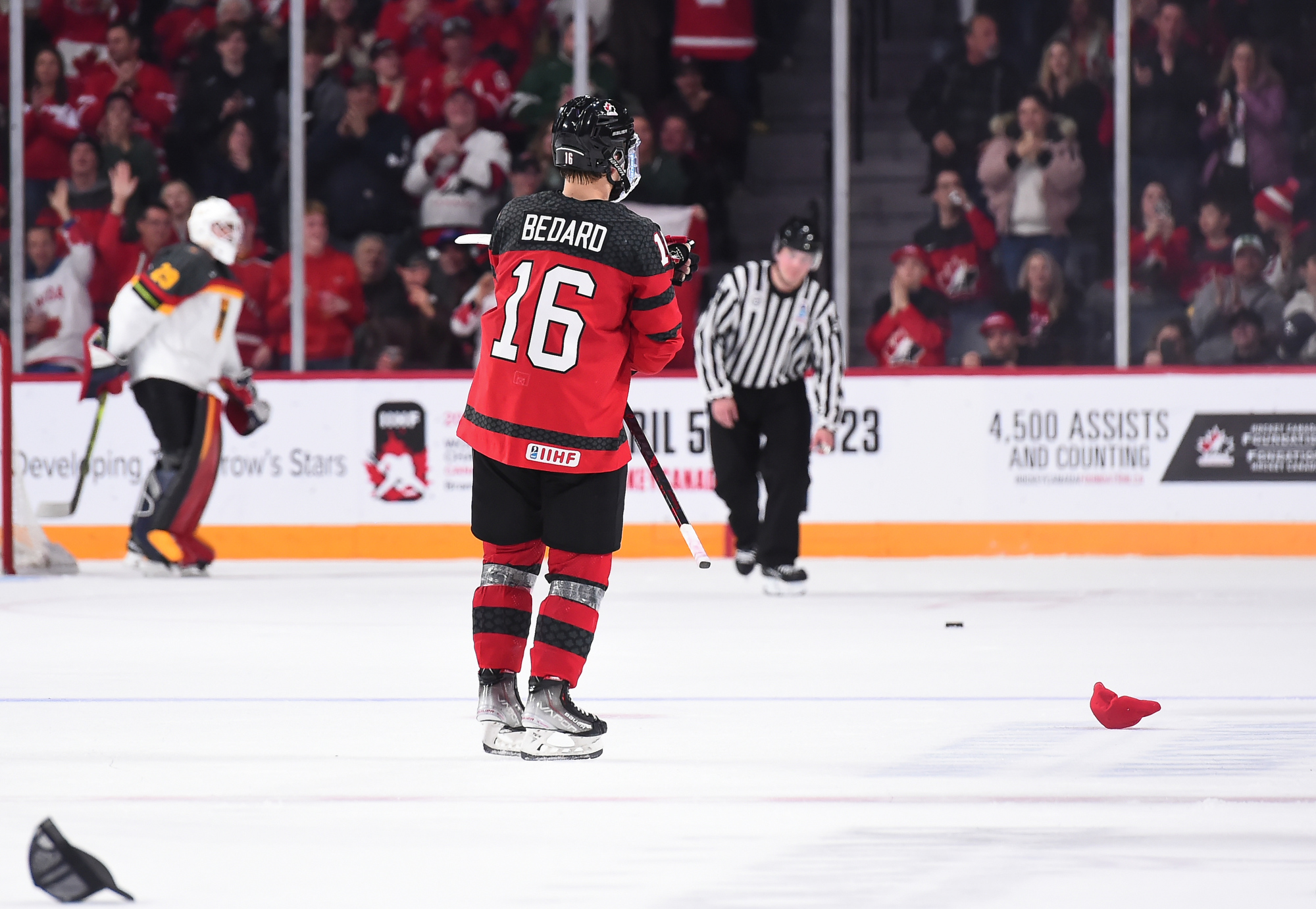 Connor Bedard a été dominant du début à la fin du match, marquant un joli bijou de but à l’issue d’une échappée en première période et menant le Canada vers un gain de 11-2 contre l’Allemagne.