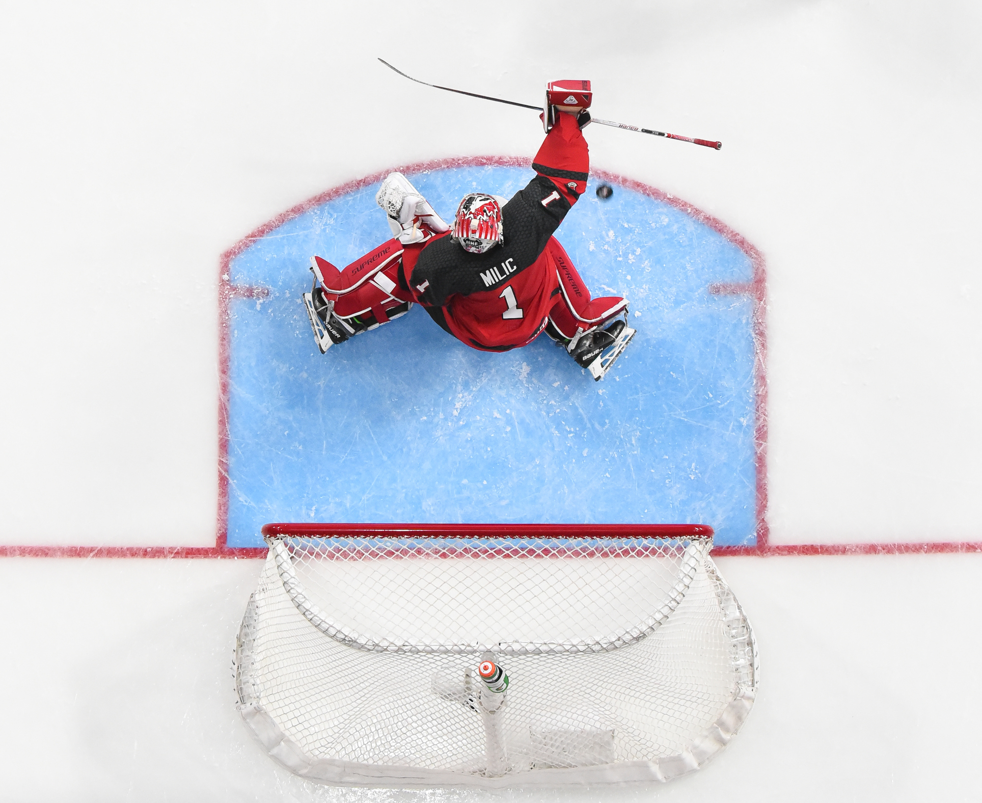 Moins de cinq minutes plus tard, toutefois, les Allemands ont créé l’égalité au moyen d’un but qui avait un odeur trop familière pour les partisans qui espéraient voir du jeu plus solide devant le filet de l’équipe locale. Le tir des poignets de routine de Roman Kechter s’est faufilé entre les jambières de Thomas Milic à 11:08 et les partisans ont maugréé. Milic a disputé la deuxième moitié du premier match de l’équipe après avoir remplacé Benjamin Gaudreau, qui a accordé cinq buts au cours d’une soirée difficile.