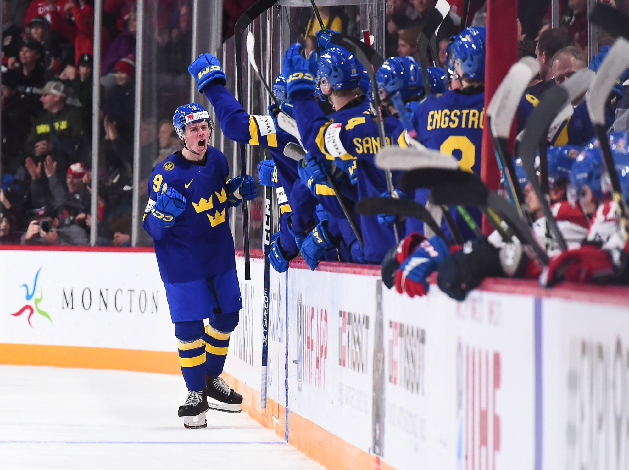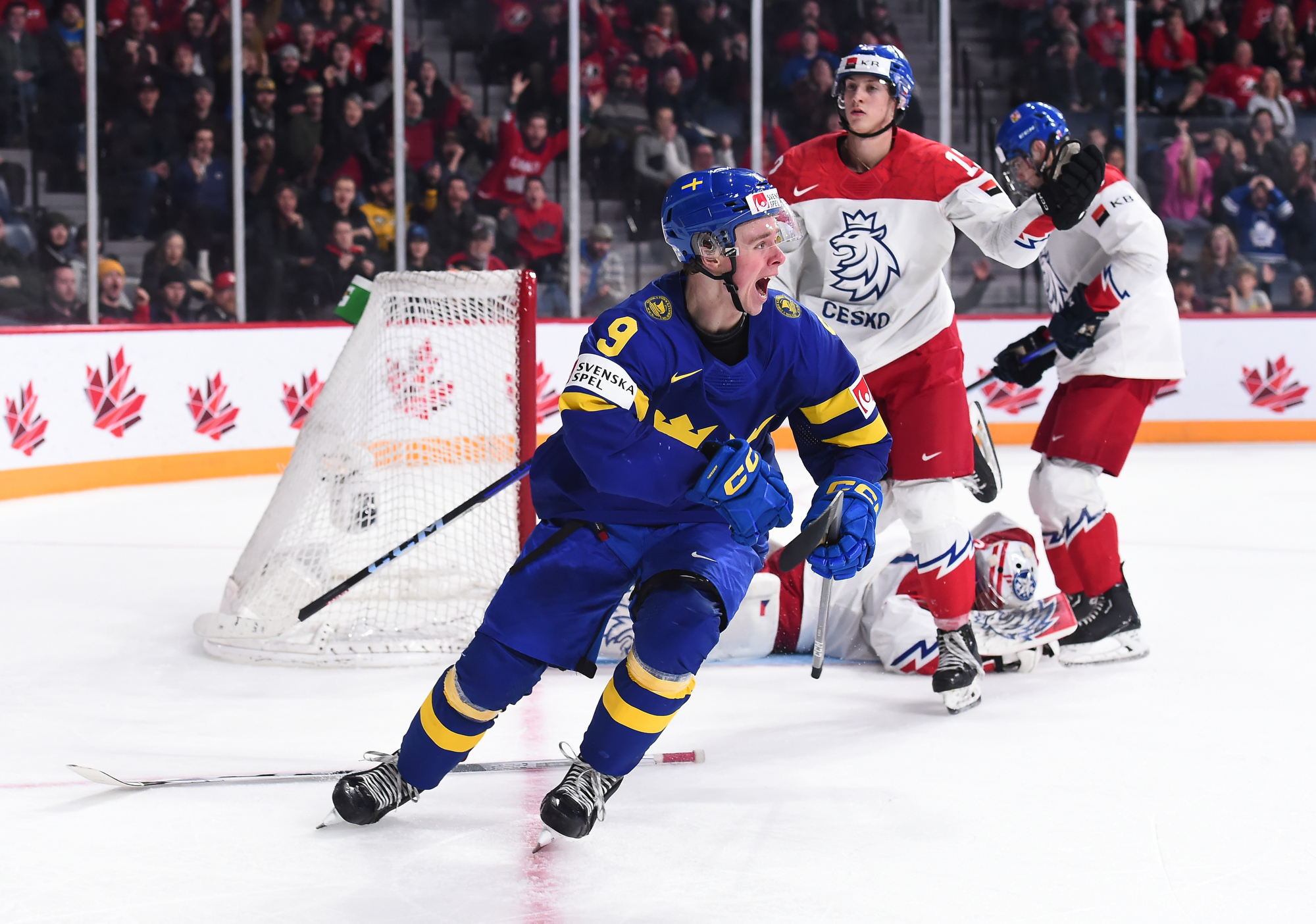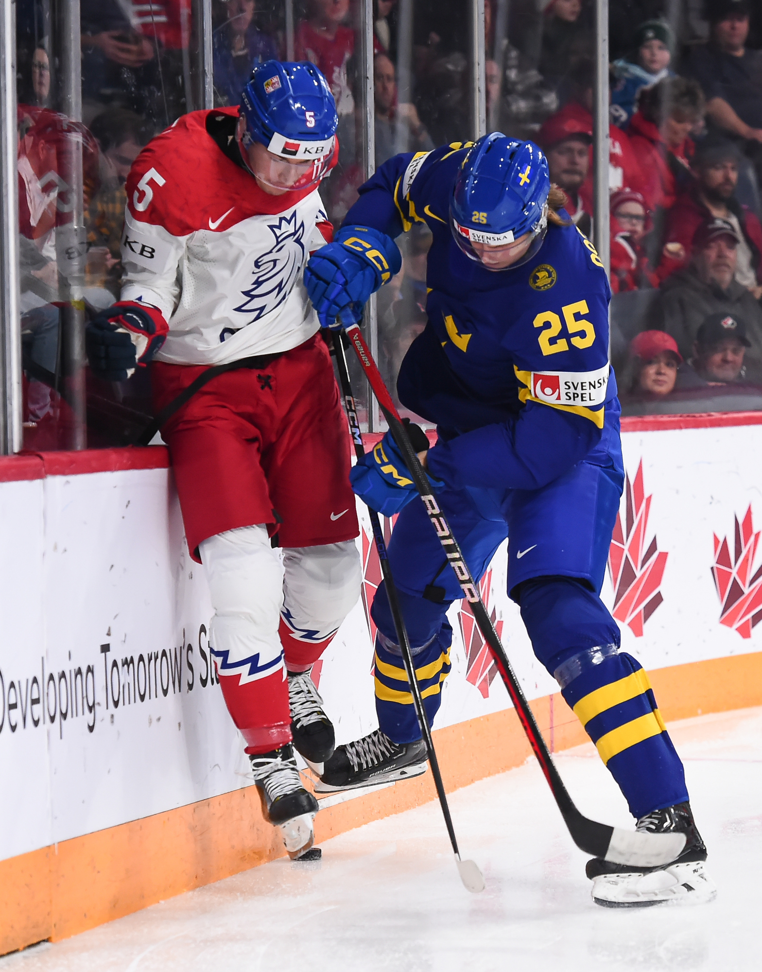 Toutefois, ses coéquipiers ont répliqué moins de deux minutes plus tard. William Stromgren a appliqué de la pression sur Tomas Hamara derrière le filet tchèque, et Hamara a perdu le contrôle de la rondelle. Fabian Wagner s’en est emparé et il a aussitôt décoché un boulet qui a battu Suchanek et permis de créer l’égalité. Puis, moins d’une minute et demie plus tard, la Suède a pris l’avance au score pour la première fois du match quand Ludwig Jansson s’est avancé de la ligne bleue et a décoché un solide tir qu’il a dirigé au-dessus du gant de Suchanek à 6:58.