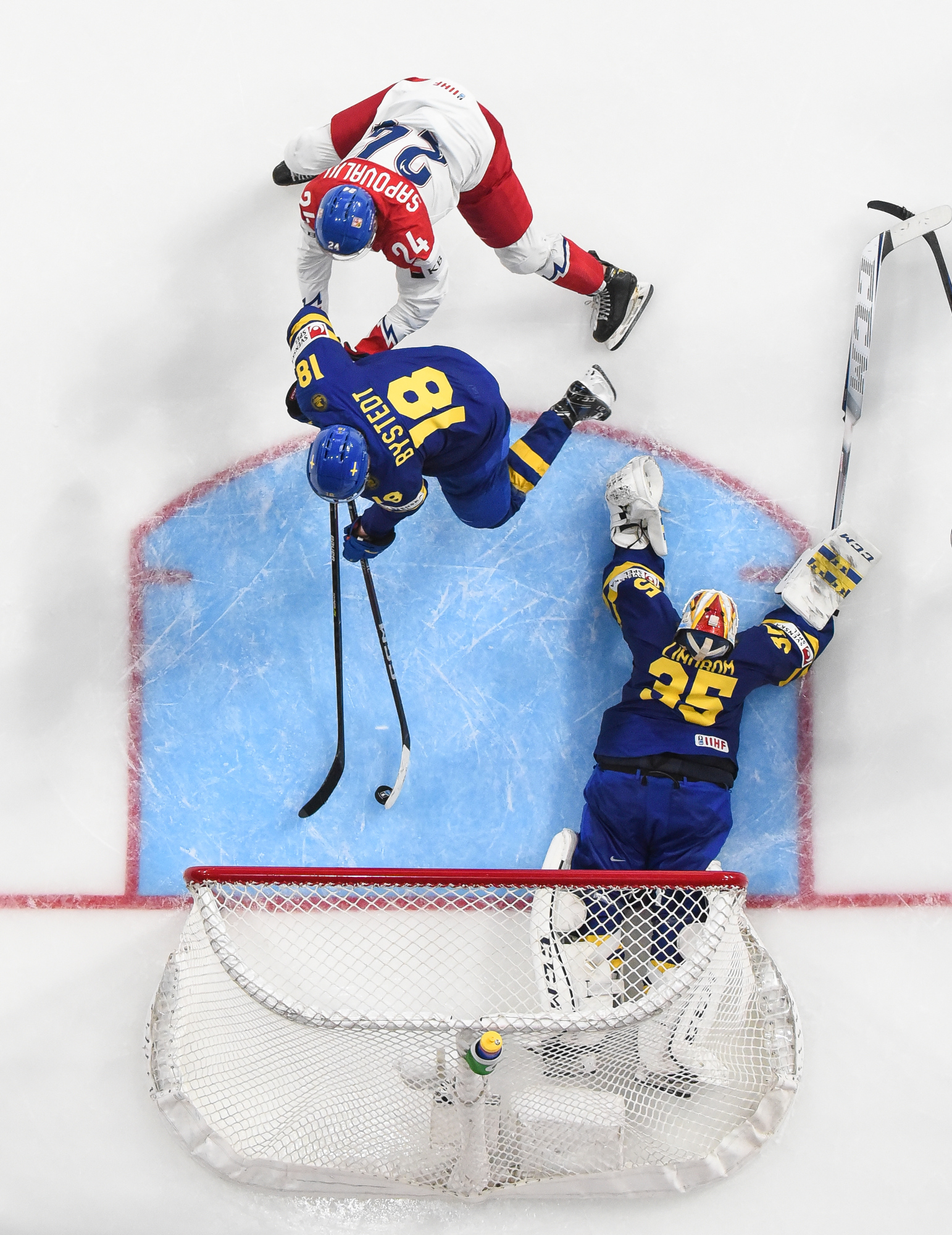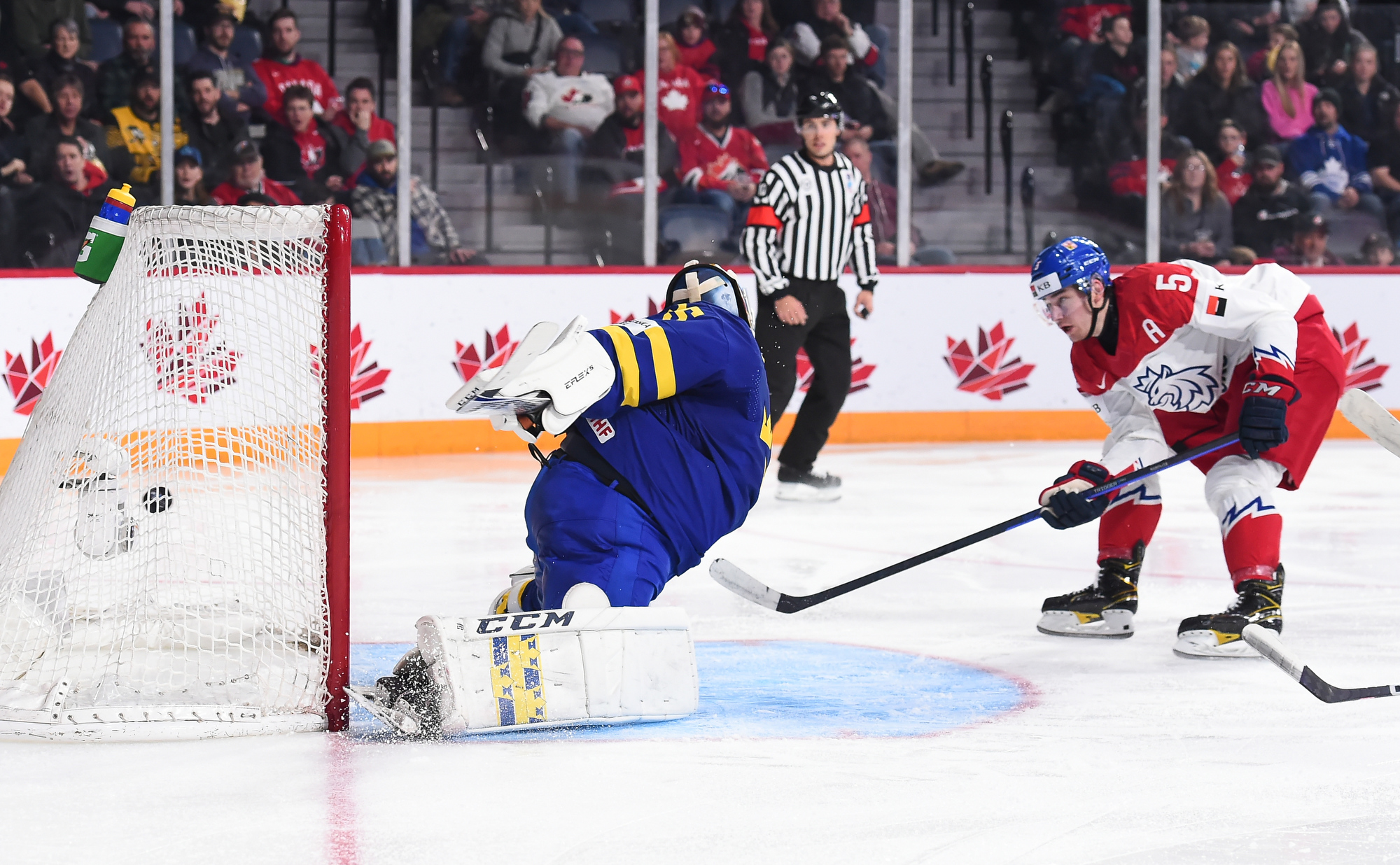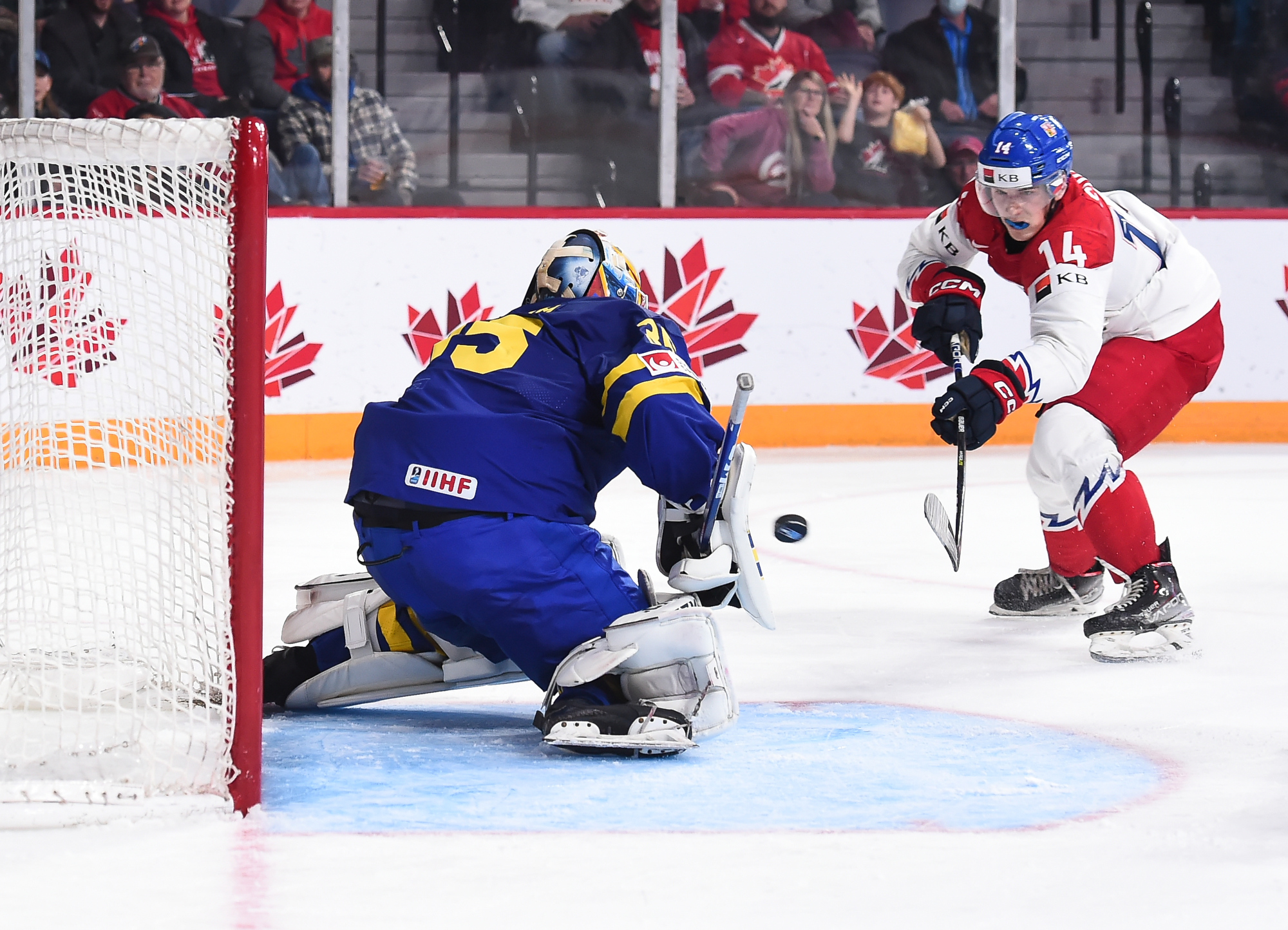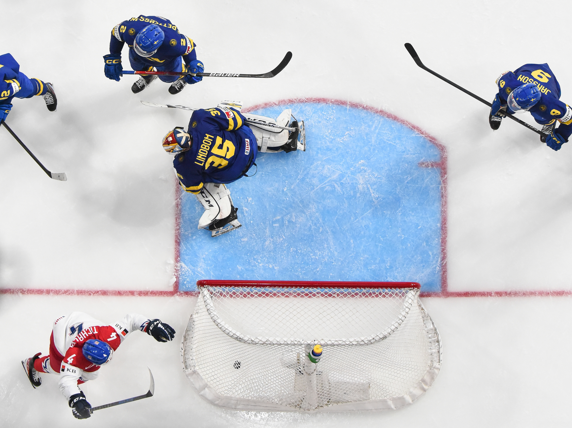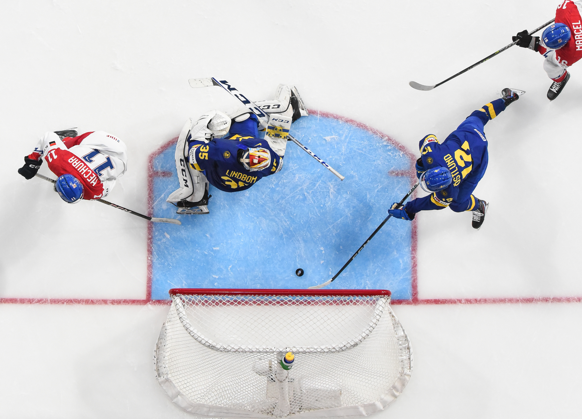 La Suède affichait son habituel style défensif sans faille en troisième période quand, petit à petit et en affichant une belle patience, les Tchèques ont travaillé sans relâche et ont fini par provoquer l’égalité. Lindbom a réalisé un arrêt étincelant du gant aux dépens de Gabriel Szturc puis, au milieu de l’engagement, un tir s’est faufilé entre ses jambières, mais Noah Ostlund a réussi à dégager la rondelle alors que celle-ci se trouvait tout près de la ligne de but.