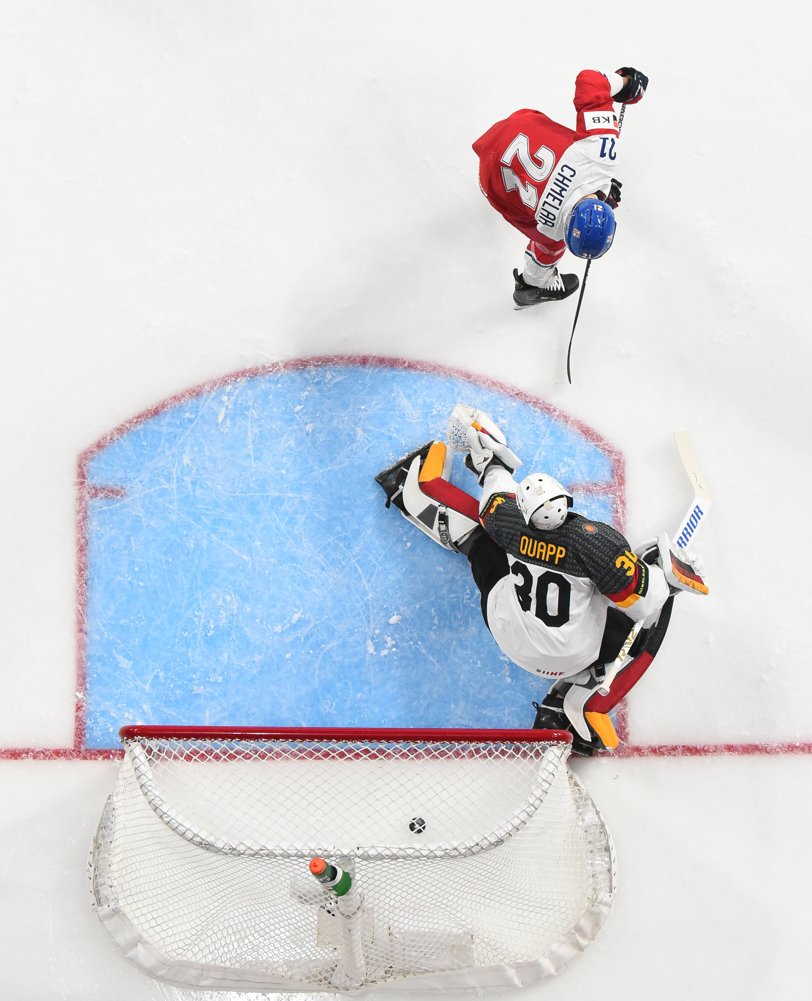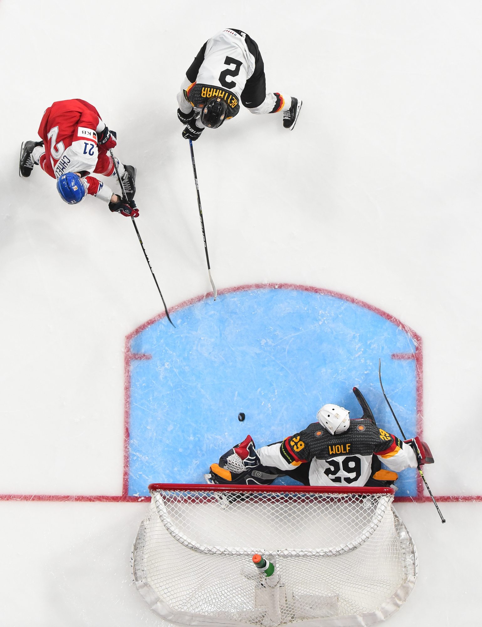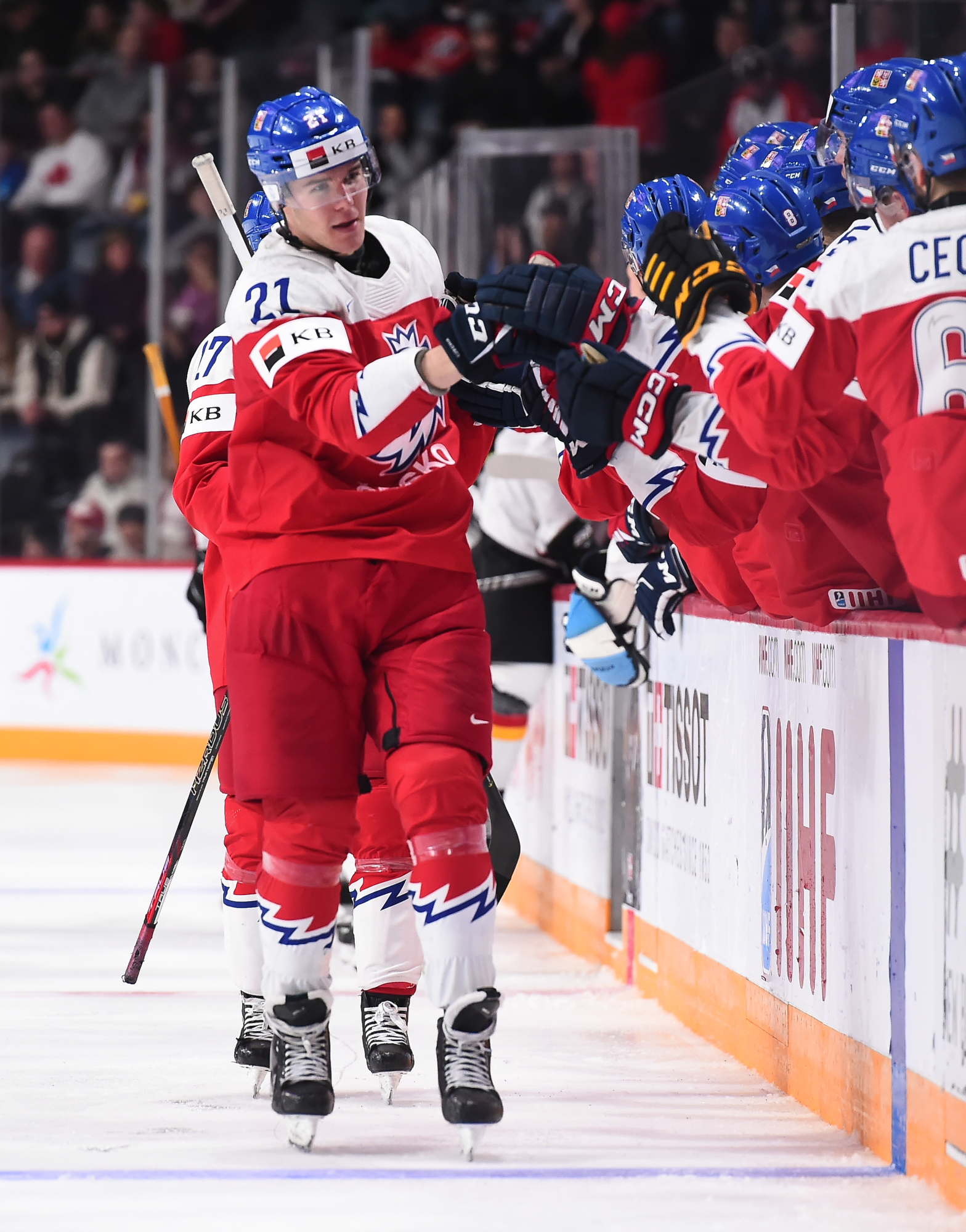 Les Tchèques ont amorcé la deuxième période en provoquant un hors-jeu six fois au cours des premières minutes et peu avant la mi-match, l’entraîneur Tobias Abstreiter achangé son gardien, retirant Quapp au profit de Simon Wolf. Il avait précédemment joué deux périodes, accordant neuf buts au Canada. Ce soir, il a accordé un but dès le premier tir dirigé contre lui quand Jakub Brabenec a effectué une belle passe devant le filet à Jaroslav Chmelar à 9:38 porter la marque à 3-0.