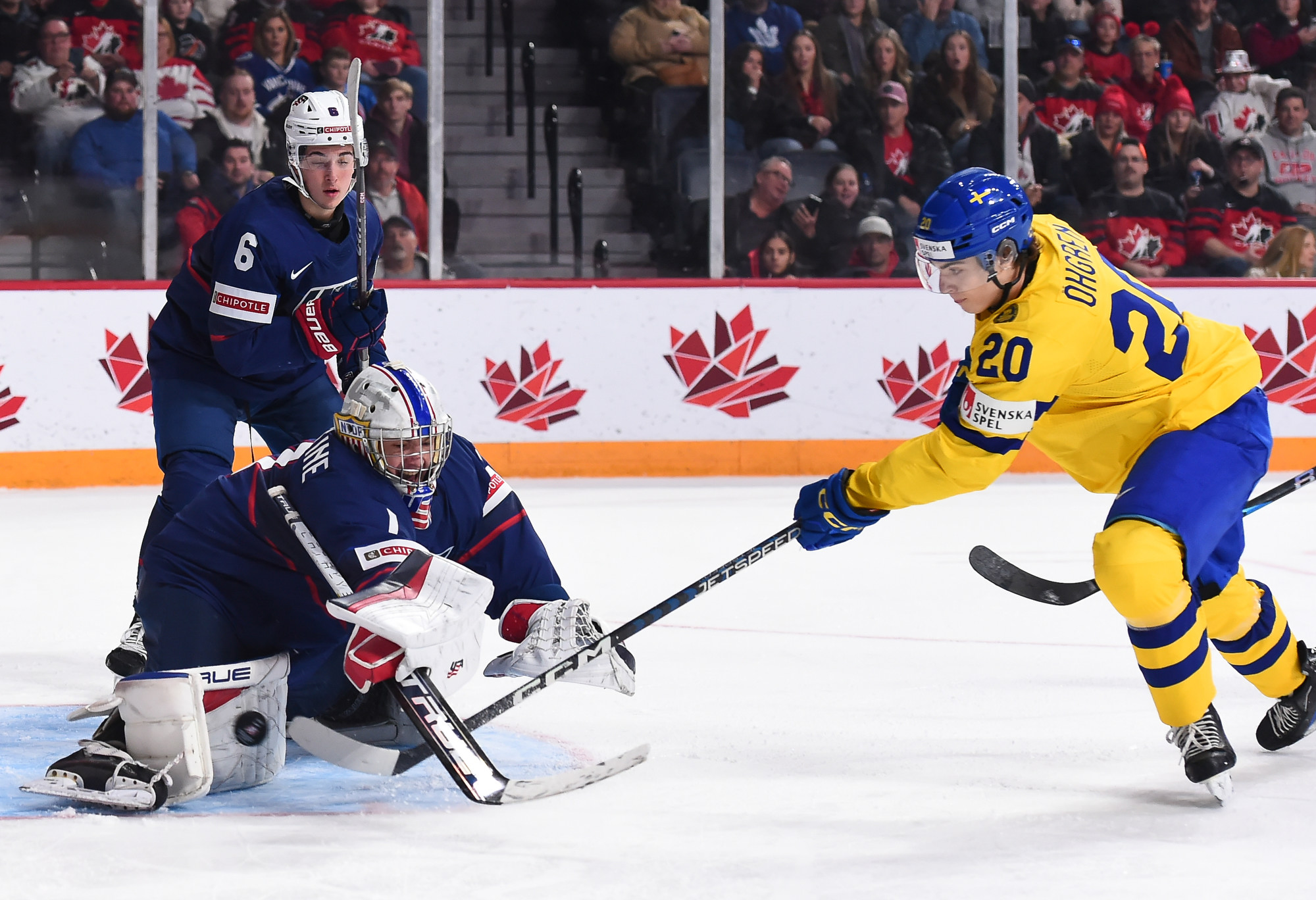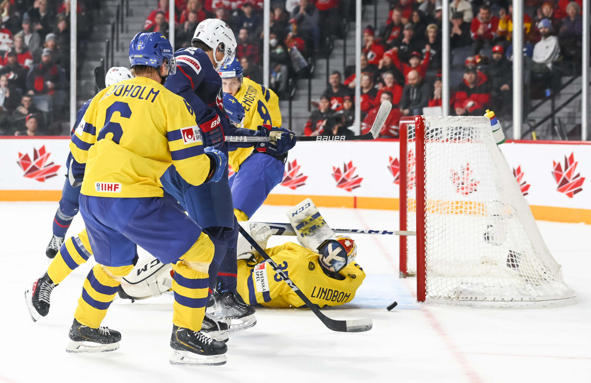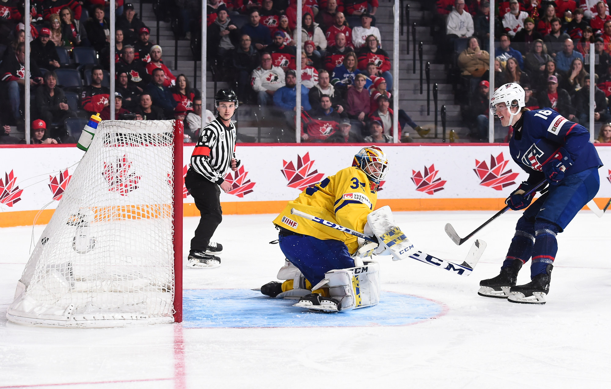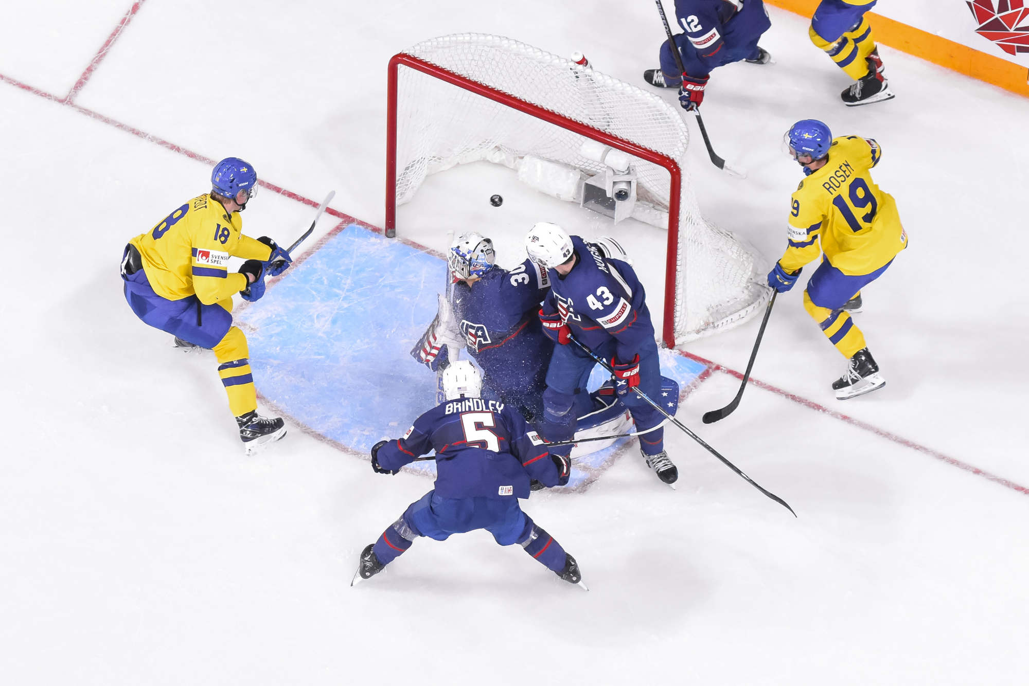 Snuggerud a remporté une bataille pour la rondelle derrière le gardien de but, qu’il a livrée à l’adjoint au capitaine de l’équipe suédoise Victor Sjoholm, puis il a dirigé une passe du revers devant en direction du meilleur marqueur des États-Unis. Le joueur de centre de l’Université du Minnesota a décoché un tir frappé à bout portant au-delà du gant de Lindbom à 2:51. Il en était à son septième but, un sommet dans l’équipe américaine à ce tournoi, et cela a fait de lui le seul joueur des États-Unis à inscrire un point dans chacun des matchs du Mondial junior de cette année.