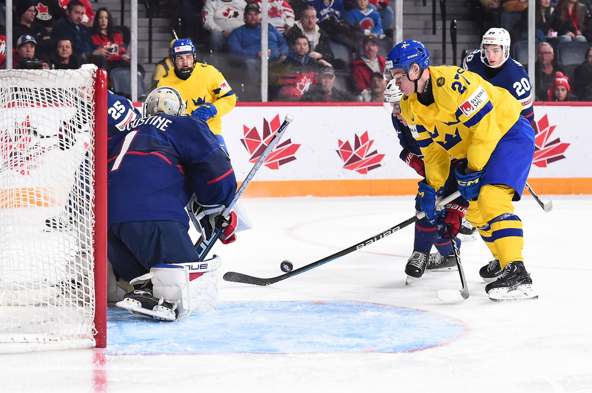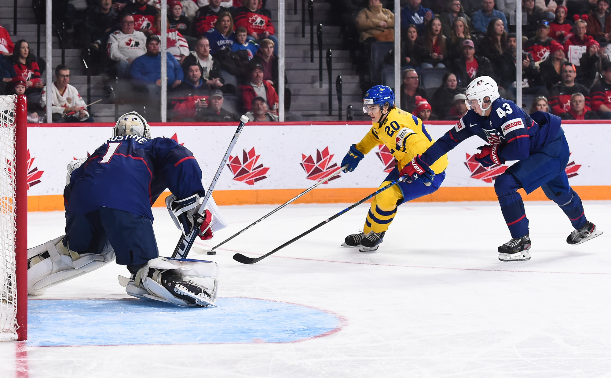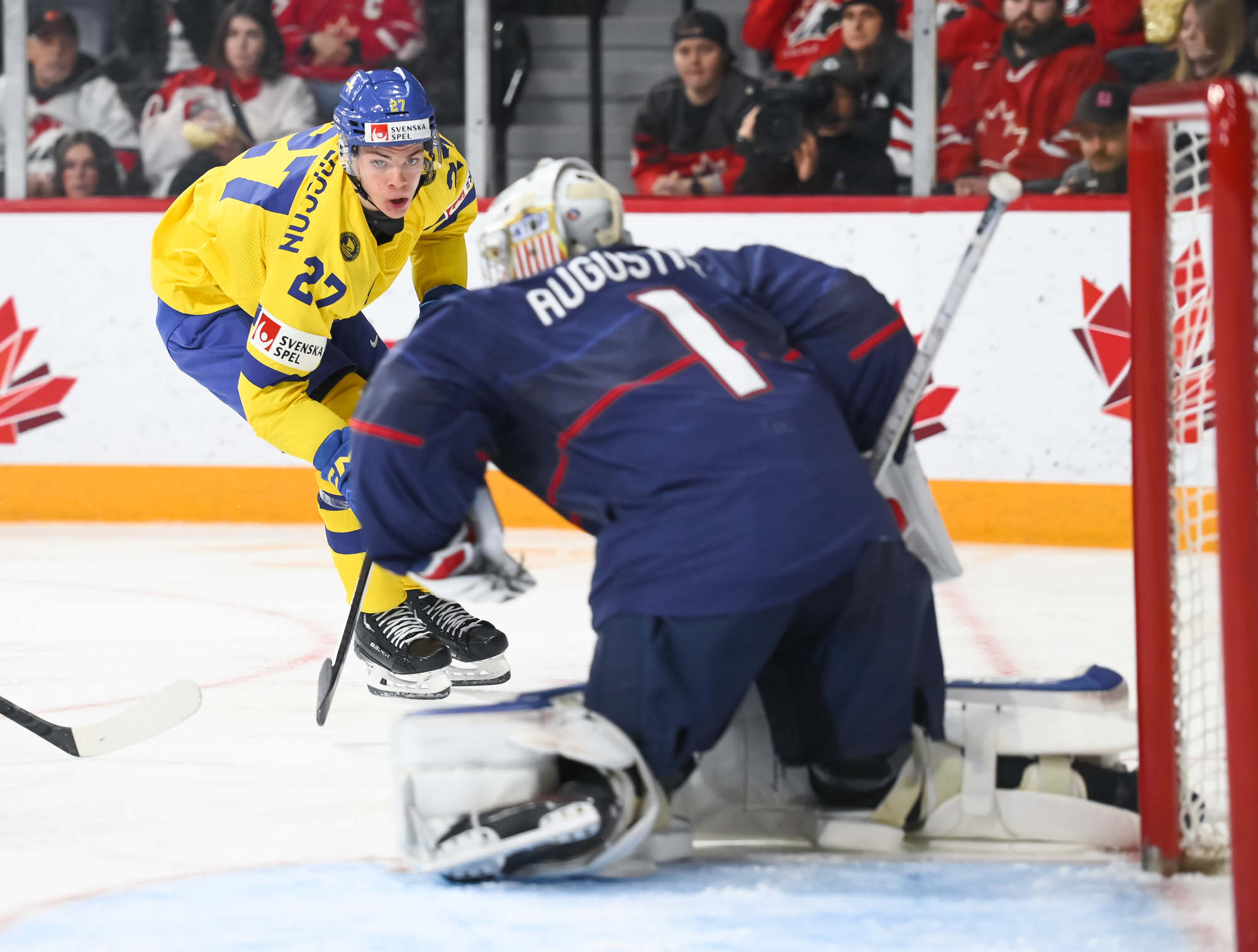 Snuggerud a remporté une bataille pour la rondelle derrière le gardien de but, qu’il a livrée à l’adjoint au capitaine de l’équipe suédoise Victor Sjoholm, puis il a dirigé une passe du revers devant en direction du meilleur marqueur des États-Unis. Le joueur de centre de l’Université du Minnesota a décoché un tir frappé à bout portant au-delà du gant de Lindbom à 2:51. Il en était à son septième but, un sommet dans l’équipe américaine à ce tournoi, et cela a fait de lui le seul joueur des États-Unis à inscrire un point dans chacun des matchs du Mondial junior de cette année.