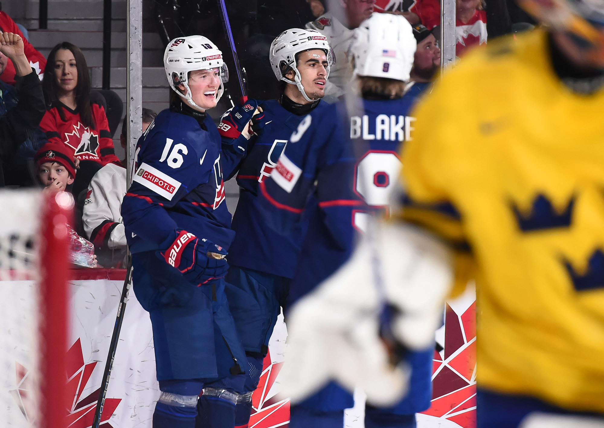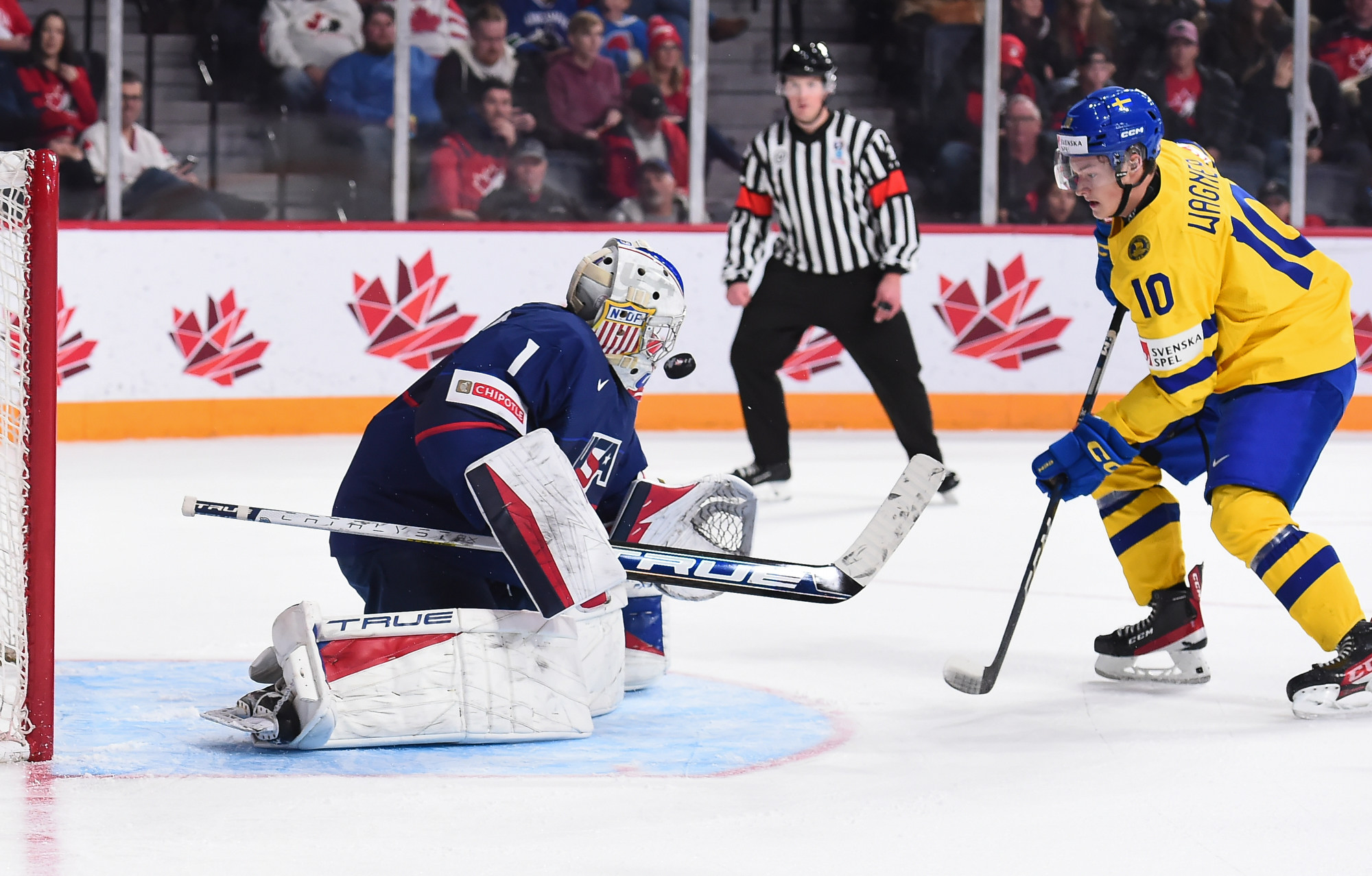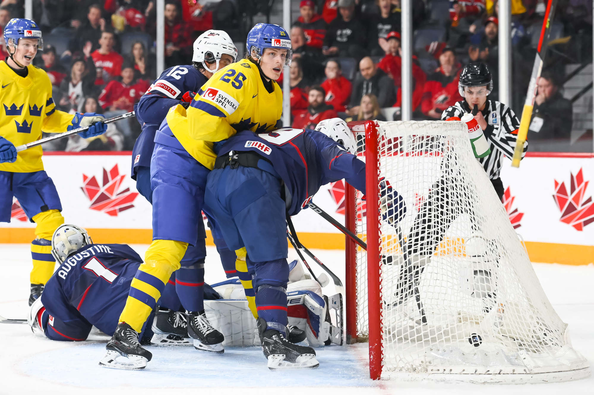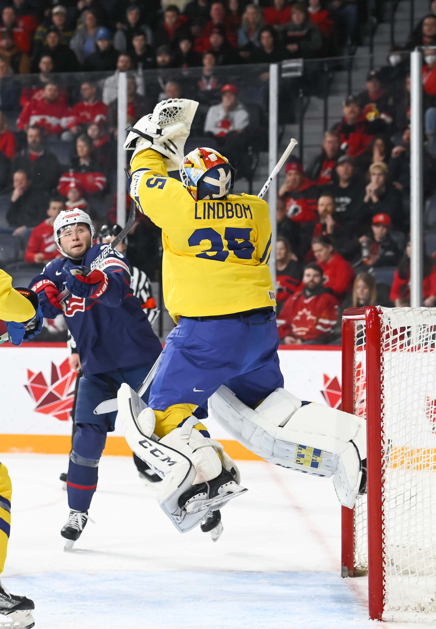 Snuggerud a remporté une bataille pour la rondelle derrière le gardien de but, qu’il a livrée à l’adjoint au capitaine de l’équipe suédoise Victor Sjoholm, puis il a dirigé une passe du revers devant en direction du meilleur marqueur des États-Unis. Le joueur de centre de l’Université du Minnesota a décoché un tir frappé à bout portant au-delà du gant de Lindbom à 2:51. Il en était à son septième but, un sommet dans l’équipe américaine à ce tournoi, et cela a fait de lui le seul joueur des États-Unis à inscrire un point dans chacun des matchs du Mondial junior de cette année.