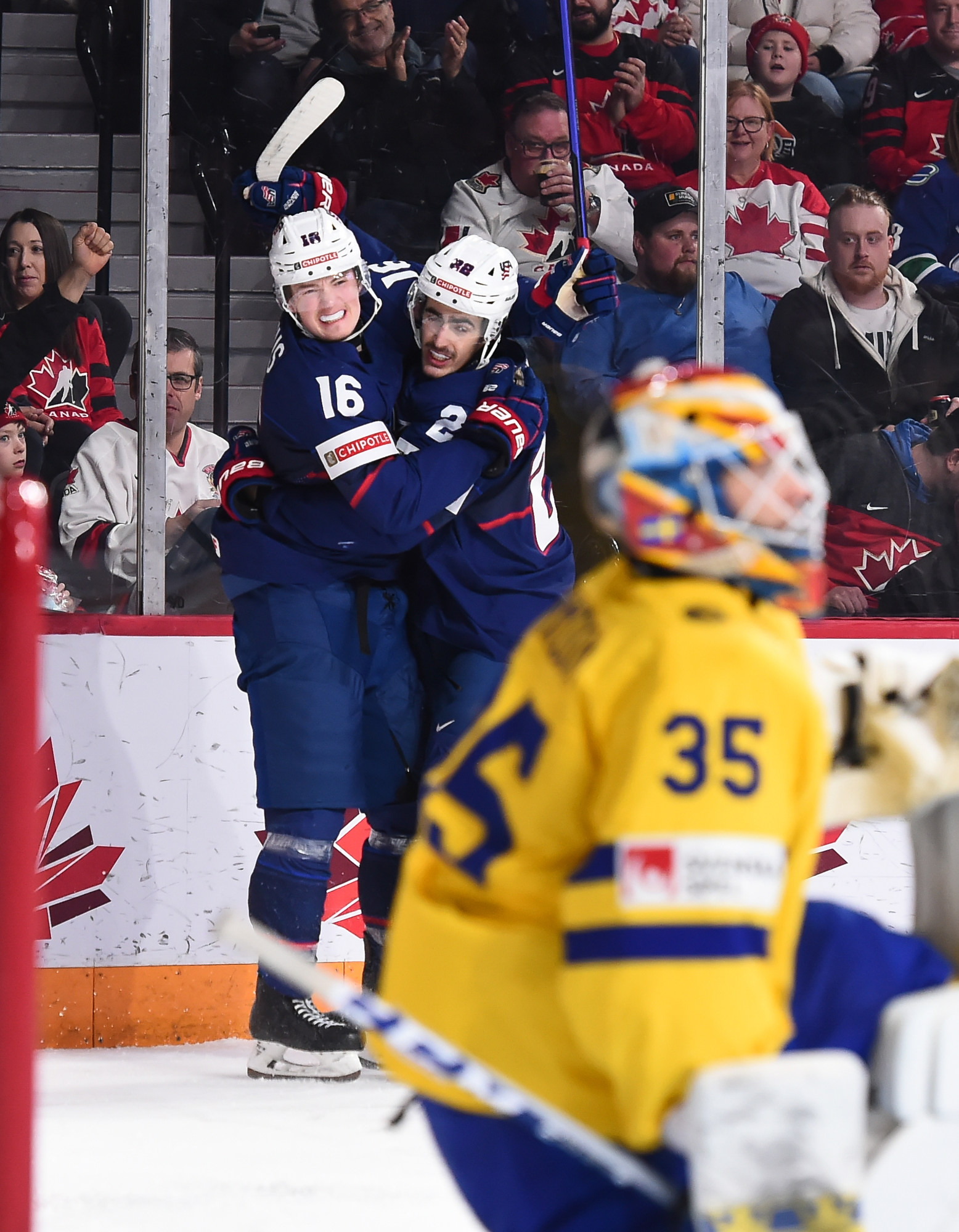 Du côté des autres joueurs américains qui se sont inscrits au pointage, Cutter Gauthier a fait mouche deux fois tandis que Logan Cooley et Ryan Ufko ont chacun inscrit un but et une mention d’aide. Luke Hughes a enfilé un but. Rutger McGroarty a récolté trois mentions d’aide, tandis que Jimmy Snuggerud et Jackson Blake ont enregistré deux aides chacun.