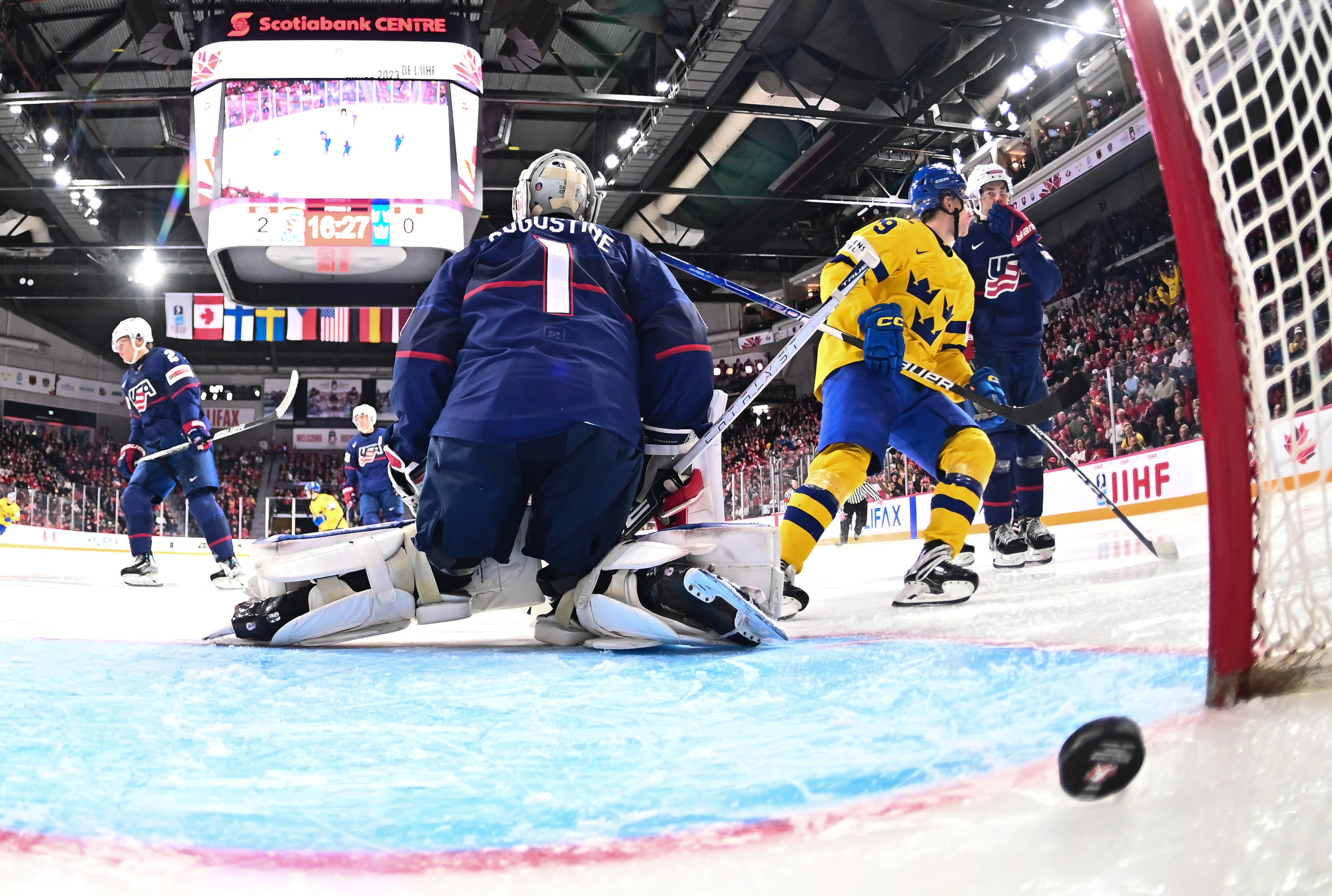 La Suède a riposté à 3:33. À l’occasion d’une poussée à l’attaque, Bystedt s’est amené en zone américaine, a accepté une passe en retrait de Jonathan Lekkerimaki, puis il a battu Augustine au moyen d’un tir précis du côté du gant.