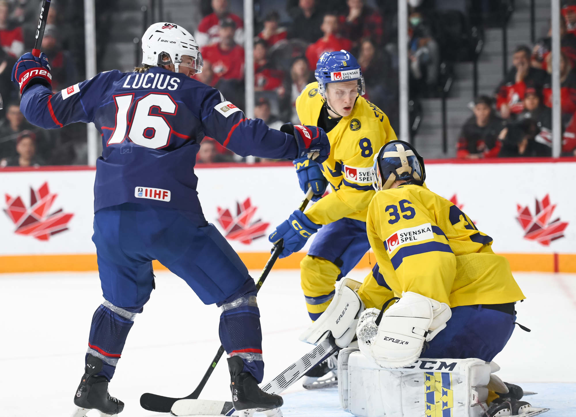 À 13:37, un Lucius filant à toute vitesse a pu éviter le bâton du défenseur Jacob Noren à l’intérieur du territoire suédois et il a fouetté le disque des poignets pour le loger derrière Lindbom, ce qui portait la marque à 5-3 au profit des États-Unis.