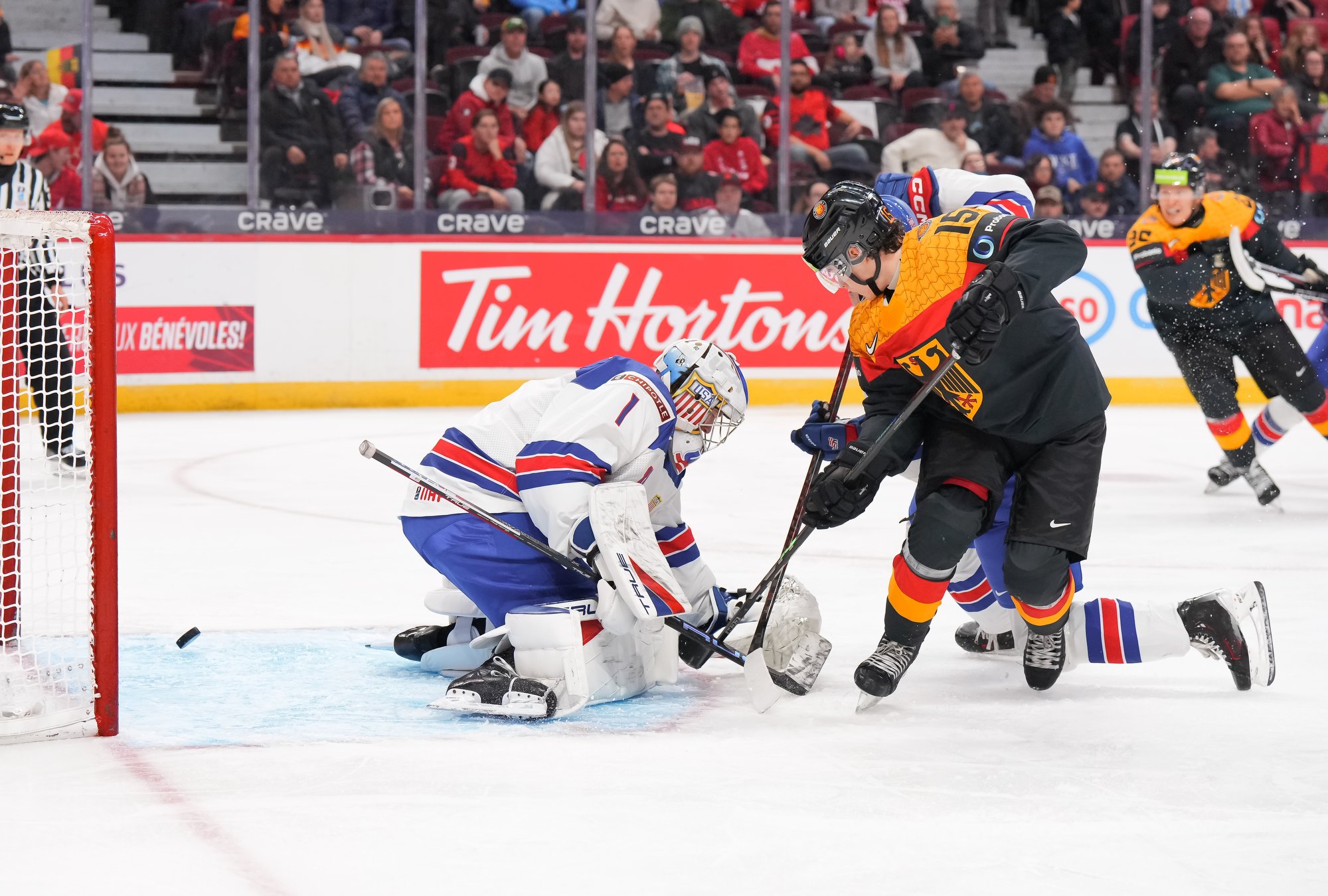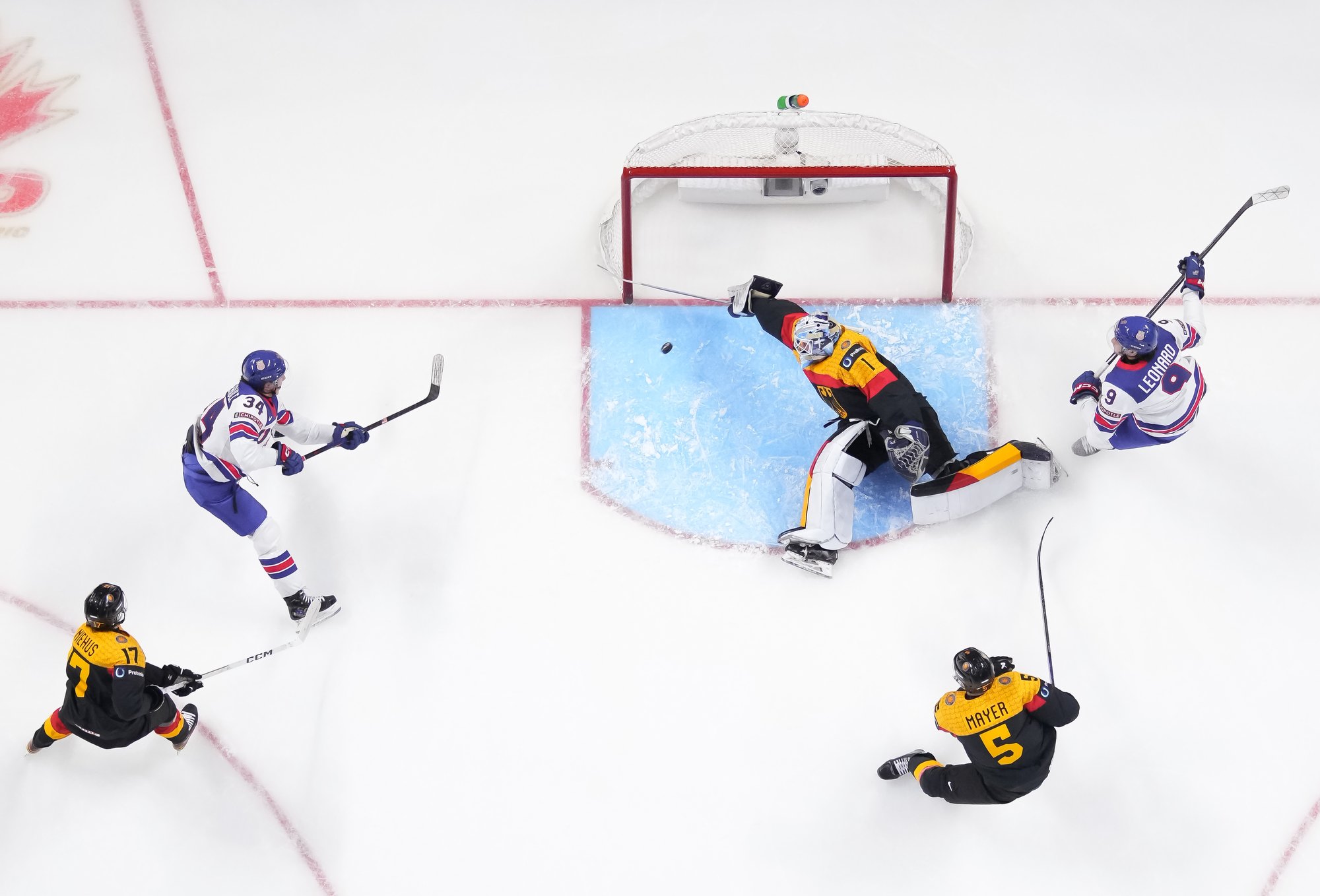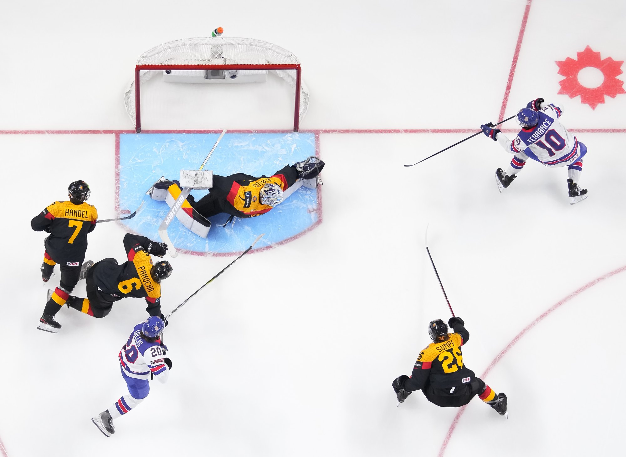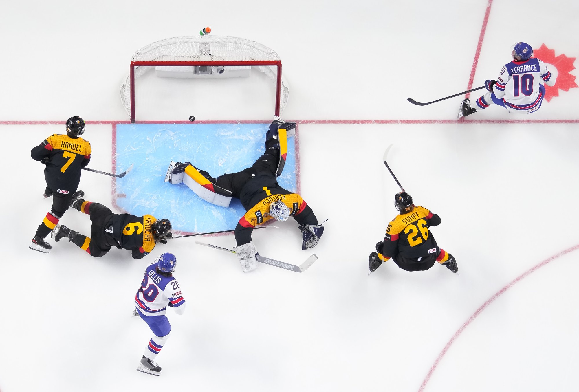 En troisième période, Brodie Ziemer a marqué deux fois, puis Carey Terrance et Eiserman ont chacun ajouté un but pour compléter la marque dans une cause gagnante. Lenny Boos et Timo Ruckdaschel ont répliqué pour l’Allemagne.