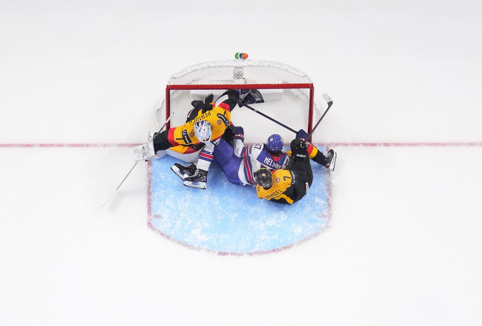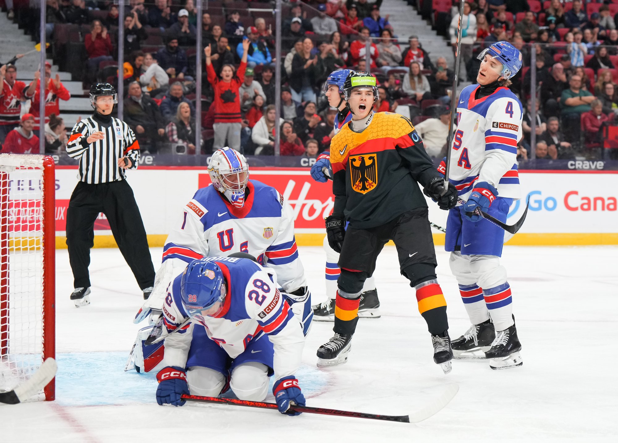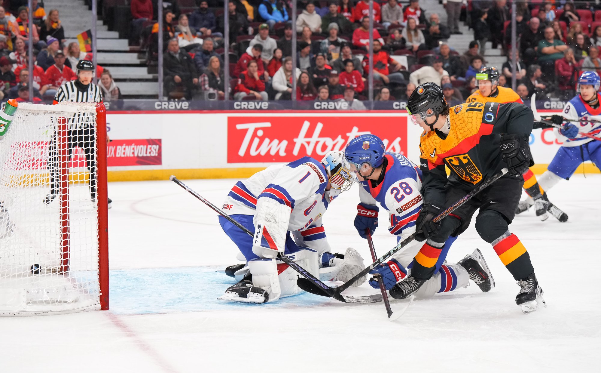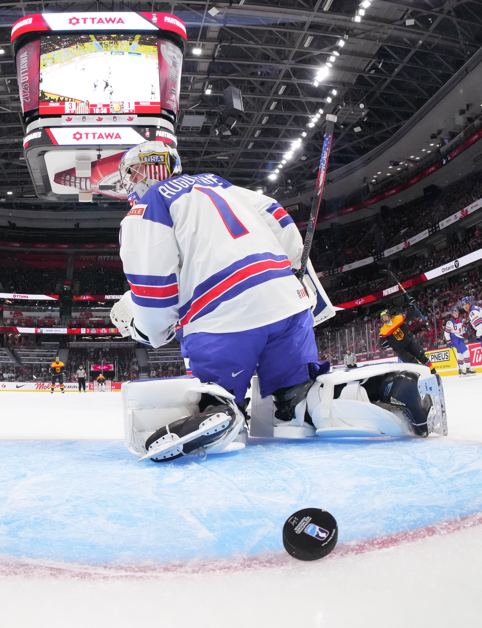 En troisième période, Brodie Ziemer a marqué deux fois, puis Carey Terrance et Eiserman ont chacun ajouté un but pour compléter la marque dans une cause gagnante. Lenny Boos et Timo Ruckdaschel ont répliqué pour l’Allemagne.