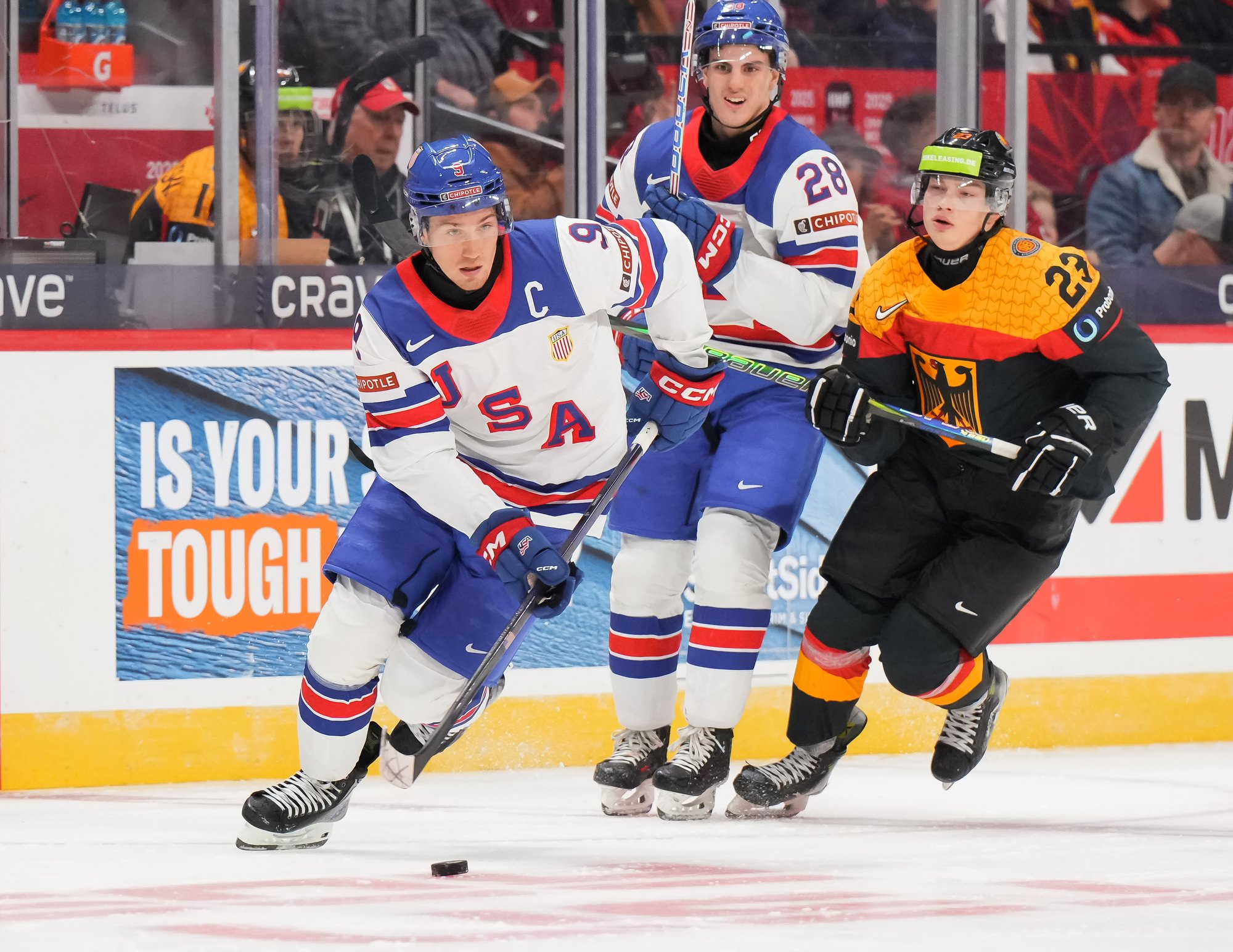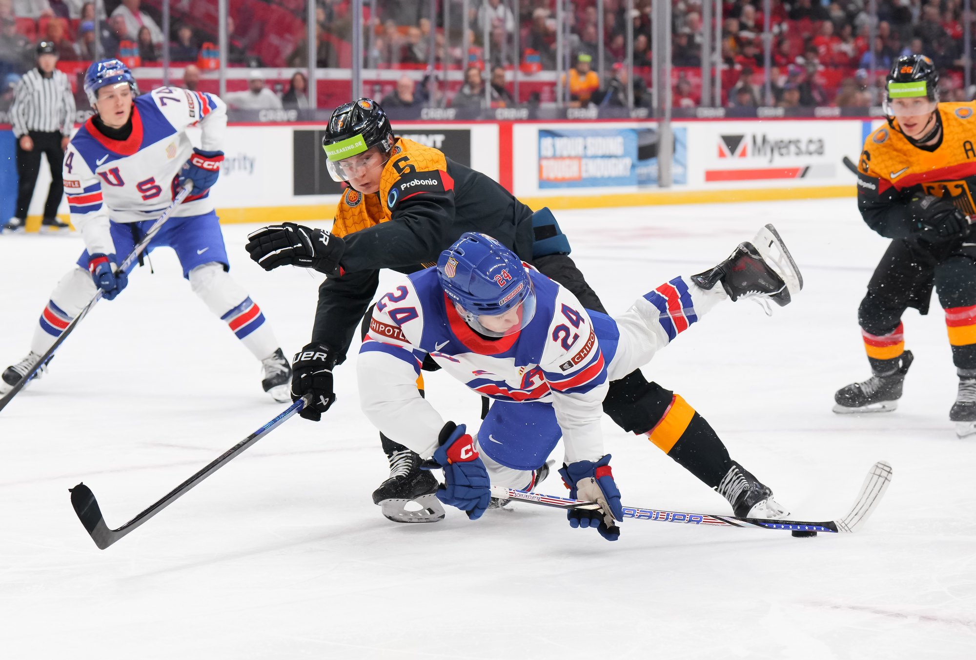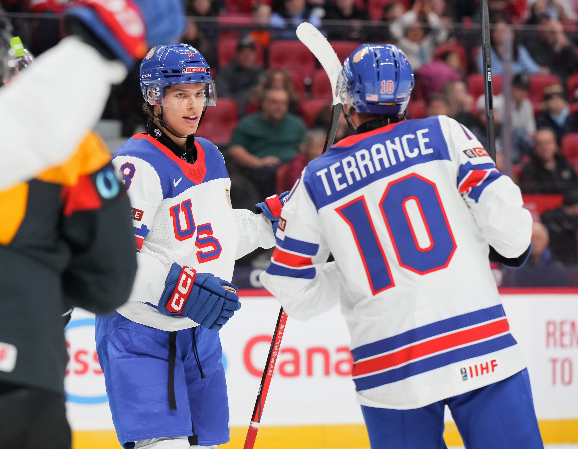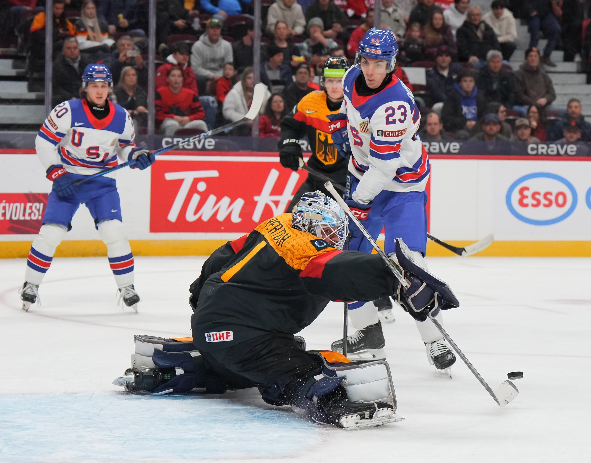 En troisième période, Brodie Ziemer a marqué deux fois, puis Carey Terrance et Eiserman ont chacun ajouté un but pour compléter la marque dans une cause gagnante. Lenny Boos et Timo Ruckdaschel ont répliqué pour l’Allemagne.