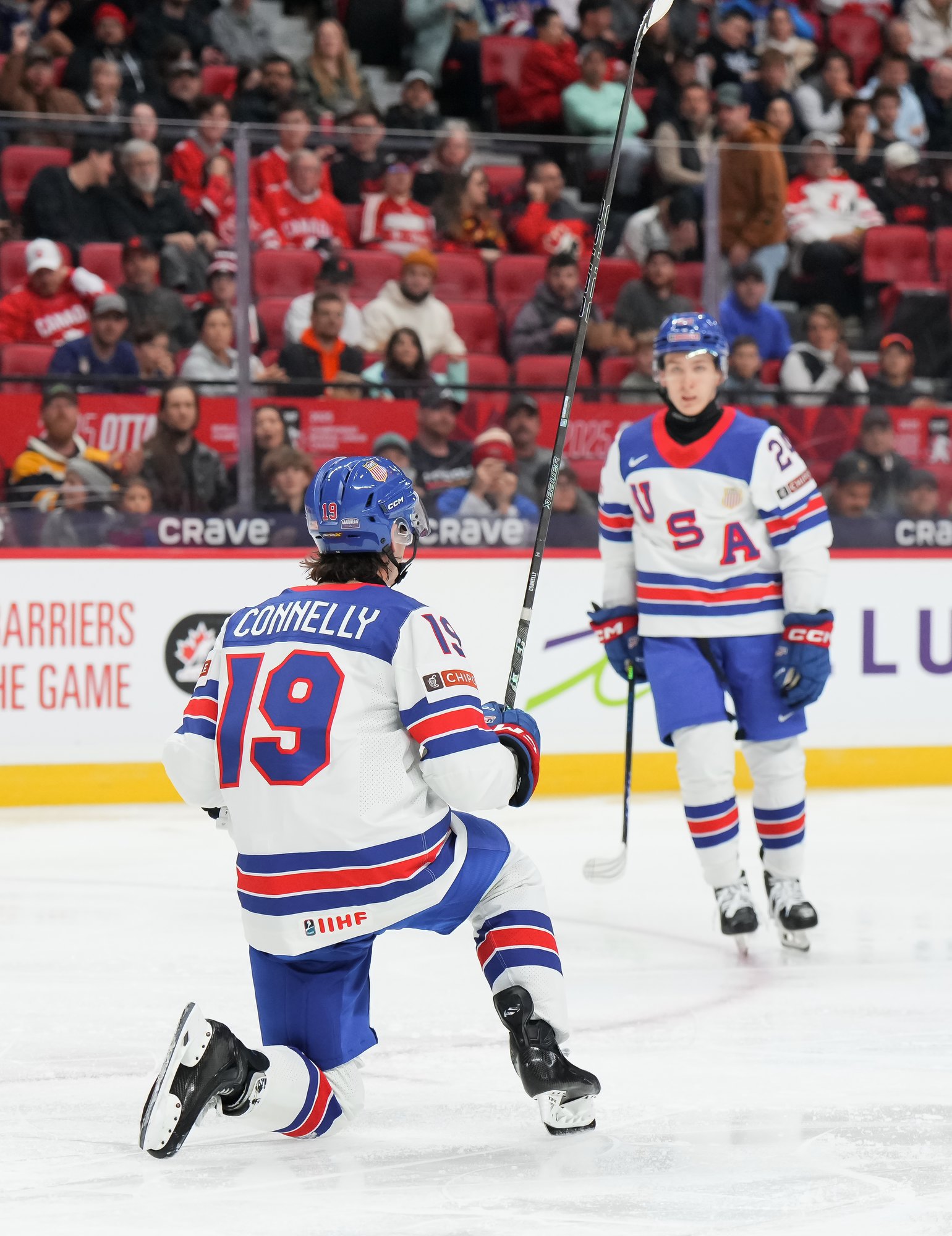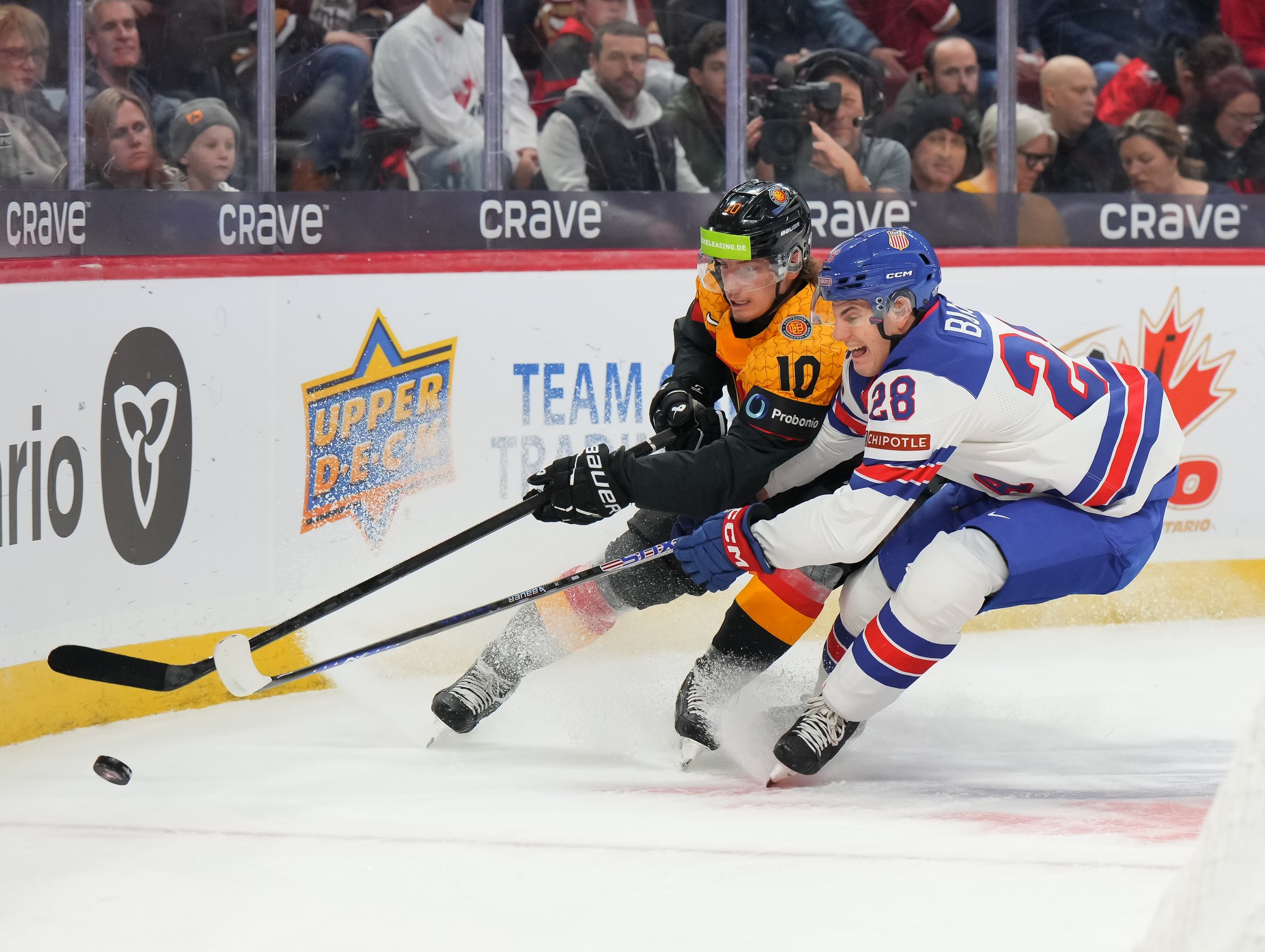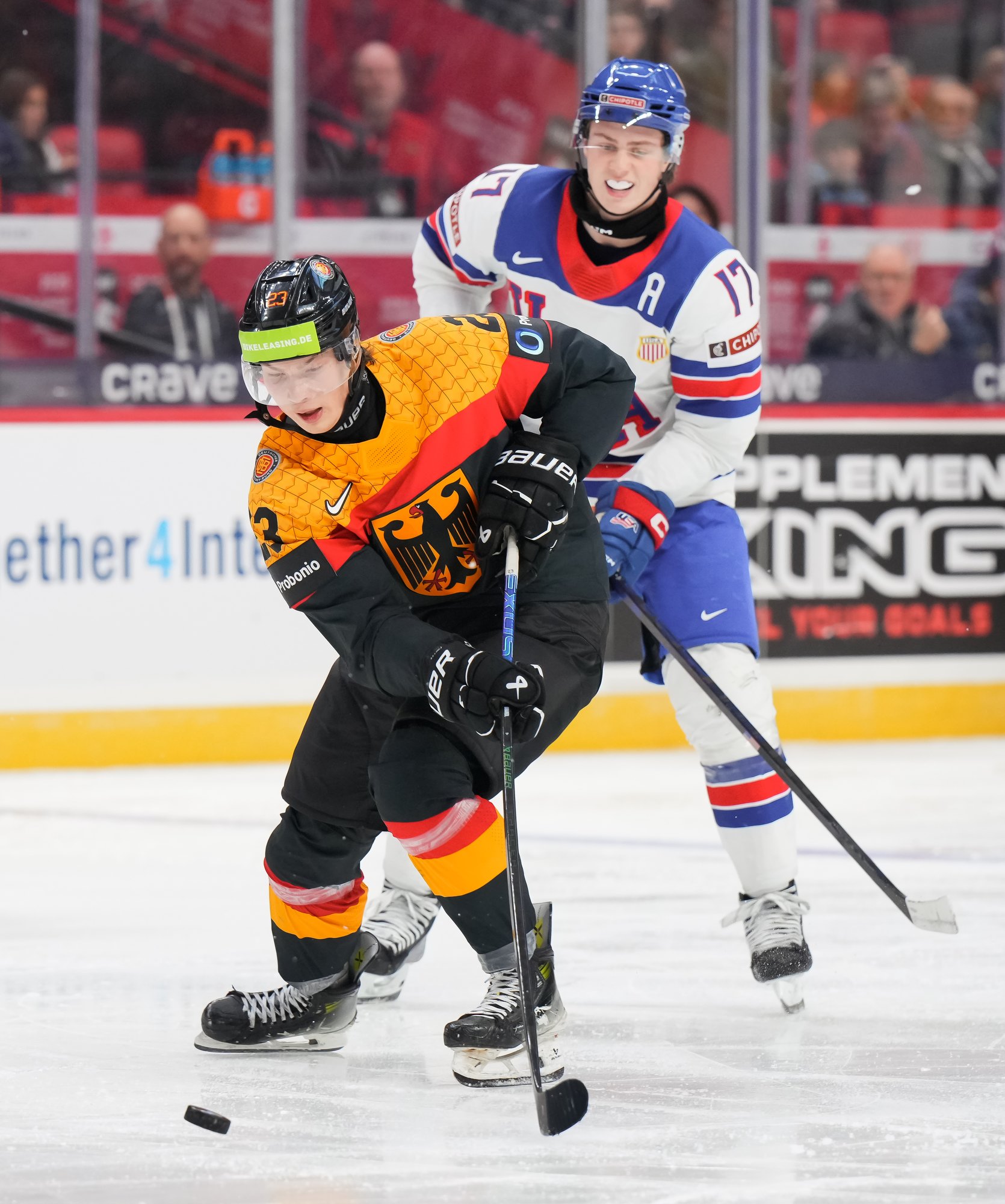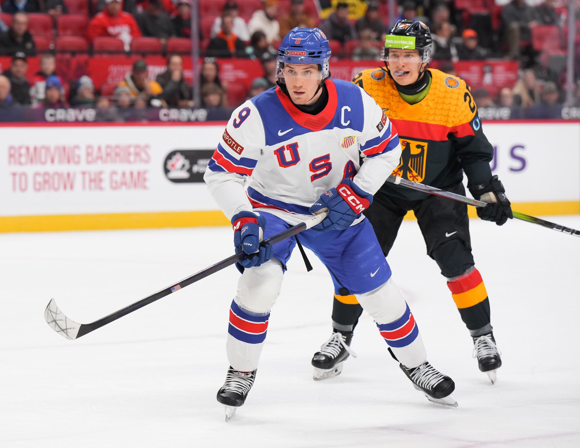 En troisième période, Brodie Ziemer a marqué deux fois, puis Carey Terrance et Eiserman ont chacun ajouté un but pour compléter la marque dans une cause gagnante. Lenny Boos et Timo Ruckdaschel ont répliqué pour l’Allemagne.