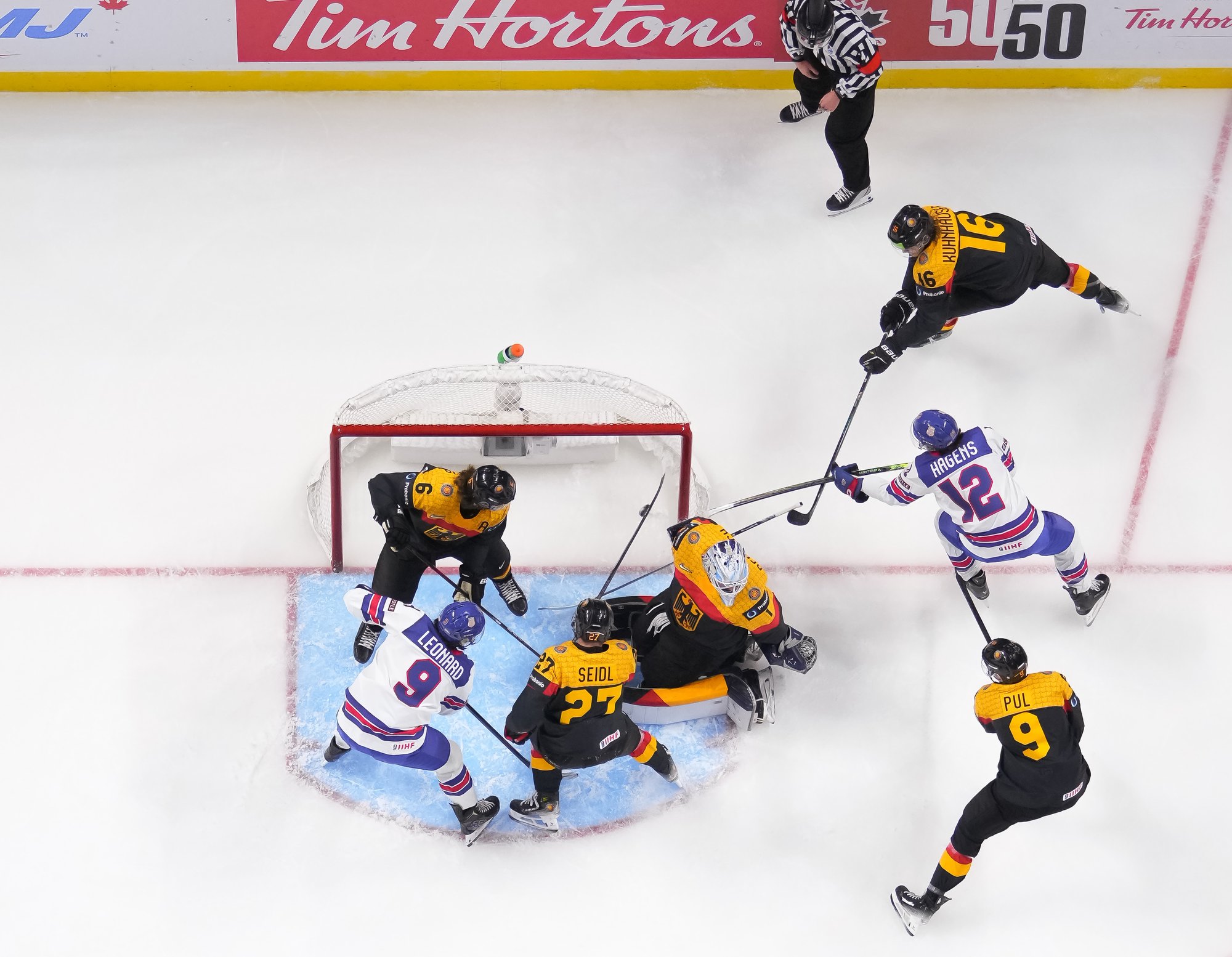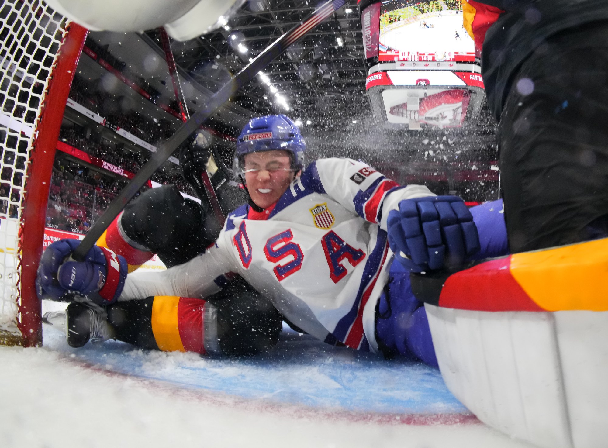 Carle a contesté le but, soupçonnant un hors-jeu en raison d’un changement de trio allemand à l’intérieur de la ligne bleue, mais la décision sur la patinoire est restée la même : c’était 3-2. Les Allemands ne sont toutefois pas parvenus à créer l’égalité pendant la punition pour avoir retardé le match.