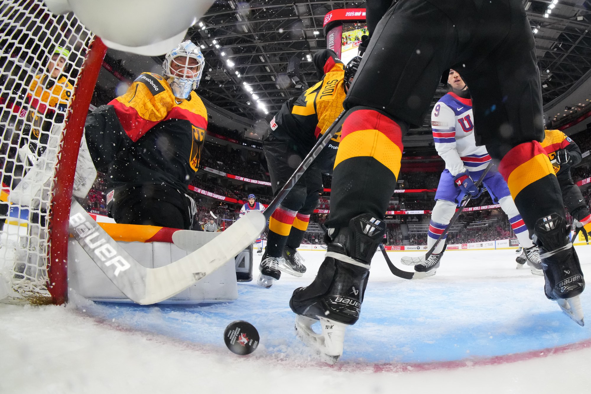 Le gardien partant des États-Unis Trey Augustine, qui participe à son troisième tournoi consécutif du Mondial junior a eu une charge moins lourde que son vis-à-vis allemand Nico Pertuch alors que les Américains ont dominé la rencontre avec 56 tirs contre 22.