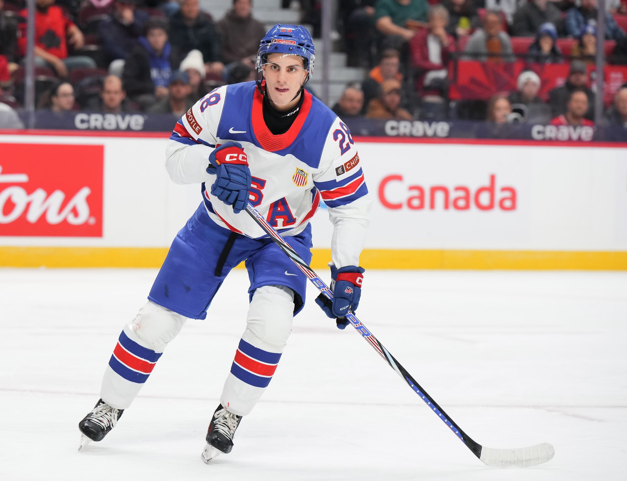 Les États-Unis, champions du monde en titre ont vaincu l’Allemagne 10-4 jeudi, pour lancer leur parcours au Championnat mondial junior de l’IIHF 2025 à Ottawa. Offrant une prestation à la hauteur des attentes, le premier trio américain a été étourdissant alors que James Hagens et Gabe Perreault ont pavé la voie avec une prestation de deux buts et deux passes chacun. Le défenseur Cole Hutson a amassé cinq mentions d’aide dans la victoire.