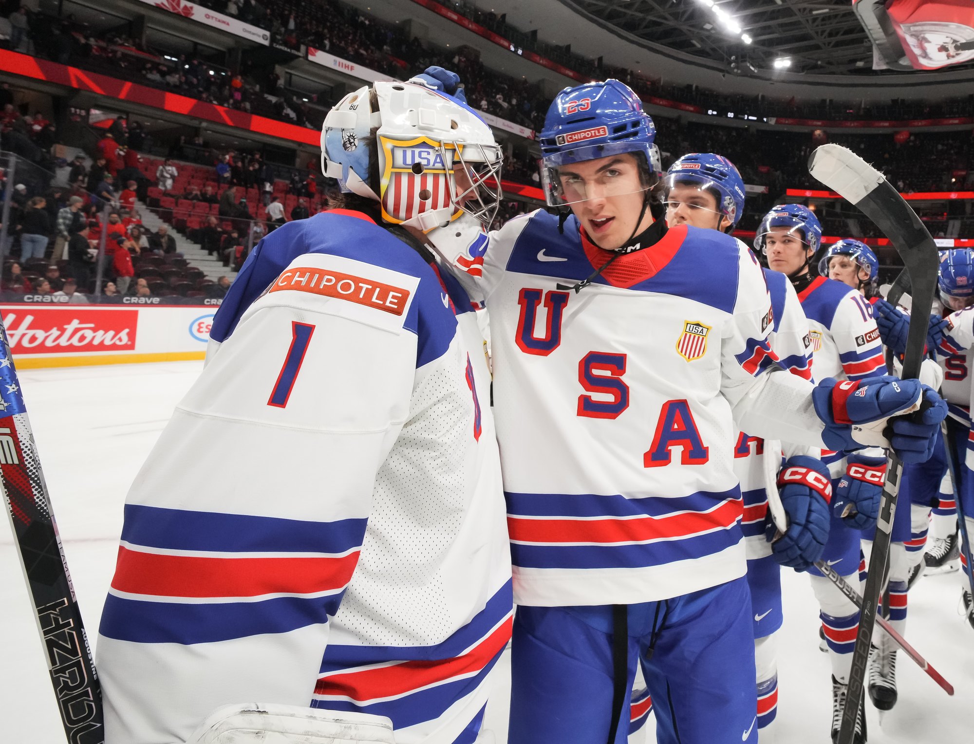 Dans le premier match du tournoi disputé au Centre Canadian Tire, la troupe de l’entraîneur David Carle a décroché les trois points au classement qu’elle recherchait en quête d’une défense de l’or mondial junior pour la première fois de l’histoire. Malgré la victoire, l’équipe américaine voudra certainement corriger quelques impairs défensifs pour la suite de la compétition.