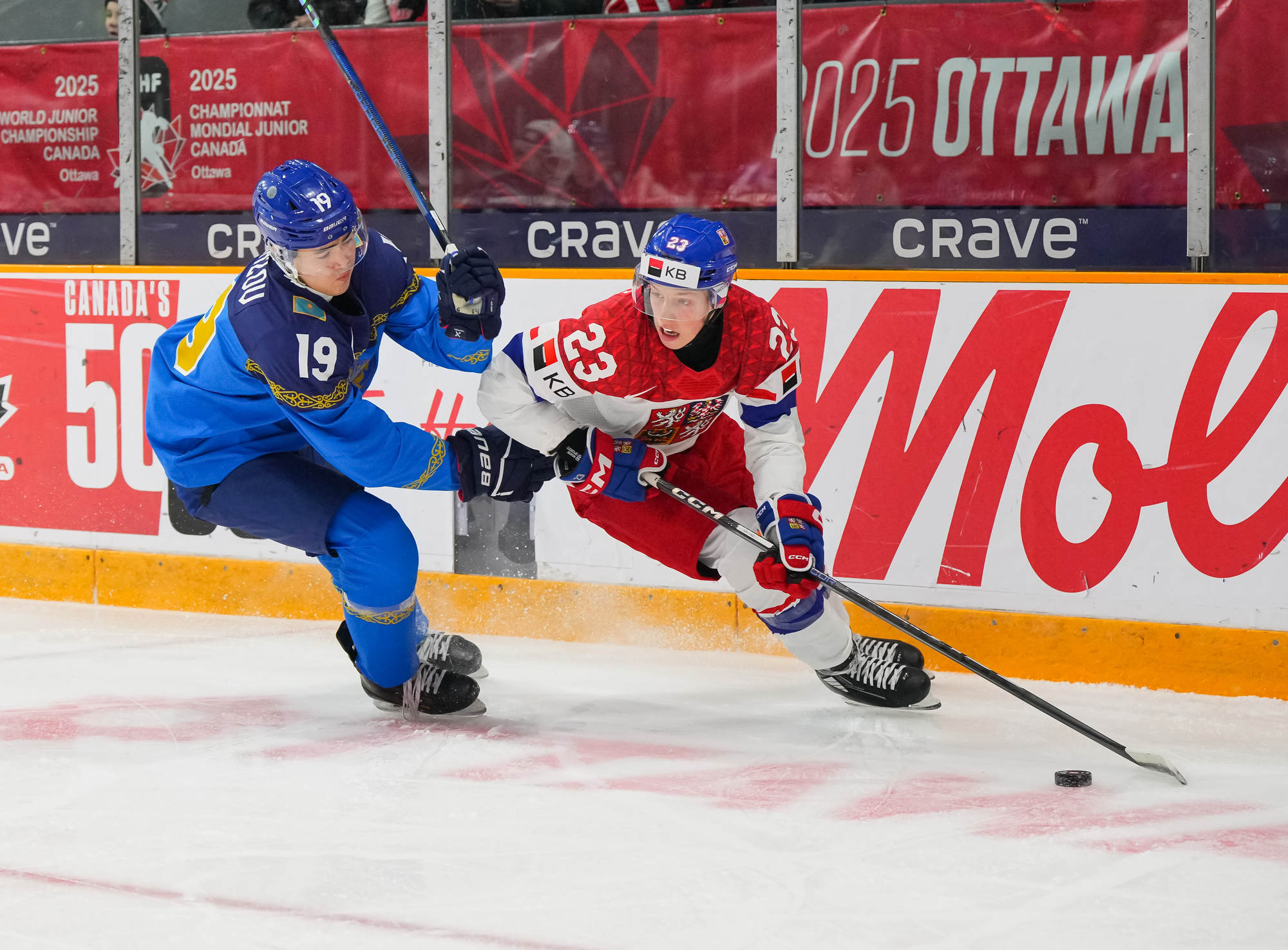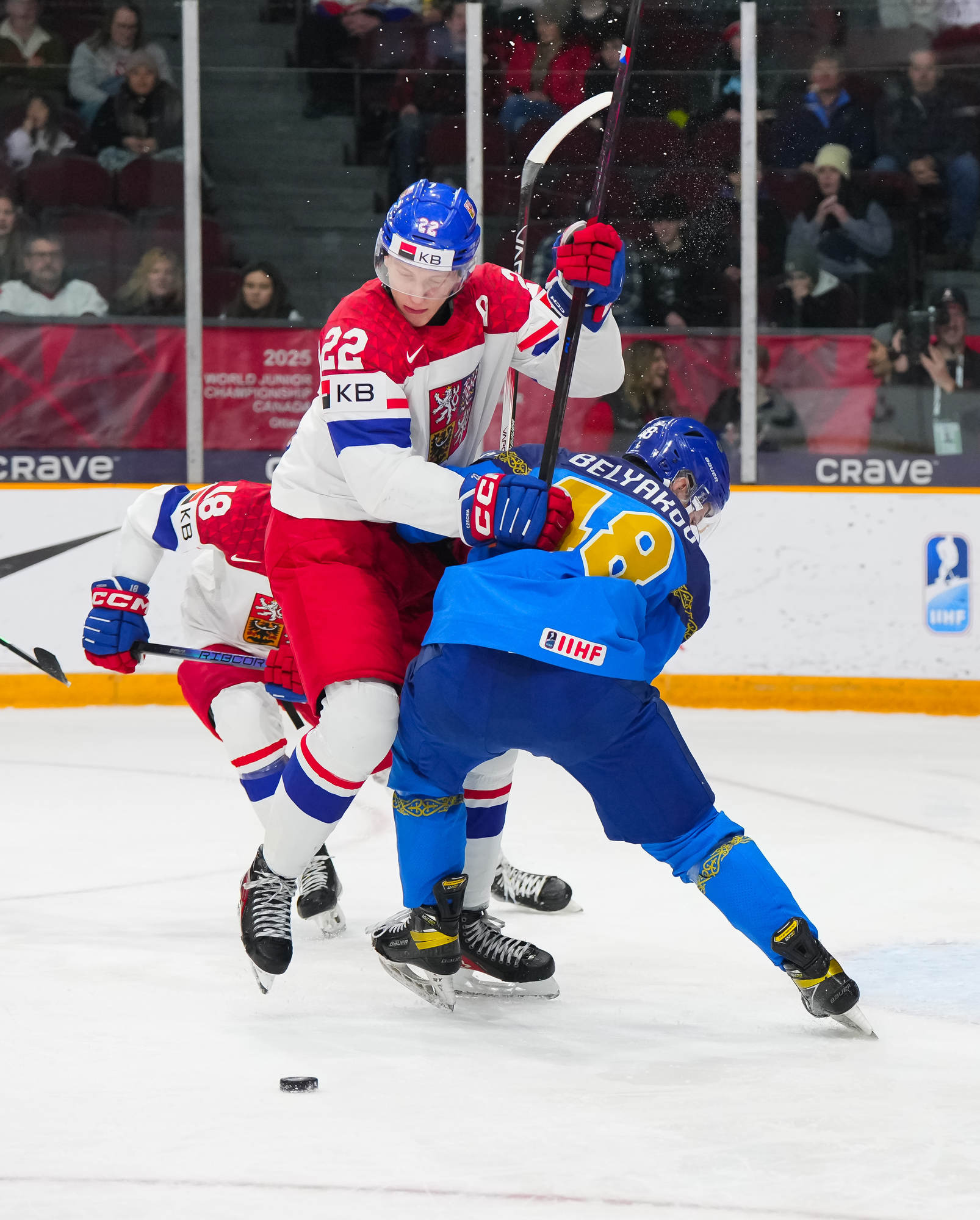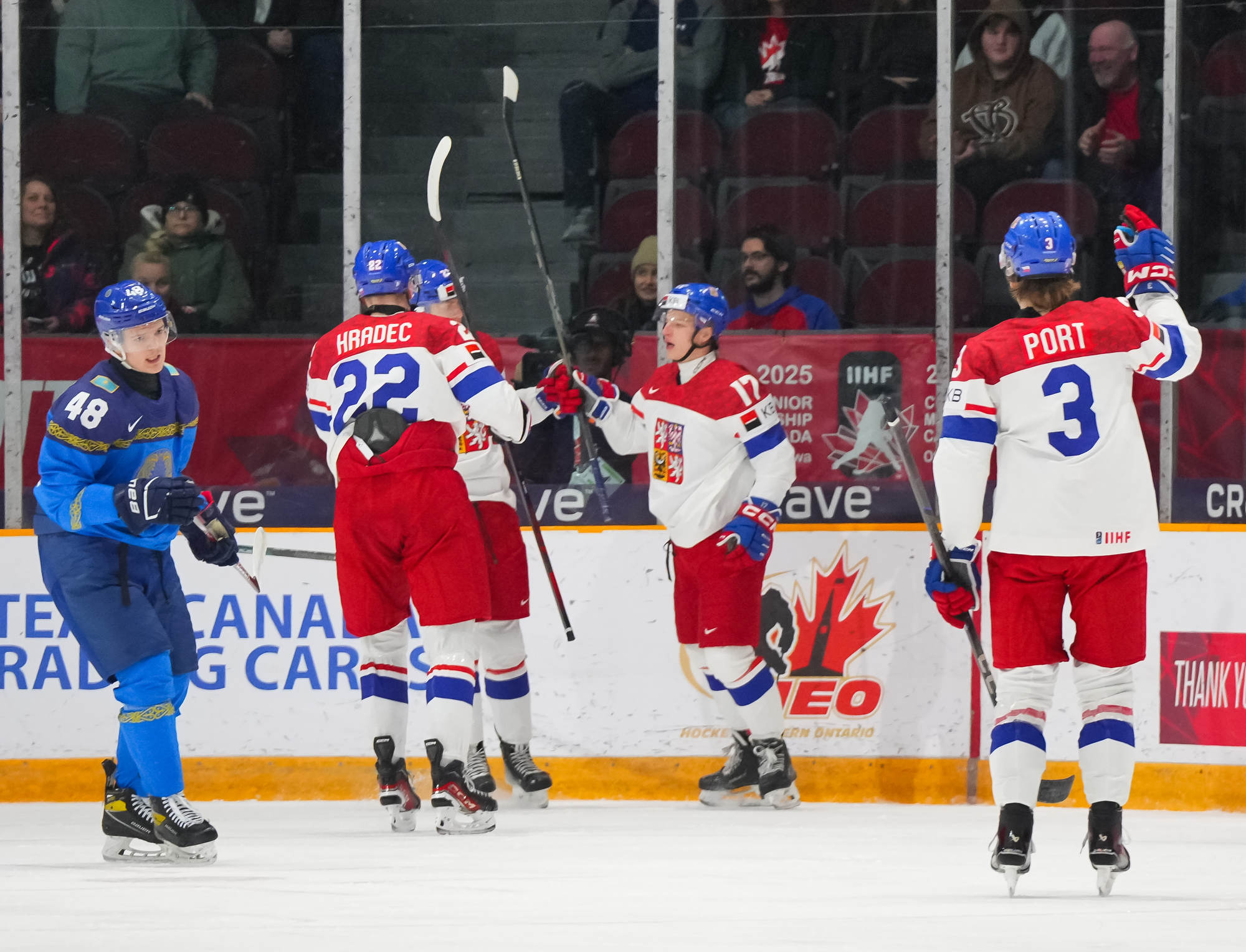 La Tchéquie est demeurée au plus fort de la lutte pour le premier rang du Groupe B samedi, en battant le Kazakhstan 14 à 2. Comme pour la Suède, invaincue en deux matchs, la Tchéquie affiche six points au classement du Championnat mondial junior de l’IIHF 2025.