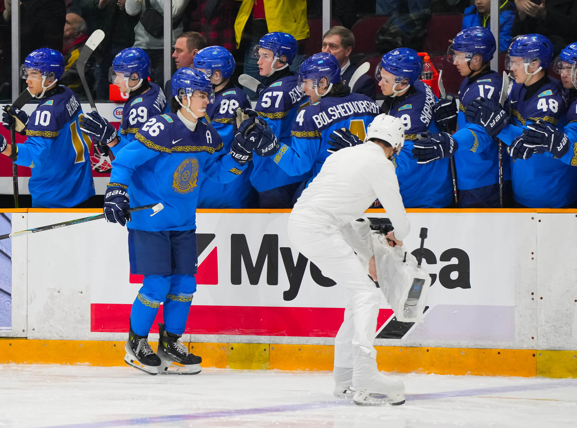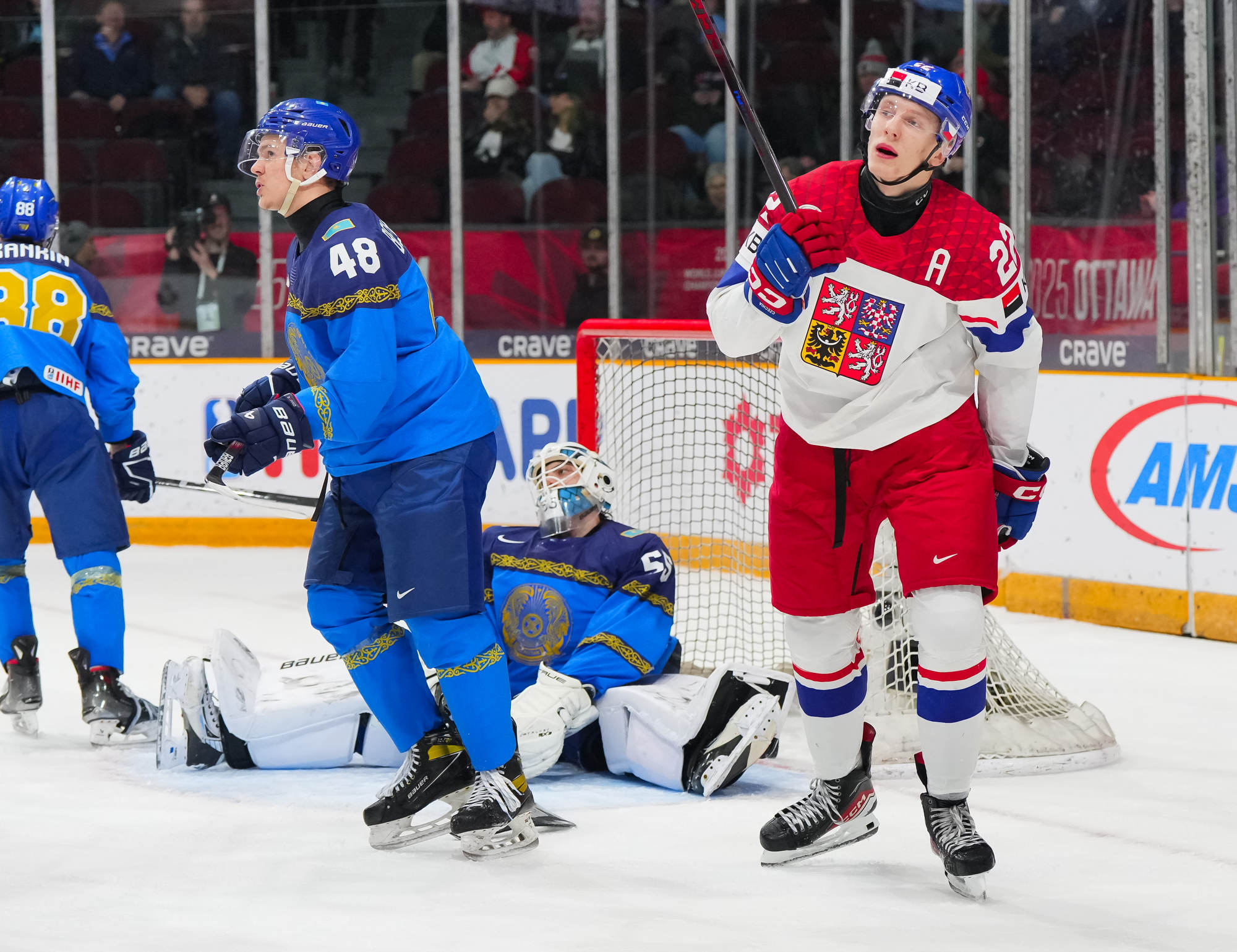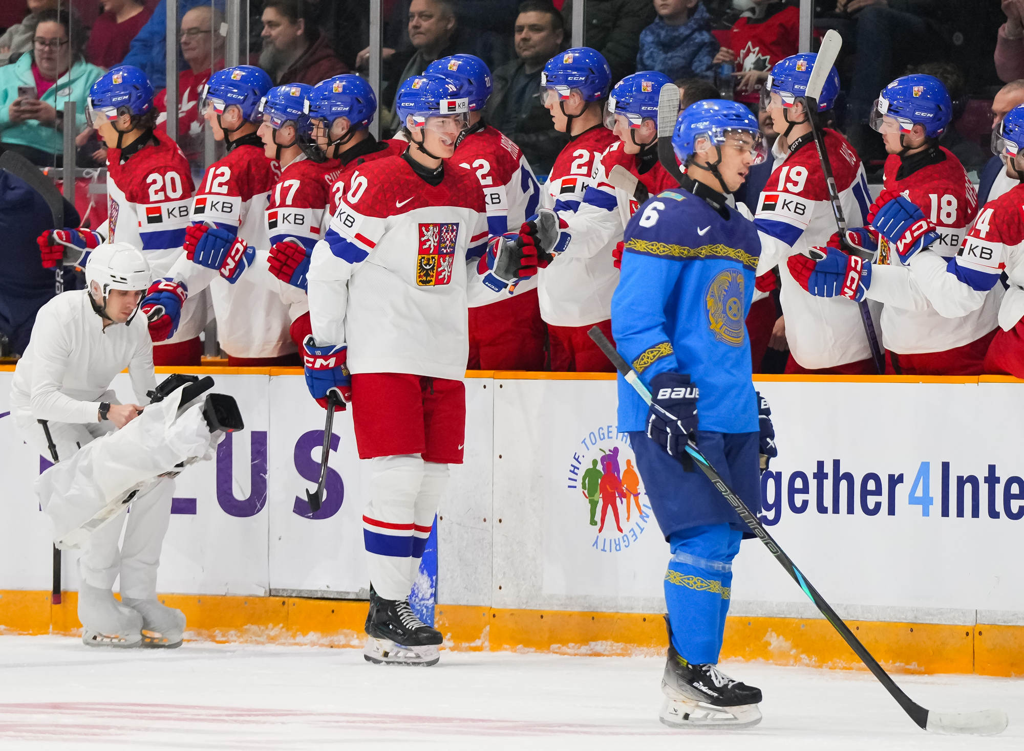 En troisième période, le capitaine adjoint kazakh Alexander Kim a marqué à 1:29 pour offrir une note positive à sa formation. Les Tchèques ont ralenti la cadence et ont cherché à se préserver, puis Stancl et Hradec ont complété la marque avec deux minutes à jouer.