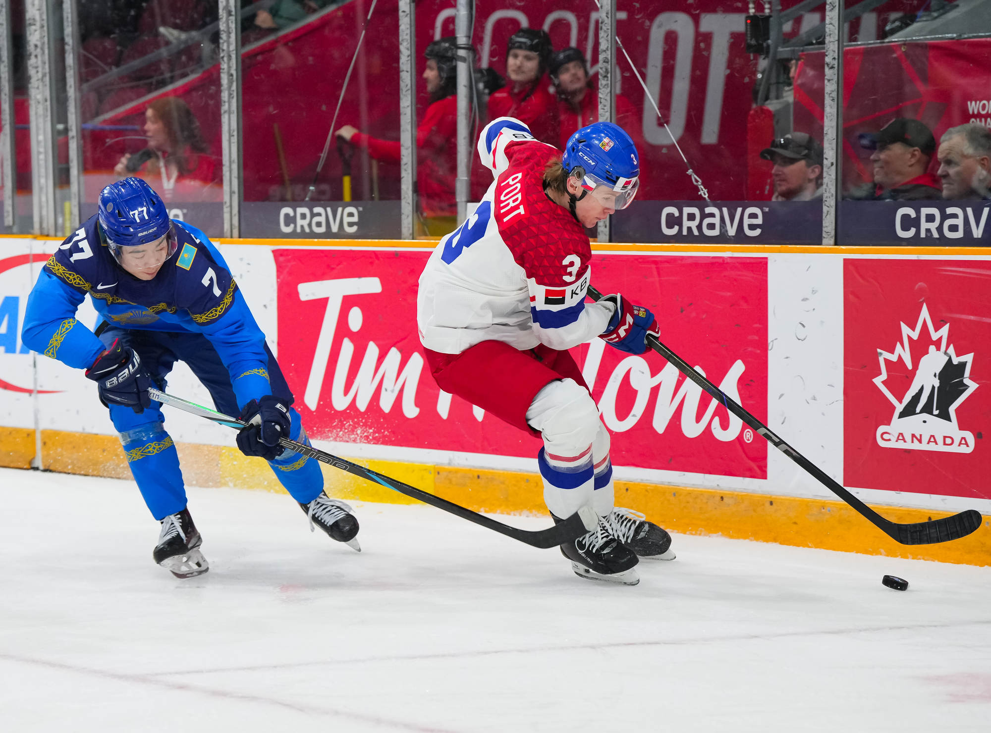 À 2:54 de la deuxième période, Adam Jecho a marqué un des buts les plus faciles découlant d’avoir laissé son bâton sur la patinoire, alors qu’il a fait dévier la passe parfaite d’un côté à l’autre de la patinoire de Port alors qu’il se trouvait dans l’enclave. C’était le premier de quatre buts des Tchèques en moins de cinq minutes en deuxième période, alors que Mastalirsky a complété son tour du chapeau, en plus d’un but de Stancl. Les Kazakhs étaient alors devenus des figurants de cette rencontre.