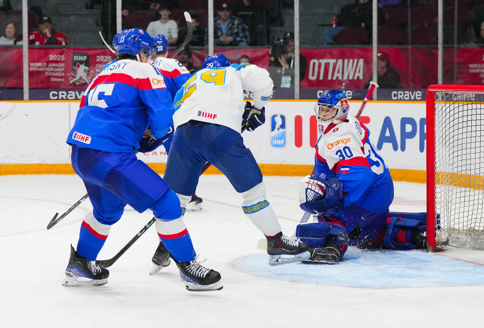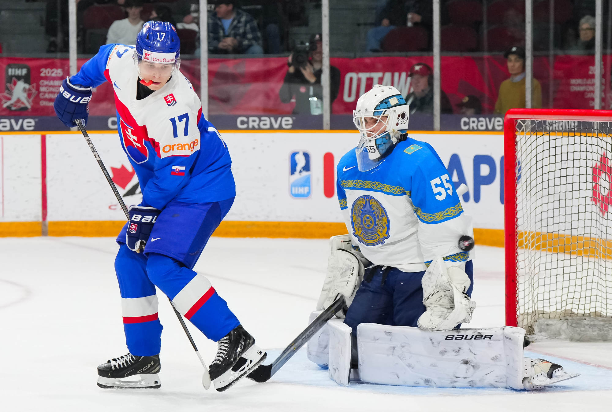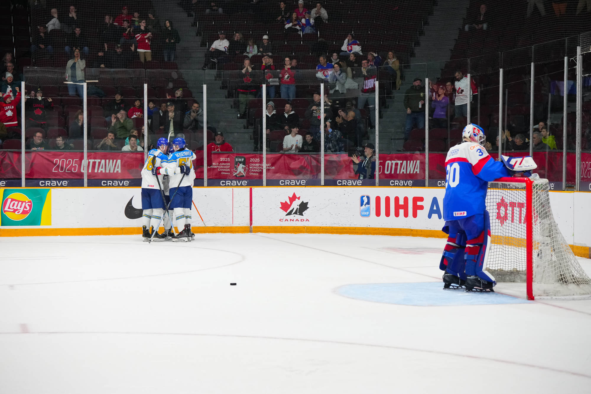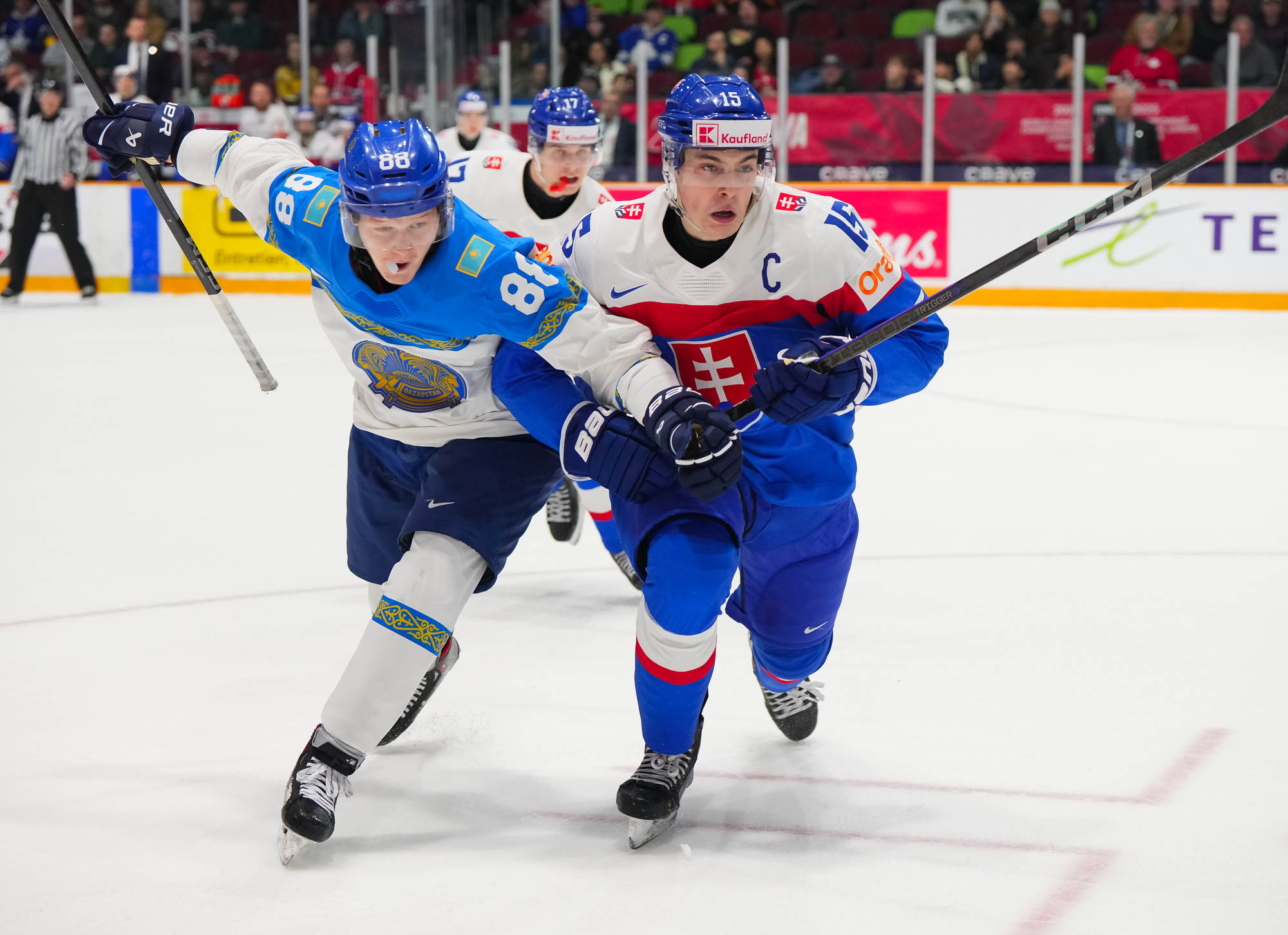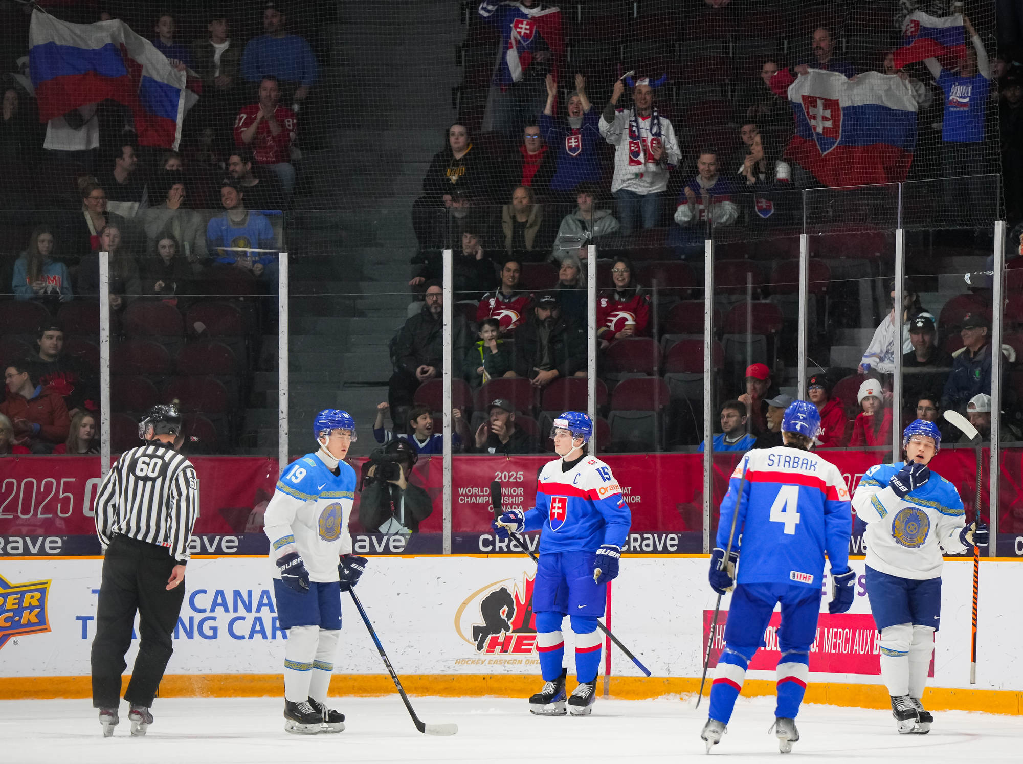 Peu de temps après, le Kazakhstan est passé près d’égaliser le match quand Beibarys Orazov a vu son tir frapper la barre transversale sur un jeu de puissance. Cette occasion ratée a été doublement frustrante puisque la Slovaquie a plus tard rétabli son avance de trois buts grâce au duo Dvorsky-Pekarcik. Cette fois encore le capitaine a remis le disque vers Pekarcik qui a conclu le jeu sur un tir haut à 12:36.