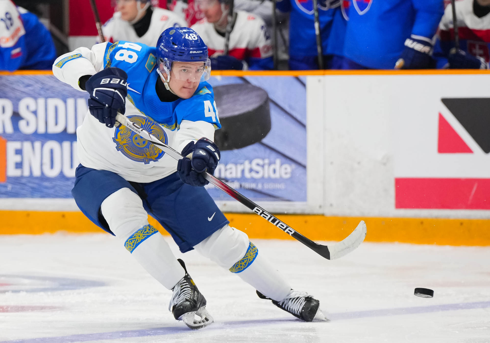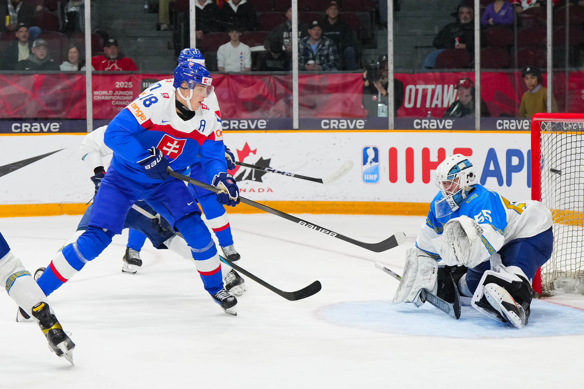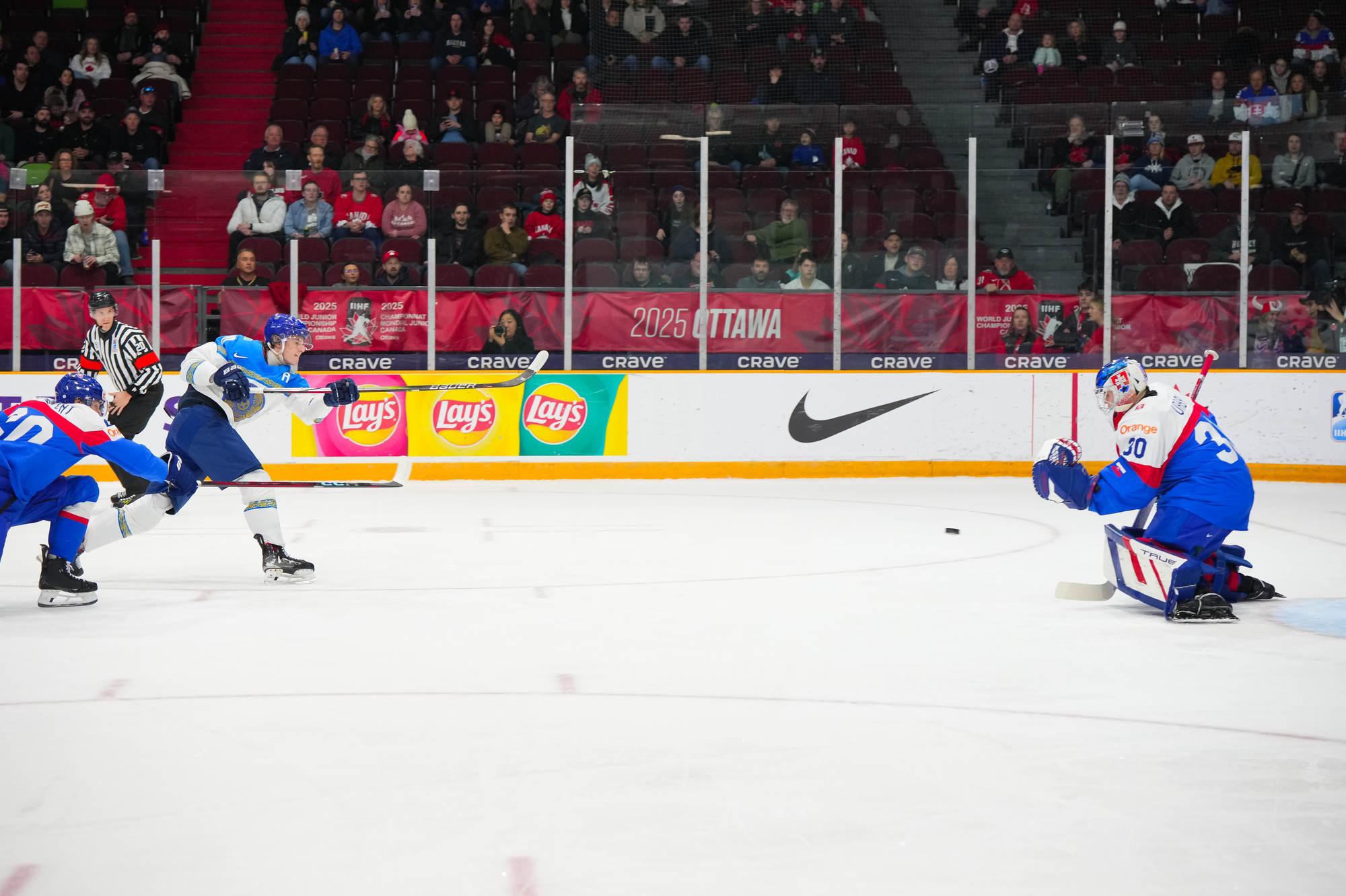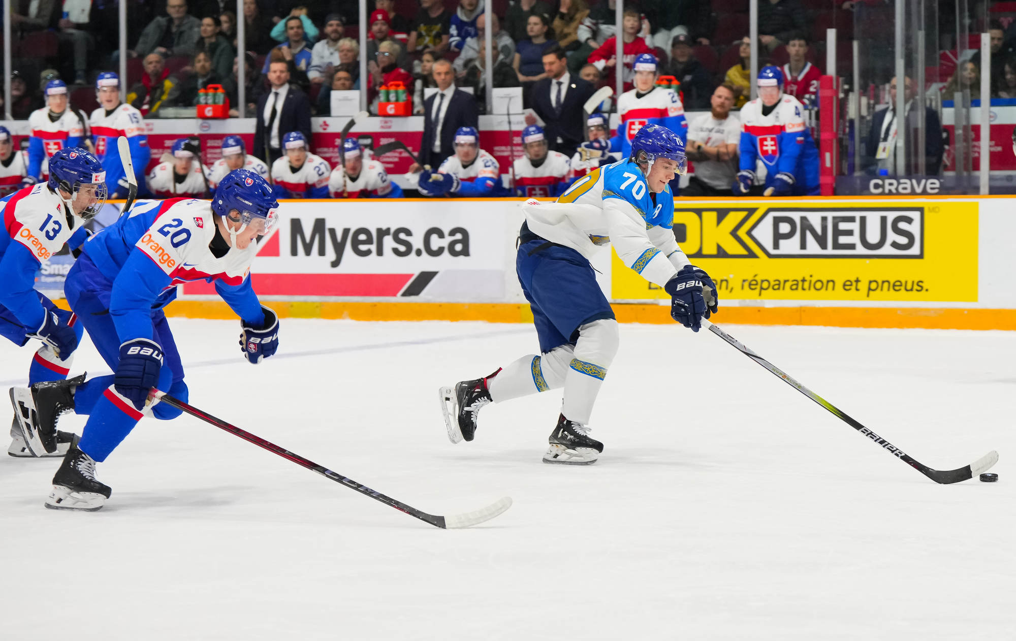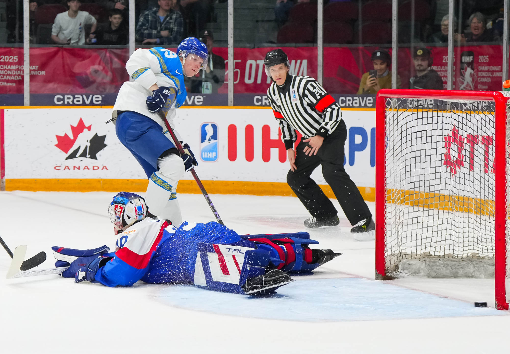 Peu de temps après, le Kazakhstan est passé près d’égaliser le match quand Beibarys Orazov a vu son tir frapper la barre transversale sur un jeu de puissance. Cette occasion ratée a été doublement frustrante puisque la Slovaquie a plus tard rétabli son avance de trois buts grâce au duo Dvorsky-Pekarcik. Cette fois encore le capitaine a remis le disque vers Pekarcik qui a conclu le jeu sur un tir haut à 12:36.