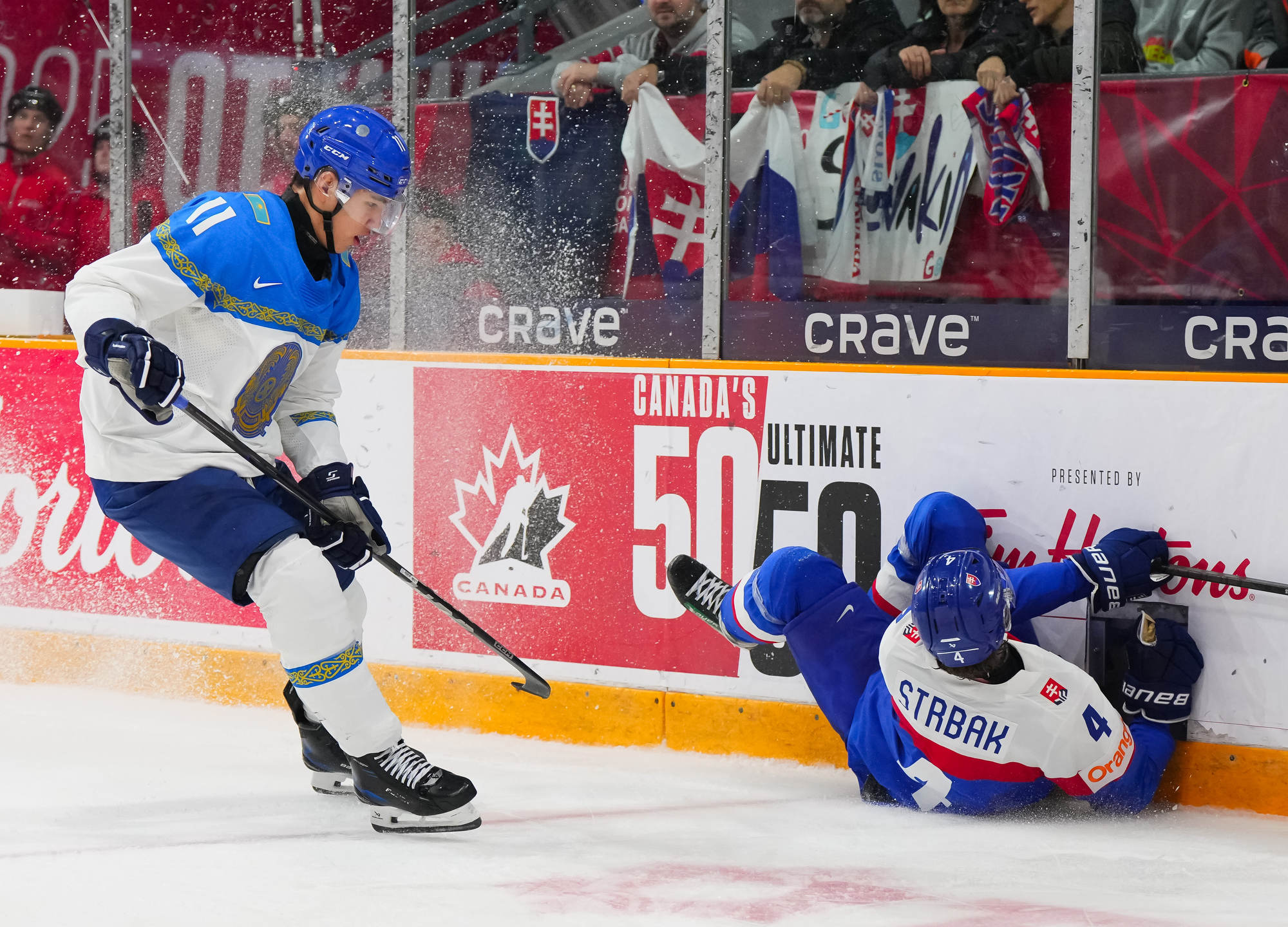 Maxim Strbak a marqué à 2:55 de la prolongation pour procurer une victoire de 5-4 à la Slovaquie lundi après-midi à l’Aréna de la Place TD à Ottawa. Ce résultat a certainement provoqué un soupir de soulagement chez les Slovaques qui menaient 4-2 avec cinq minutes à écouler au temps réglementaire et un avantage numérique de cinq minutes, avant que les Kazakhs marquent deux fois à court d’un homme pour pousser la rencontre en prolongation.