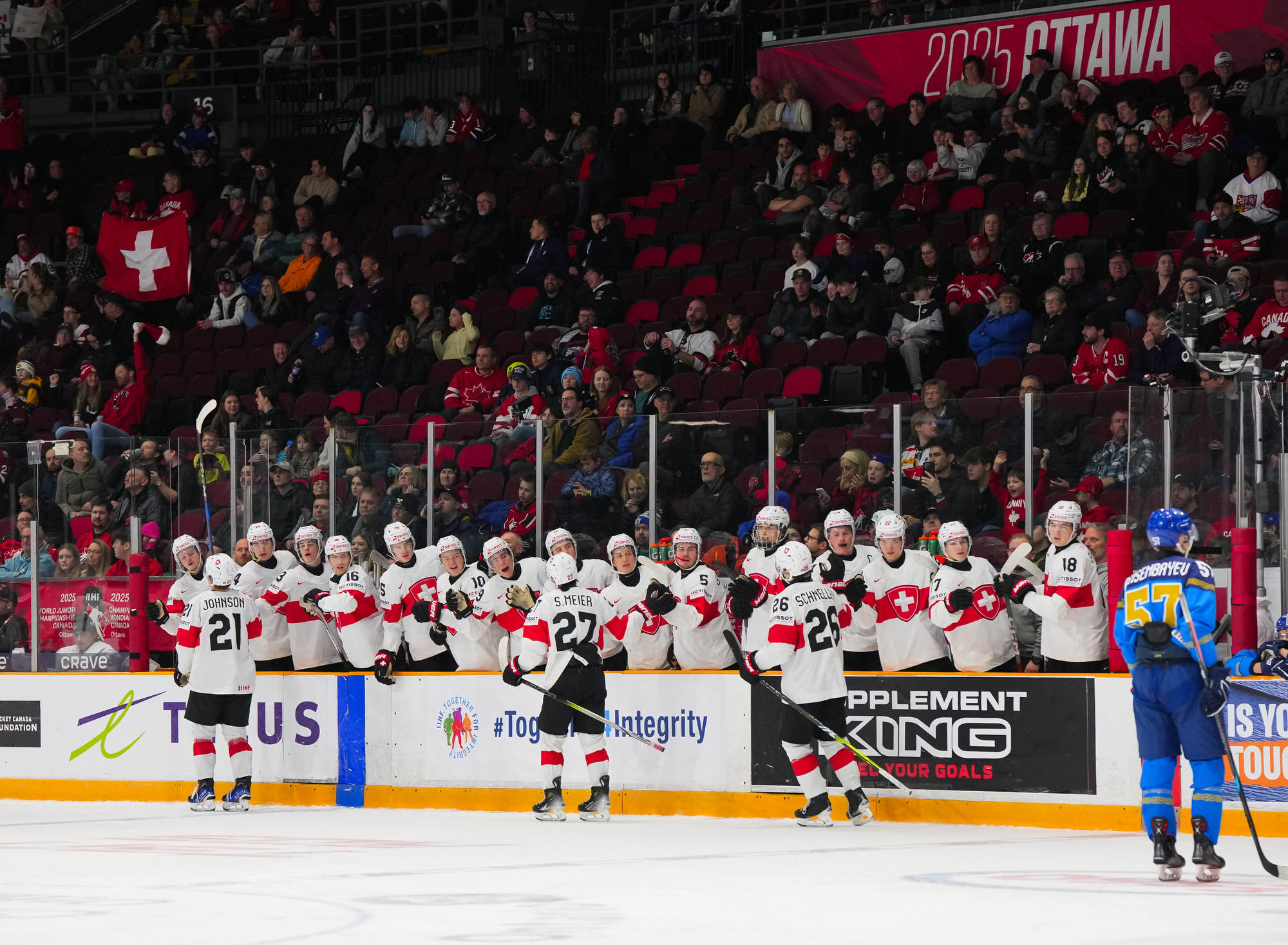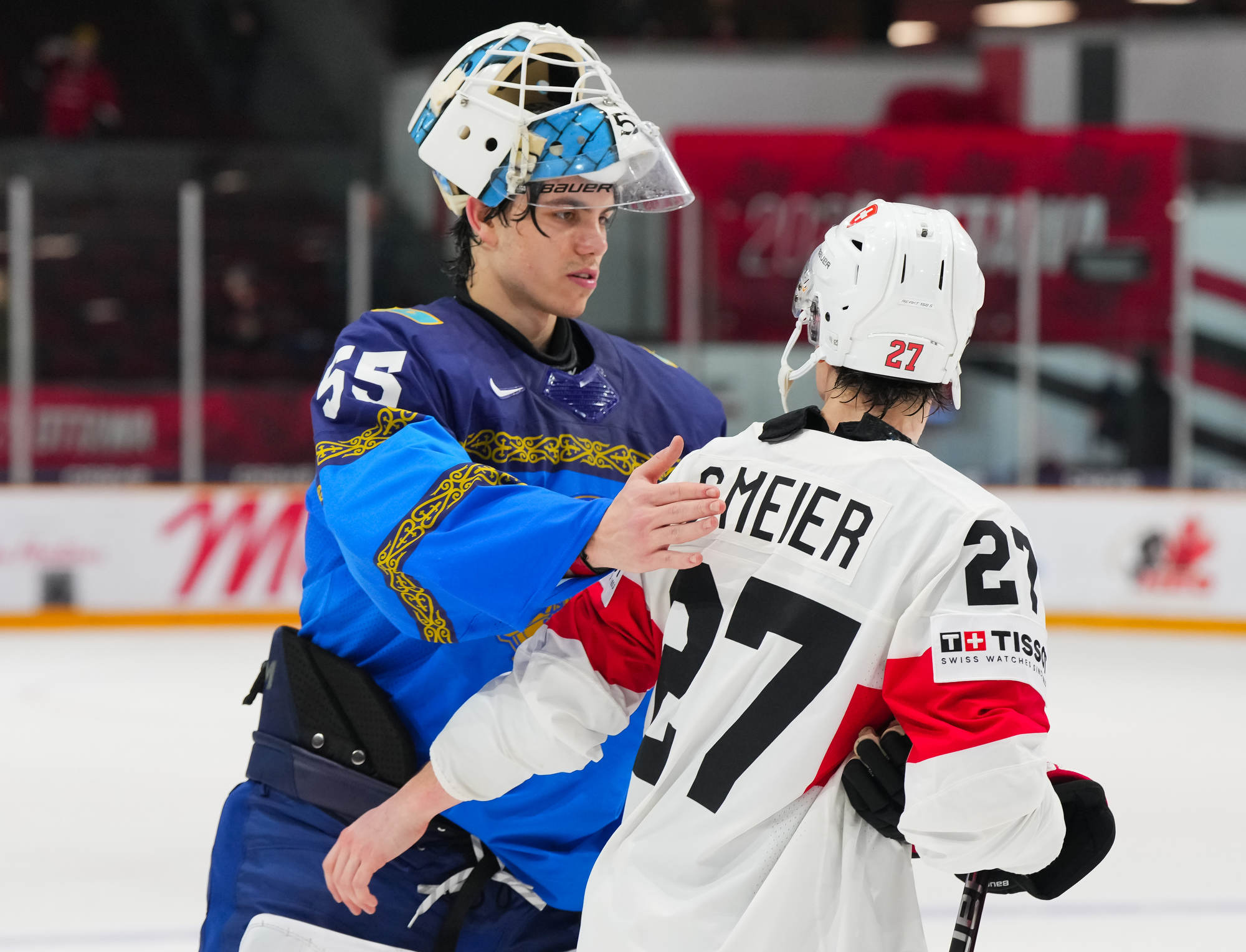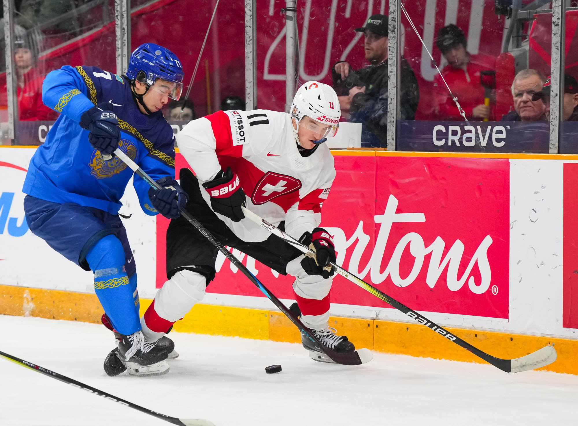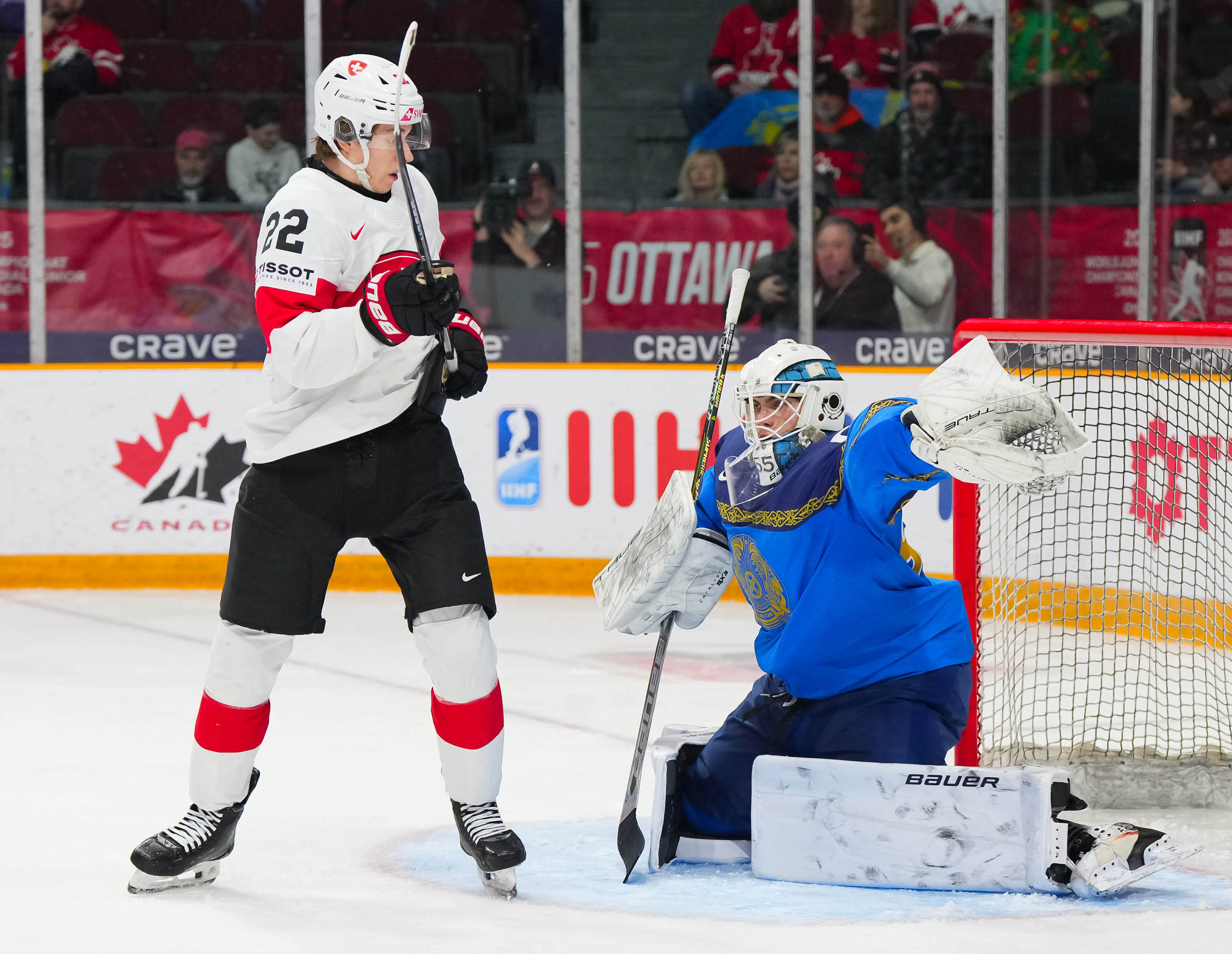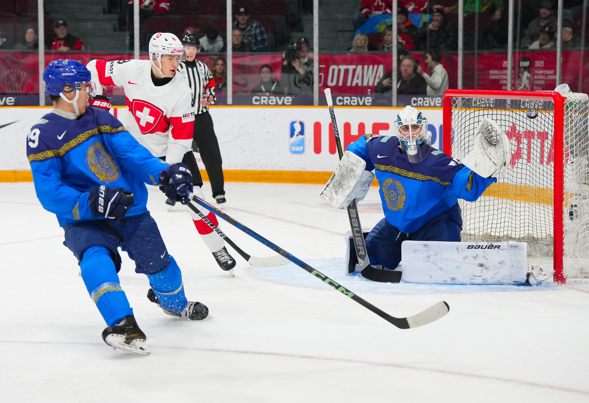 Il y avait des absences à noter au sein des deux équipes. Le Suisse Kimo Gruber, qui a marqué deux buts contre la Suède, n’a pas enfilé l’uniforme. Le Kazakh Assanali Sarkenov ne l’a pas fait non plus, lui qui a purgé une suspension d’un match pour un double échec commis dans la défaite de 5-4 en prolongation contre la Slovaquie.