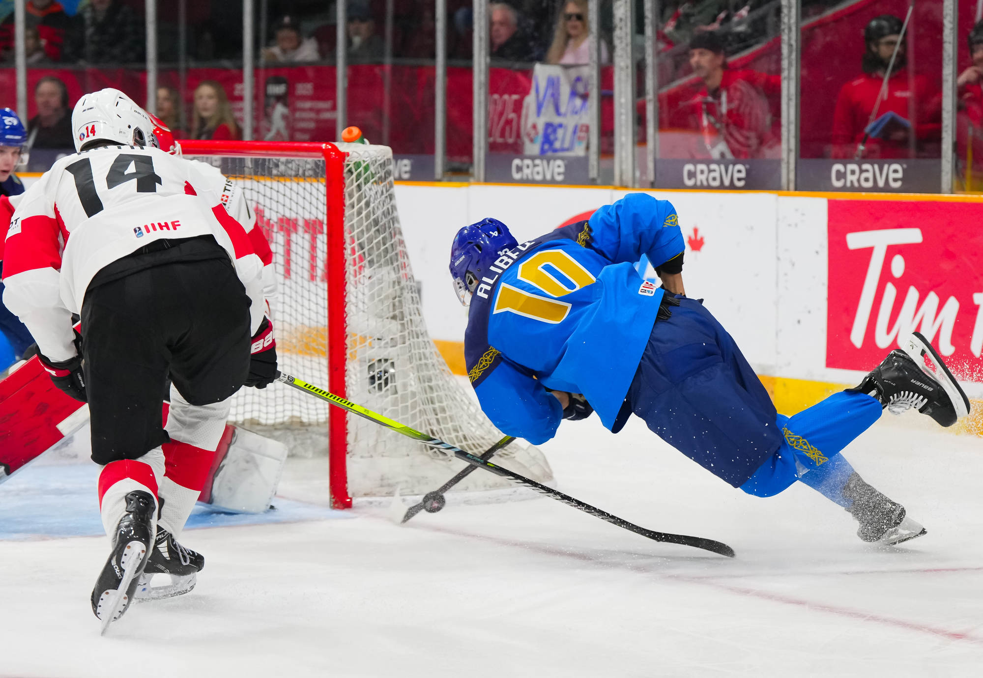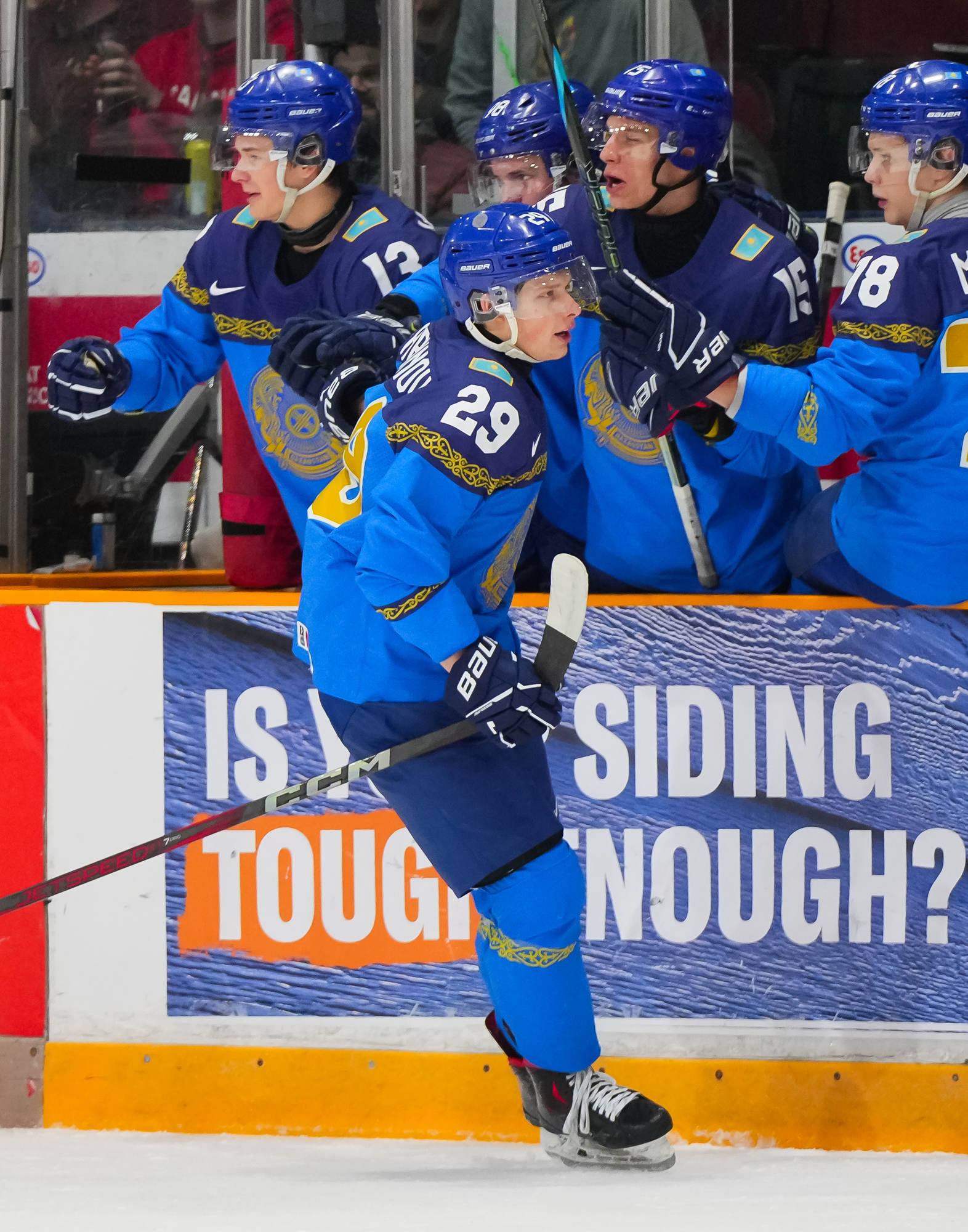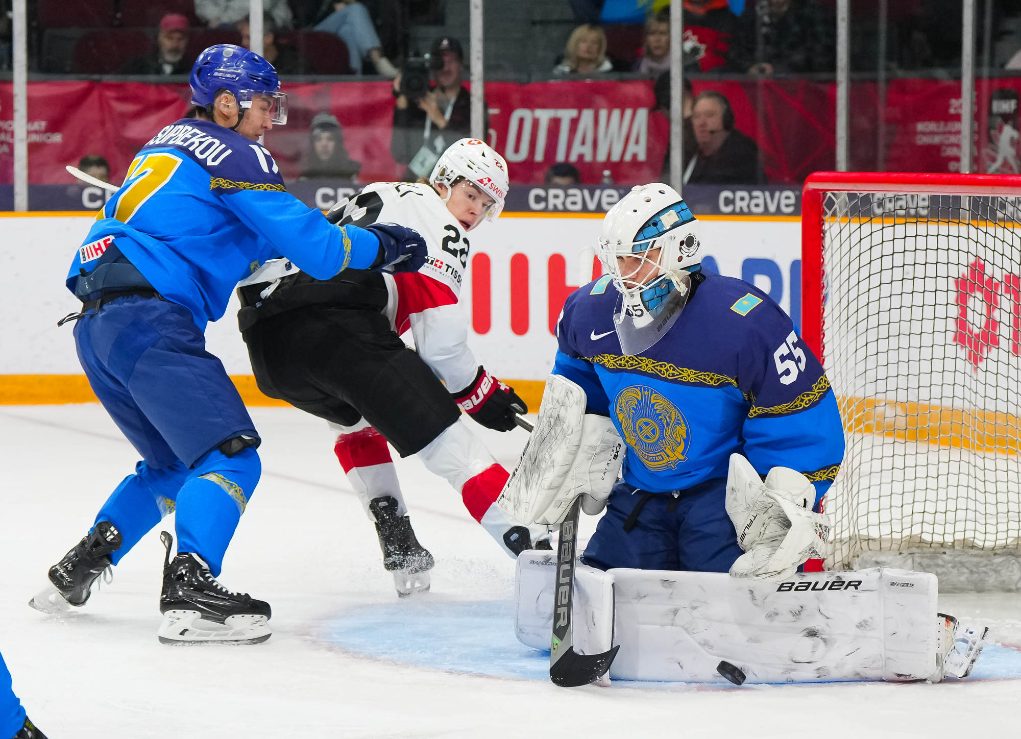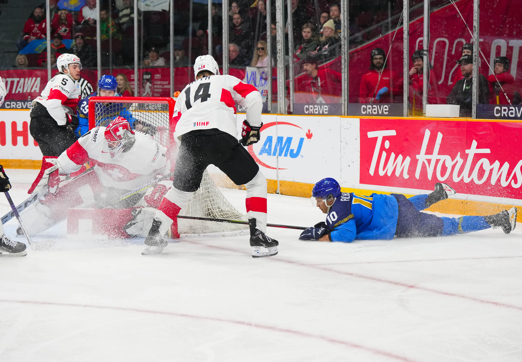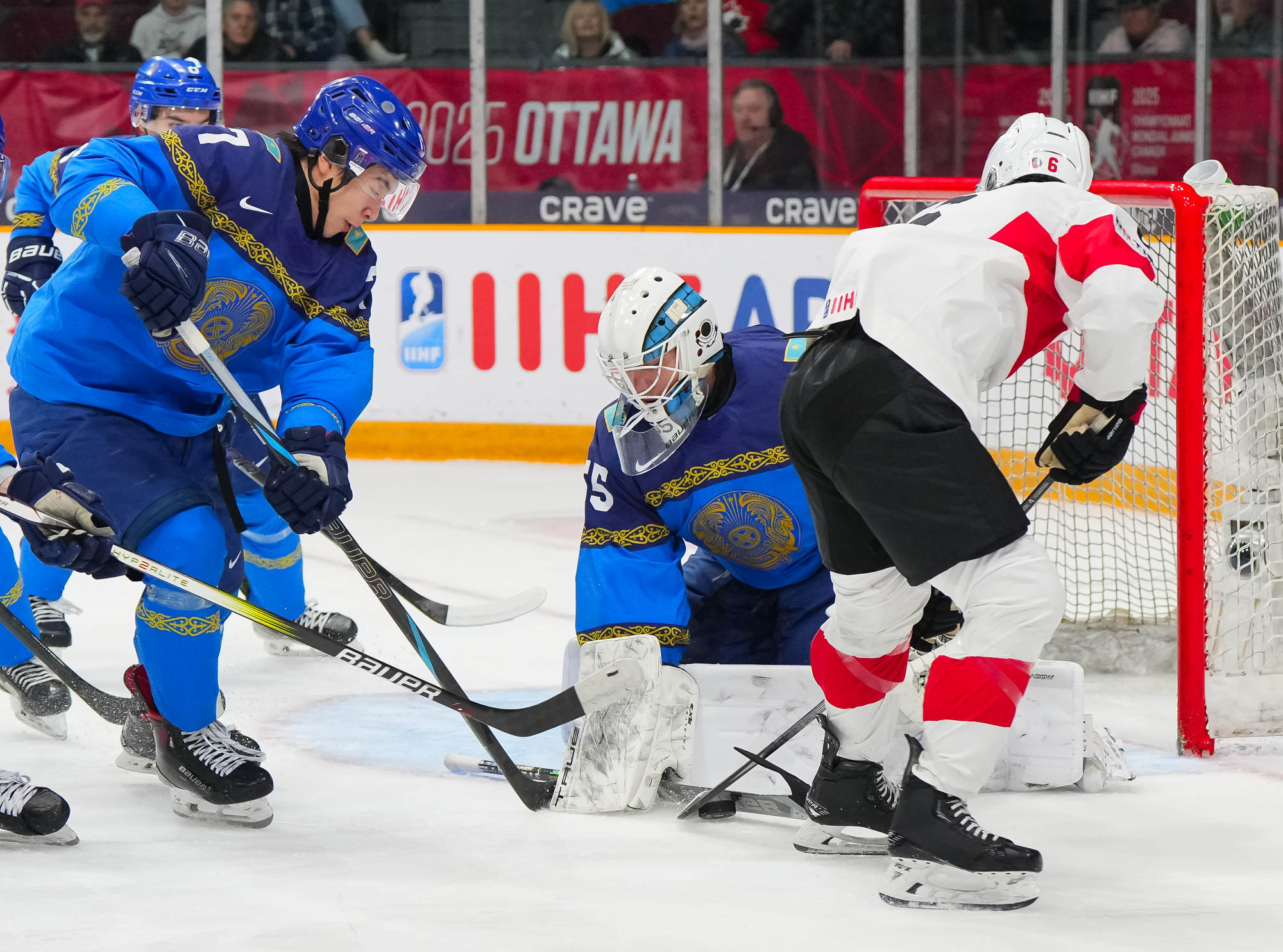 Il y avait des absences à noter au sein des deux équipes. Le Suisse Kimo Gruber, qui a marqué deux buts contre la Suède, n’a pas enfilé l’uniforme. Le Kazakh Assanali Sarkenov ne l’a pas fait non plus, lui qui a purgé une suspension d’un match pour un double échec commis dans la défaite de 5-4 en prolongation contre la Slovaquie.