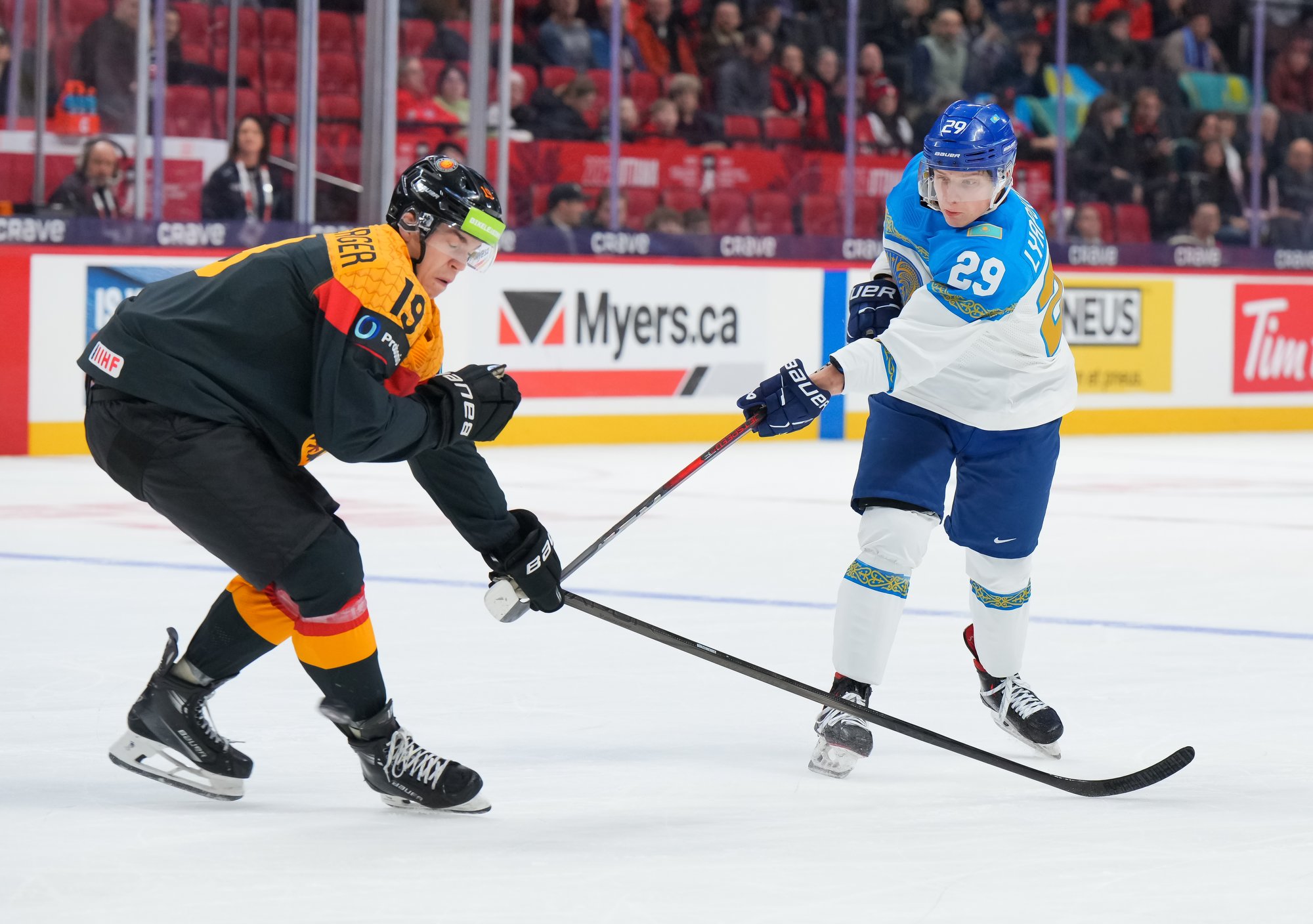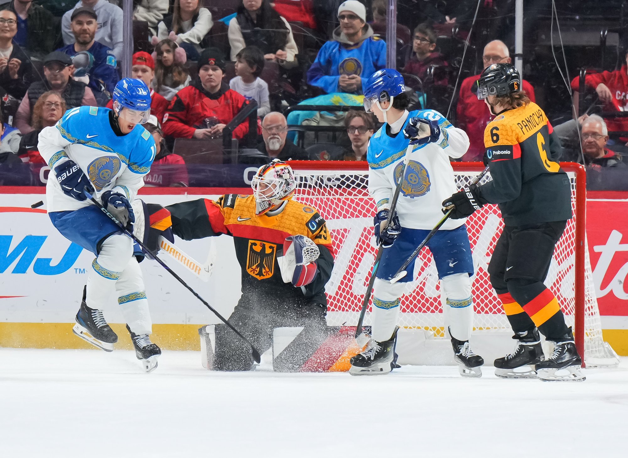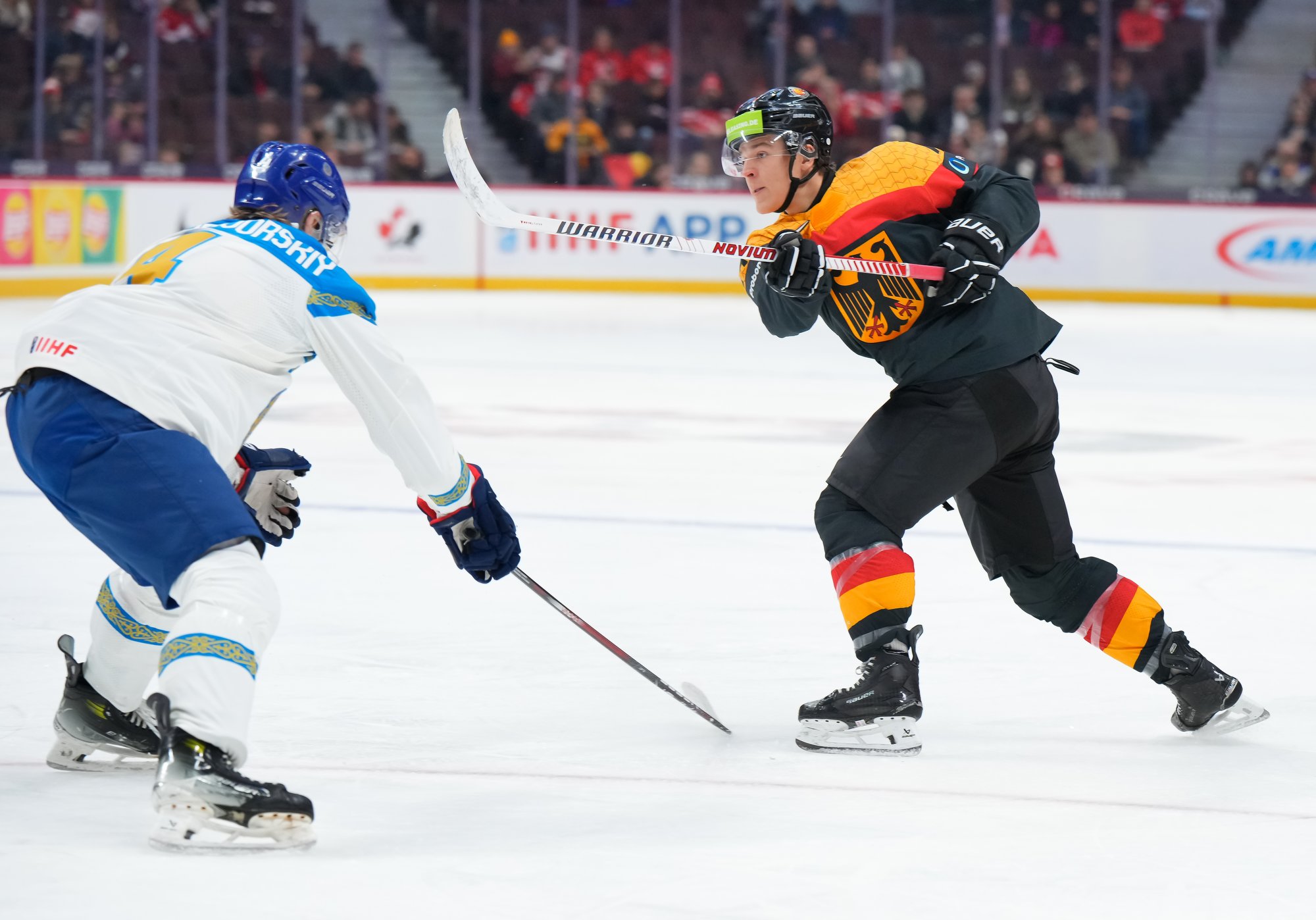 L’allure du match a rapidement changé par la suite toutefois, quand le Kazakhstan a écopé de deux punitions rapides, offrant un avantage numérique de deux hommes à l’Allemagne pendant 1:44 minute. L’équipe a marqué deux fois, d’abord après 12 secondes de jeu à cinq contre trois. Schafer était de nouveau devant le filet, faisant habilement dévier un tir de Julius Sumpf pour réduire l’écart à 3-2.