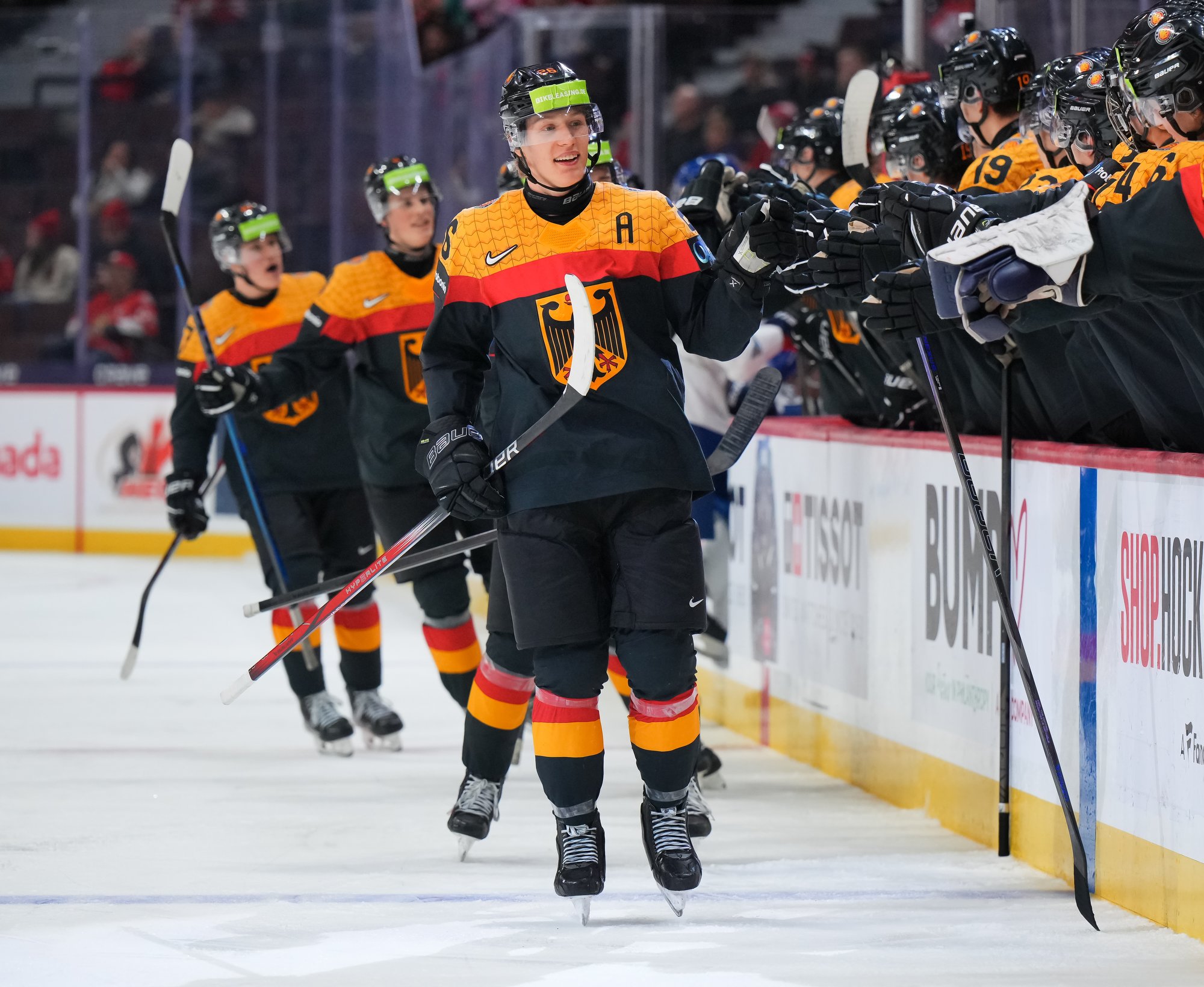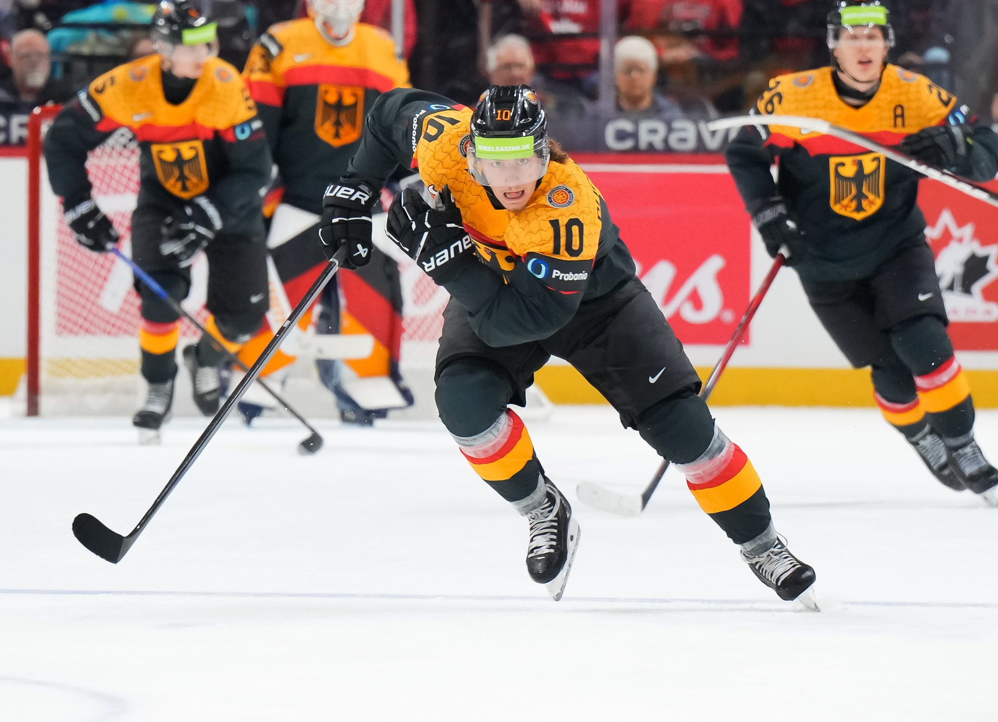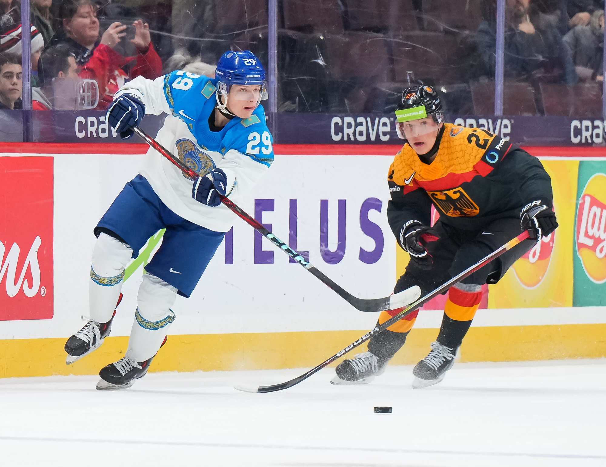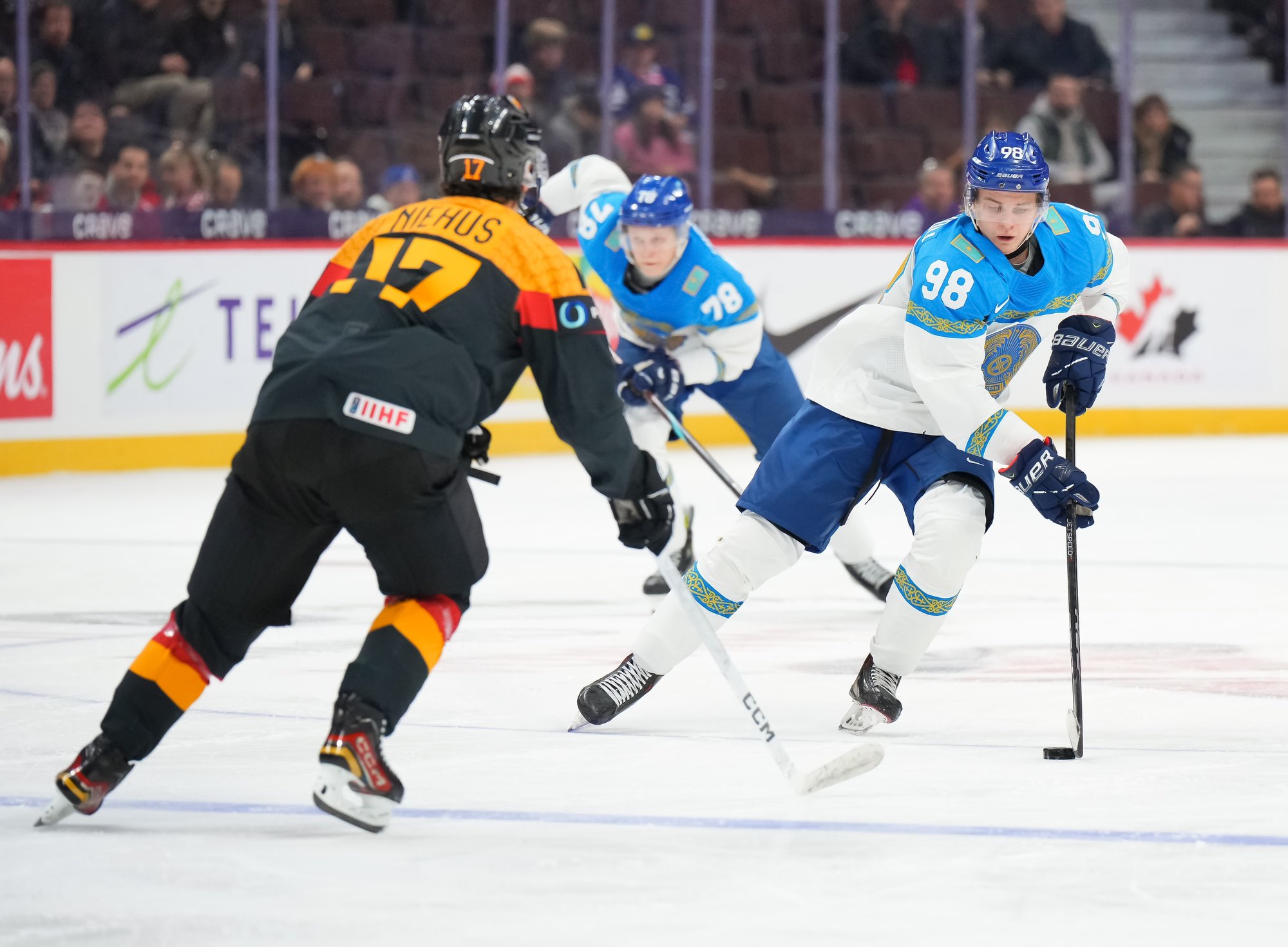 L’allure du match a rapidement changé par la suite toutefois, quand le Kazakhstan a écopé de deux punitions rapides, offrant un avantage numérique de deux hommes à l’Allemagne pendant 1:44 minute. L’équipe a marqué deux fois, d’abord après 12 secondes de jeu à cinq contre trois. Schafer était de nouveau devant le filet, faisant habilement dévier un tir de Julius Sumpf pour réduire l’écart à 3-2.