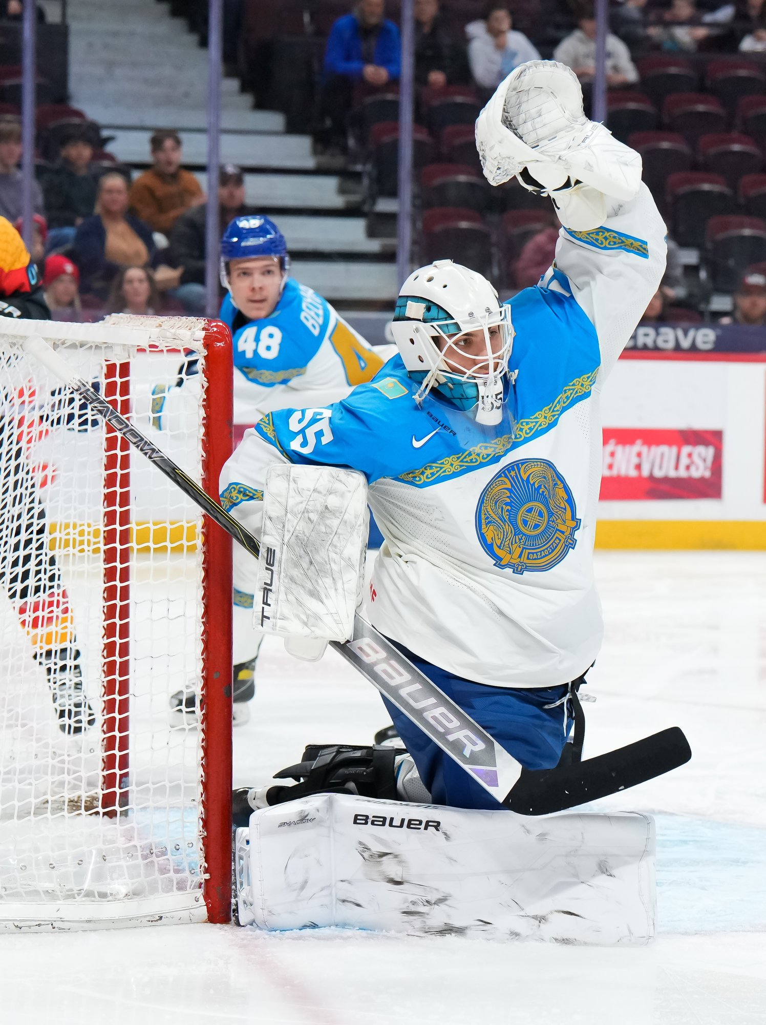 Le Kazakhstan a obtenu le départ qu’il désirait jeudi en ouvrant la marque à 4:33, après avoir créé un revirement au centre de la patinoire. Assanali Ruslanuly a tiré un plomb au-dessus du gant du gardien Linus Vieillard dans l’enclave pour faire 1-0.