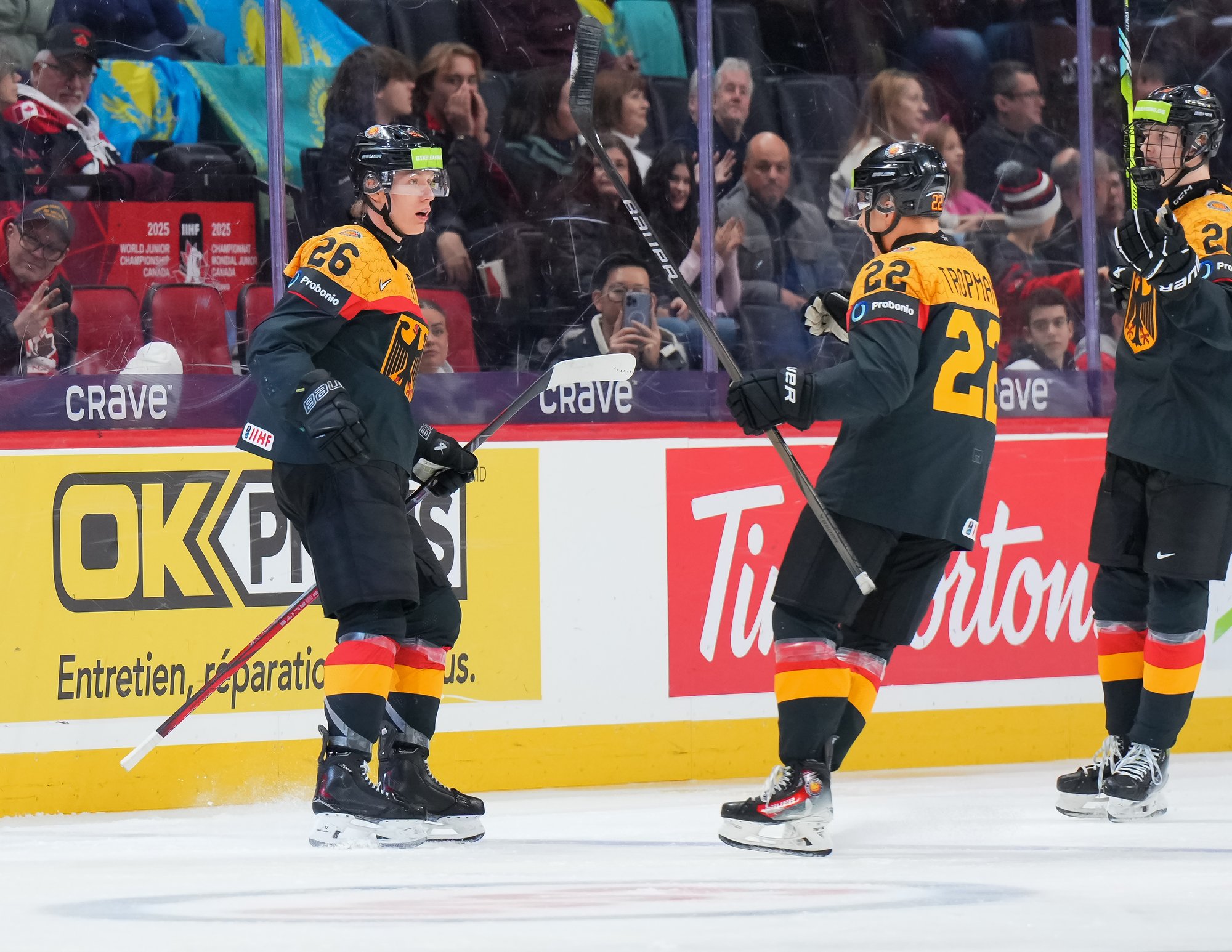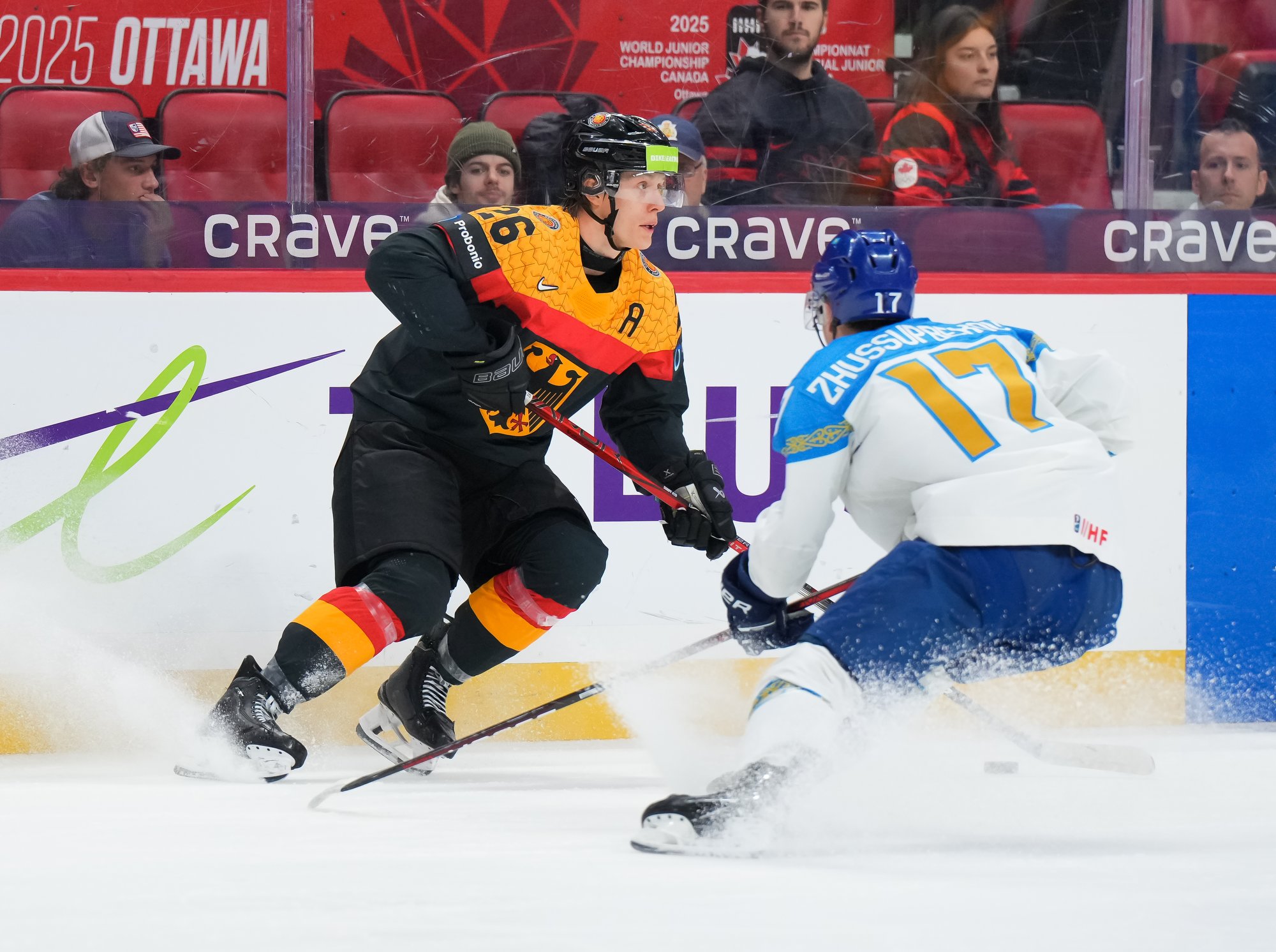 Julius Sumpf a marqué un but en avantage numérique à 4:03 de la troisième période pour rompre une égalité de 3-3 jeudi, permettant ainsi à l’Allemagne de vaincre le Kazakhstan 4-3 dans le match de relégation du Championnat mondial junior de l’IIHF 2025 à Ottawa, au Canada. Cette victoire permet à l’Allemagne de se maintenir au sein du premier groupe en vue de l’édition 2026 du Mondial junior à Minneapolis/St. Paul, dans le Minnesota, alors que le Kazakhstan évoluera en Division I-A en 2026, où l’équipe évoluait l’an dernier.