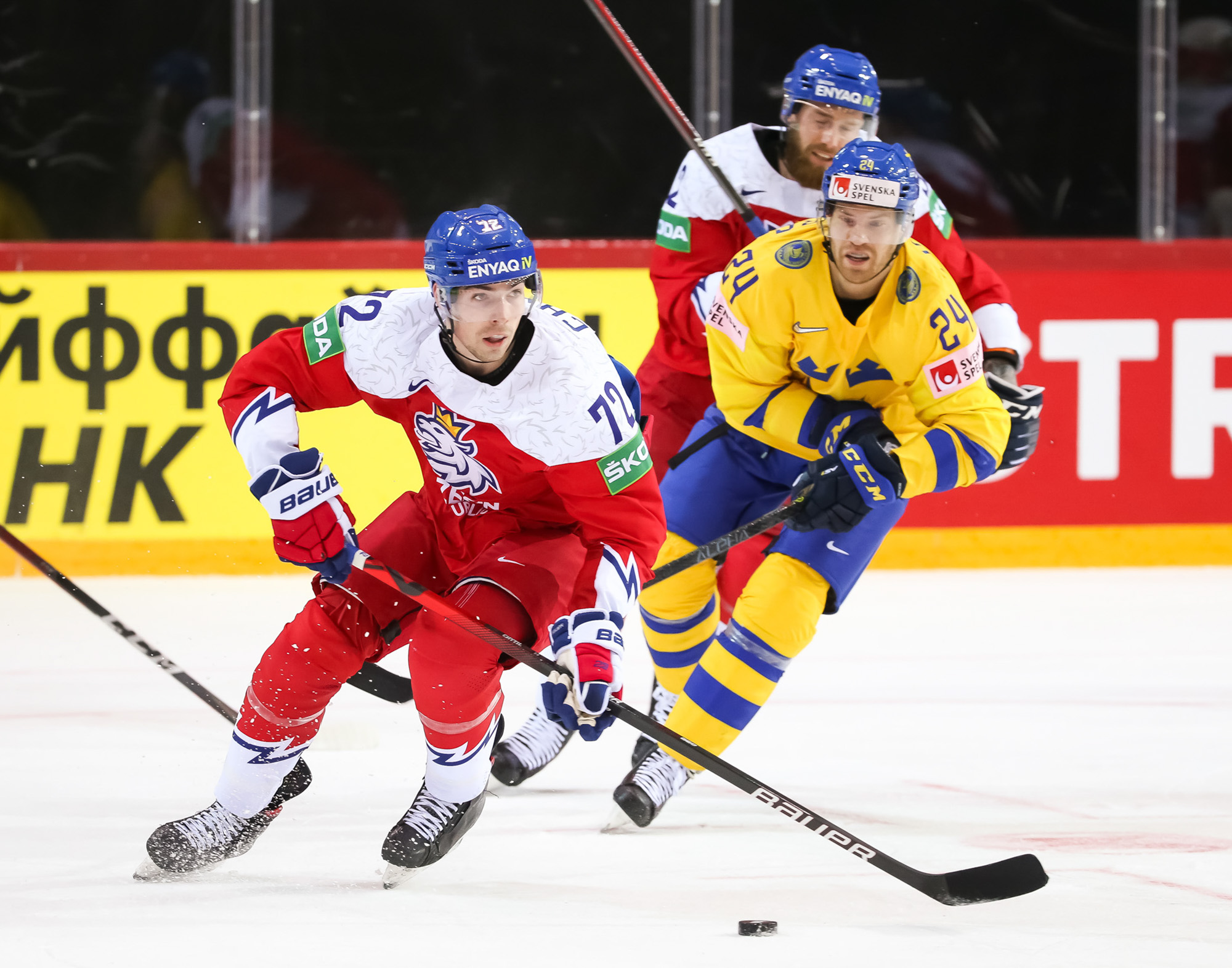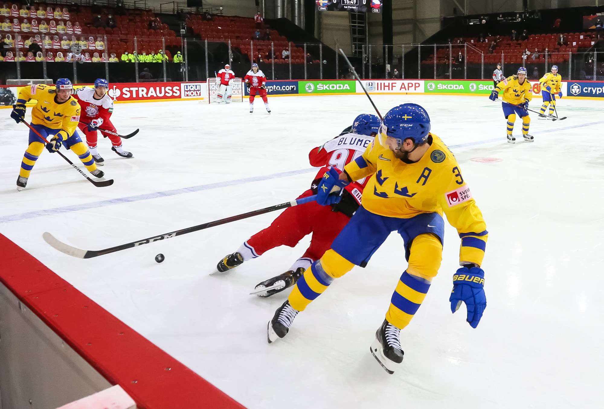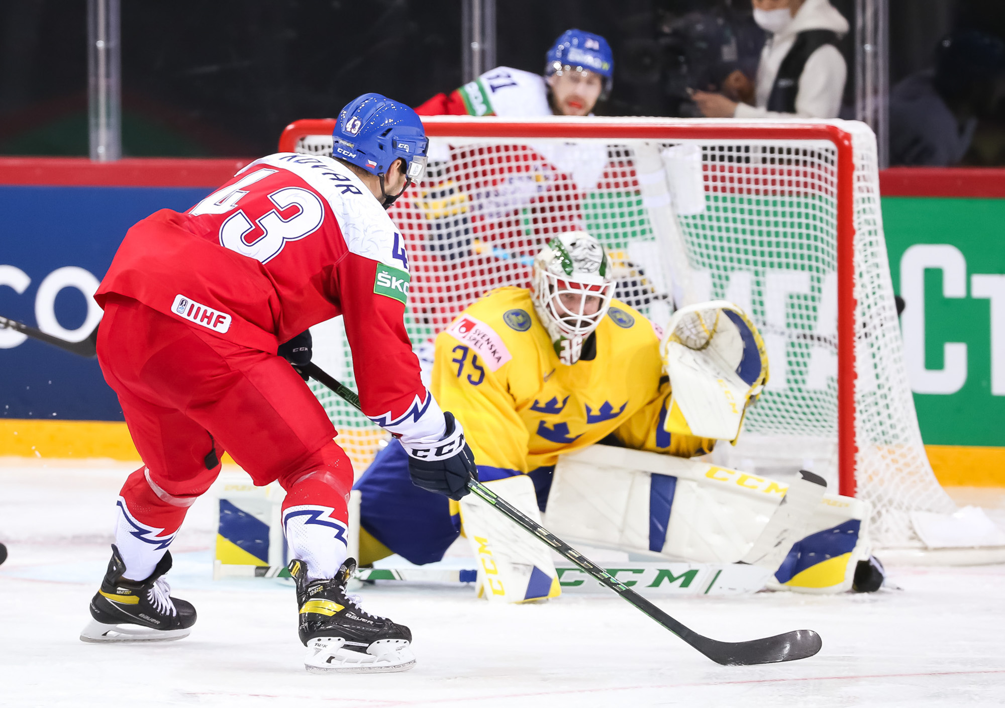Čehija ar neizšķirta panākšanu vien nebija mierā - pēc ripas izcīnīšanas iemetienā no zilās līnijas pa vārtiem šķīla Lukašs Kloks. Ripu Rīdeborns aizskāra, bet glābt Zviedriju nespēja - 2:3! Čehija septiņu minūšu un septiņu sekunžu laikā bija panākusi atspēlēšanos no 0:2 un izvirzījusies vadībā.