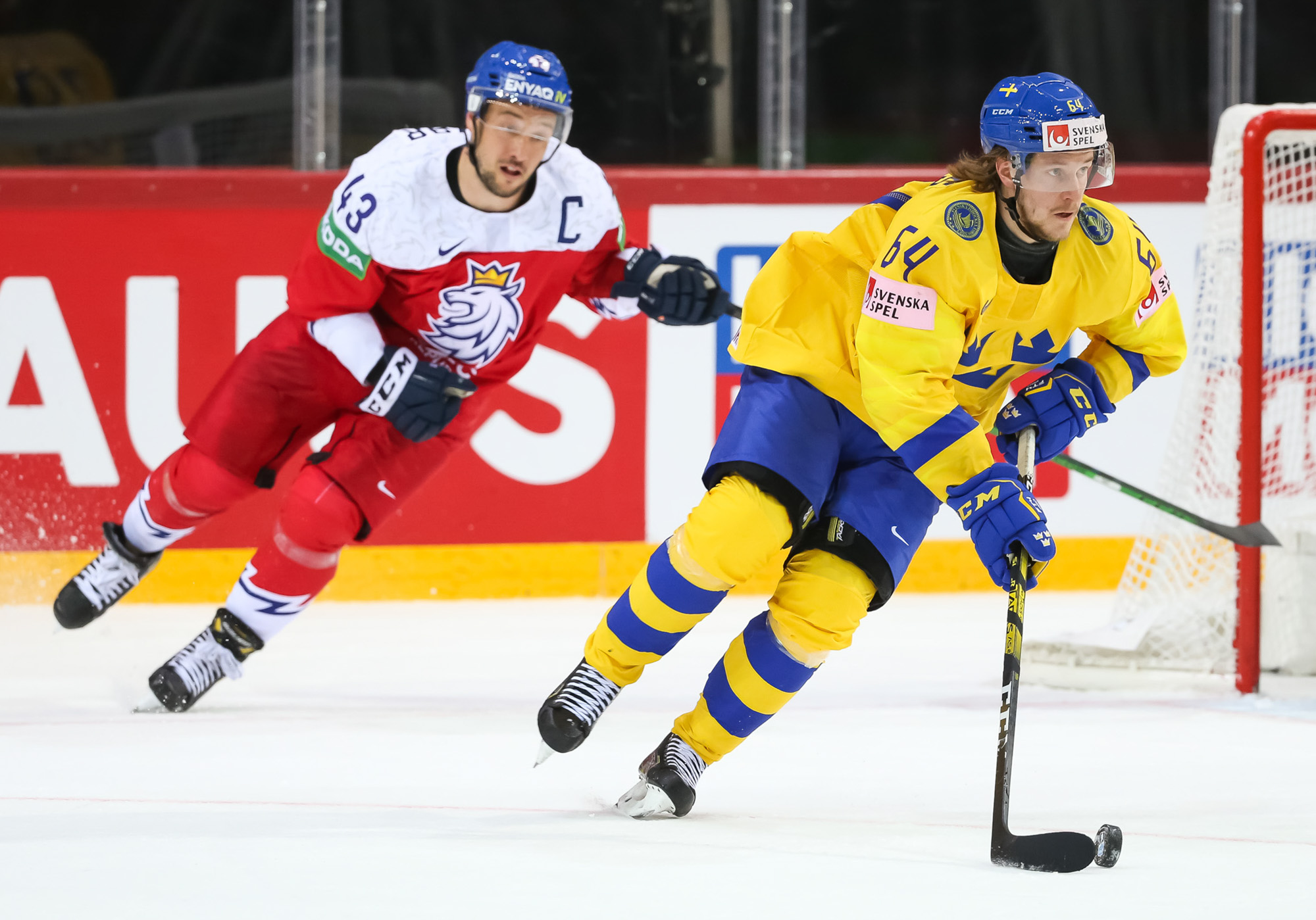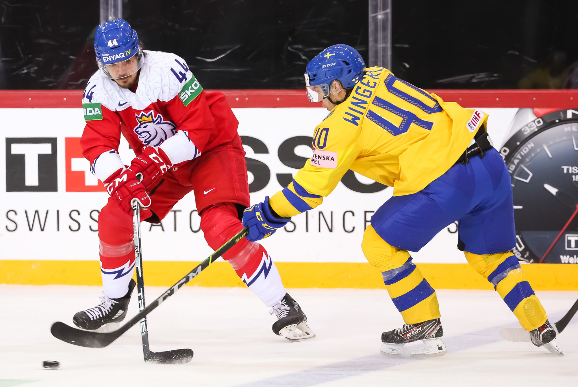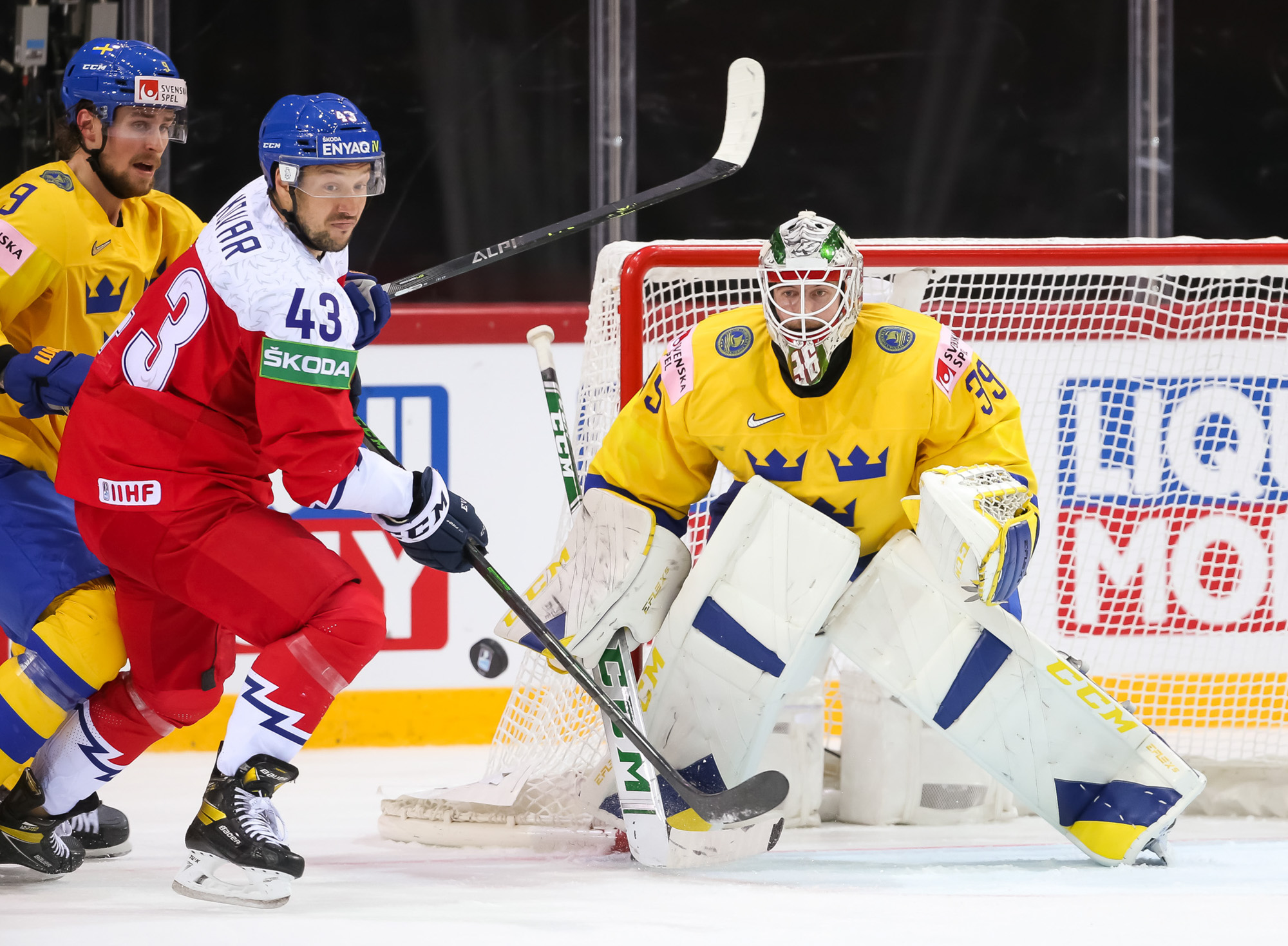 Pasaules čempionātā hokejā šovakar pirmo uzvaru pamatlaikā izcīnīja Čehija, kas vēl trešās trešdaļas sākumā atradās iedzinējos ar 0:2, tomēr spēja izmantot divus skaitliskos vairākumus trešās trešdaļas sākumā un rezultātu izlīdzināja, bet 49. minūtē Lukašs Kloks jau izvirzīja vadībā Čehiju. Zviedrijai atspēlēties neizdevās, bet čehi beigās iemeta ripu arī tukšos vārtos - uzvara ar 4:2.