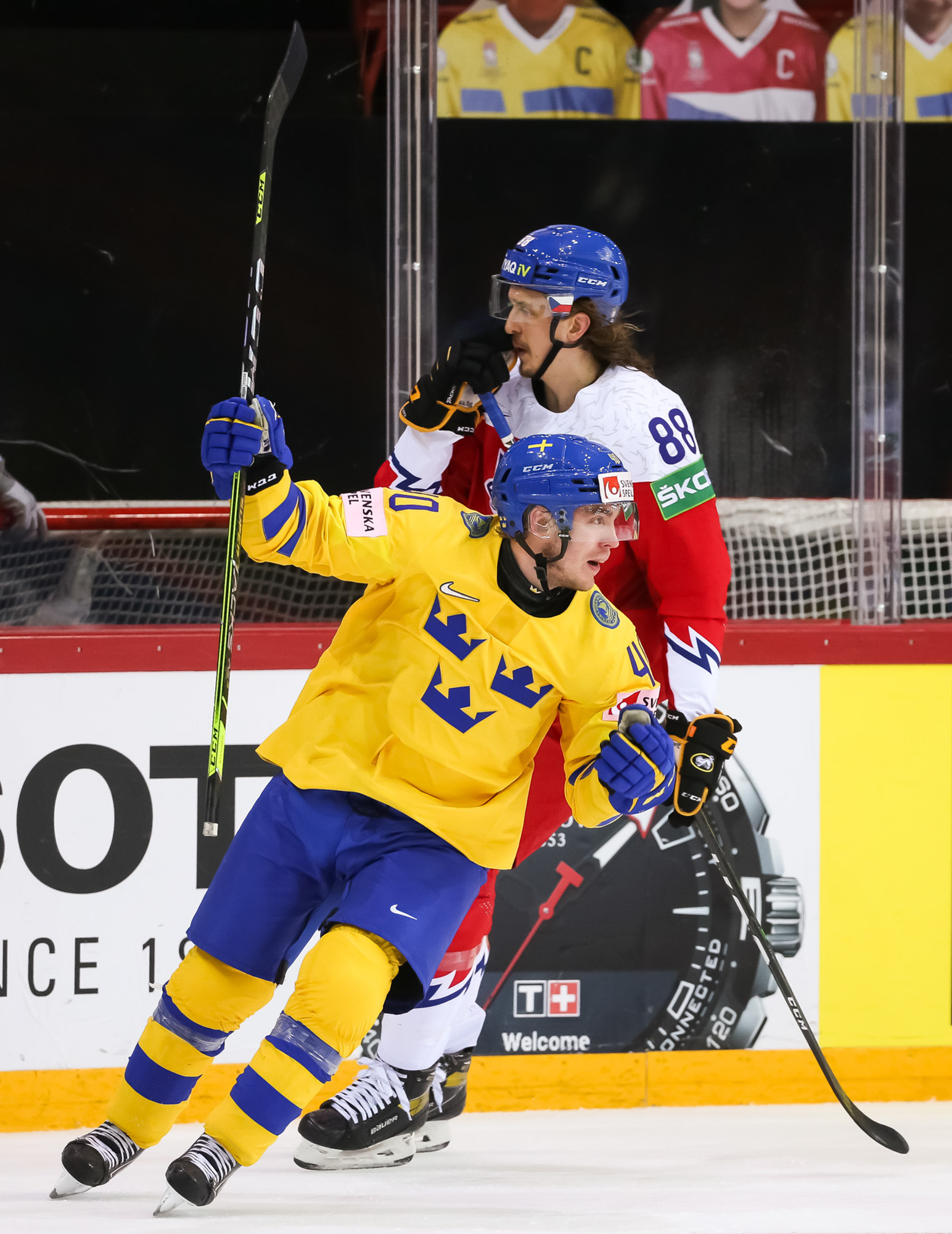 Šokētā Zviedrija drīz vien tika pie vairākuma, tomēr to realizēt nespēja. Jau trīs minūtes pirms pamatlaika beigām Rīdeborns devās mainīties pret sesto laukuma spēlētāju, bet tas nepalīdzēja - tukšos vārtos ceturto ripu iemeta Jakubs Flekss - 4:2 un nodrošināja Čehijai pirmo uzvaru pamatlaikā šajā pasaules čempionātā.