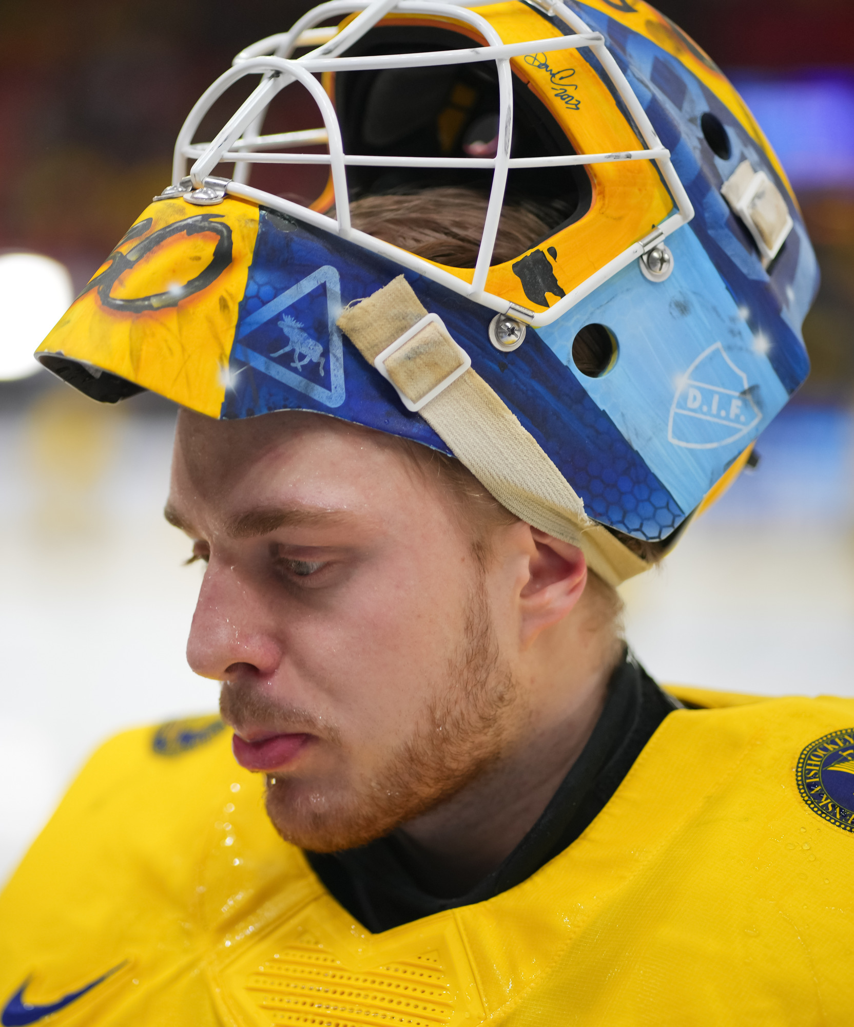 Han förhindrade Östlund från att göra mål på nära håll och stoppade även Felix Unger Dorum med en räddning, men i slutändan var det Sverige som skulle få till det enda målet under perioden. Detta då Mattias Hävelid skickade pucken förbi Bittners axel likt Stenberg gjort i den första perioden.