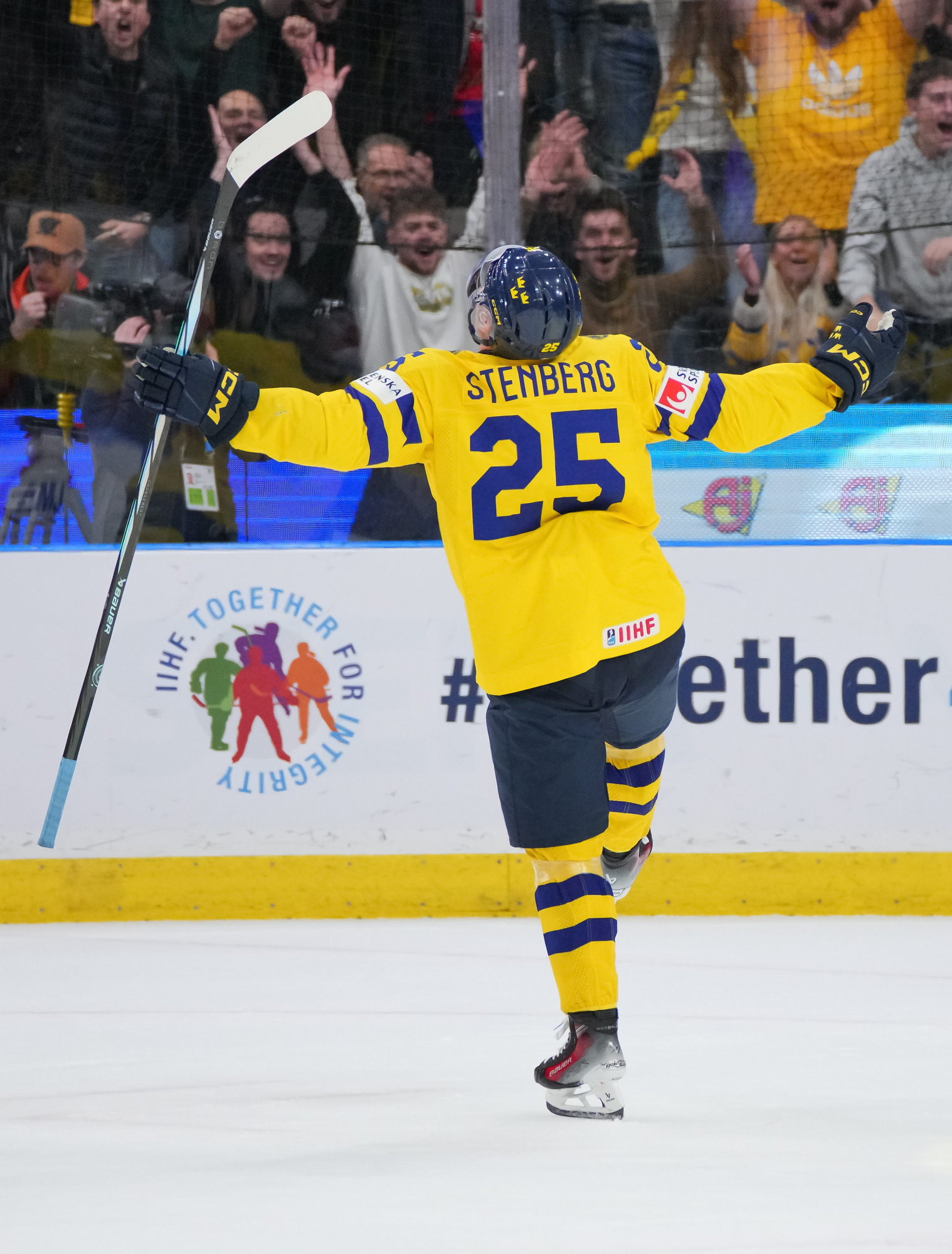 Det var vid 15:48 som svenskarna skulle öppna målgörandet. David Edström fann Stenberg i den höga slotten, och skickade iväg ett högt skott över Bittners axel som gjorde att publiken blev extatisk. Sverige vann skottstatistiken med 18–6, vilket reflekterade deras dominans i matchen.